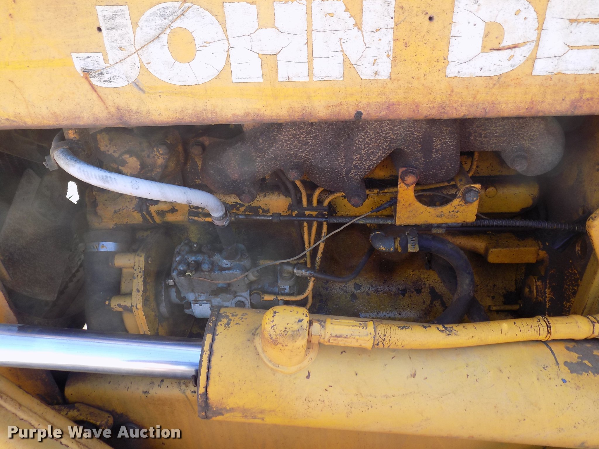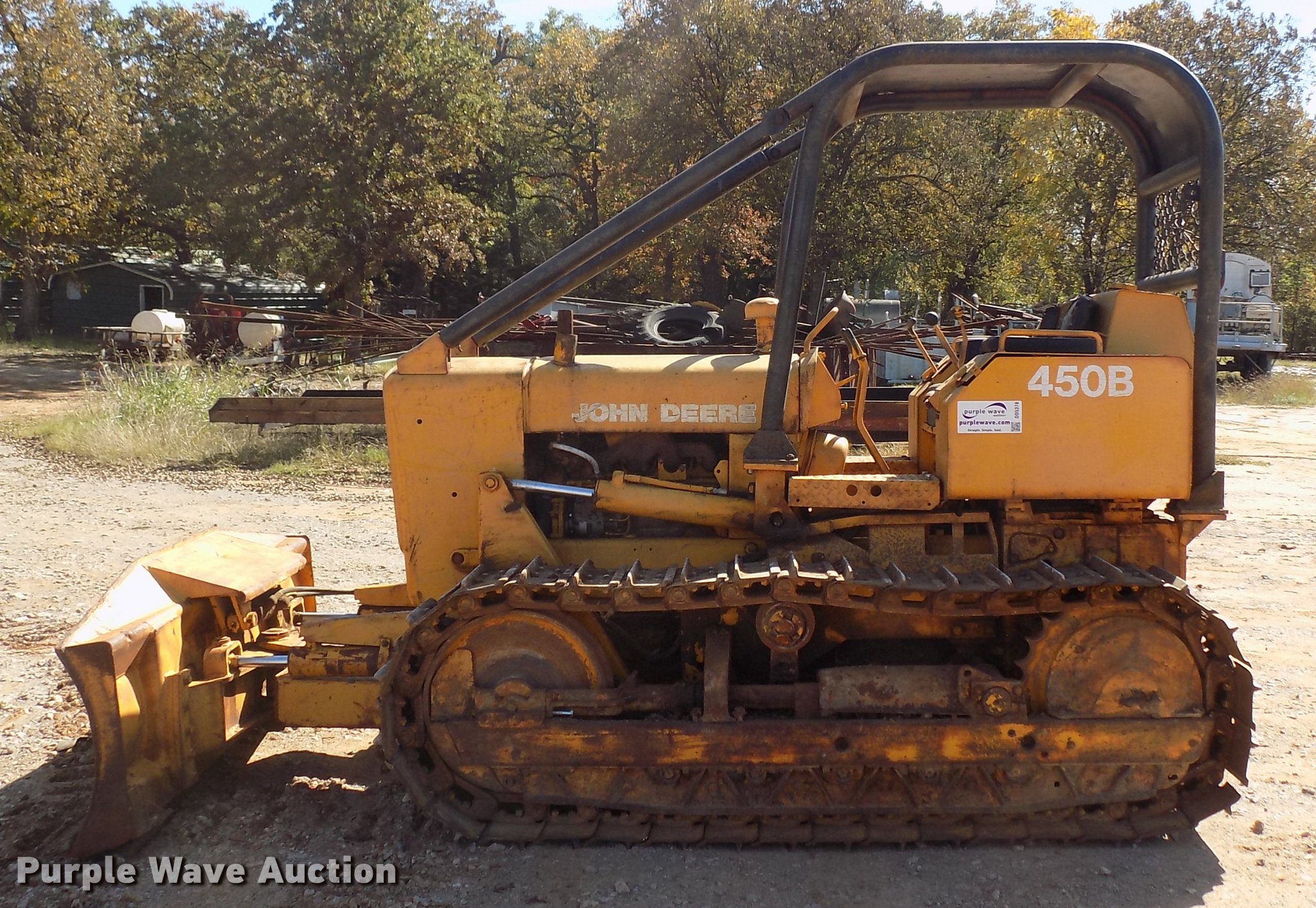 Purple Wave is selling a used Crawler Dozer in Oklahoma. This item is a John Deere 450B dozer with the following: John Deere four cylinder turbo diesel engine, Powershift transmission, 6F-3R gears, Canopy, Suspension seat, Clutch brake steering, Sweeps, Screen guards, 88"W angle dozer blade, Rear draw bar, 16"W single grouser track pads, Frame welds