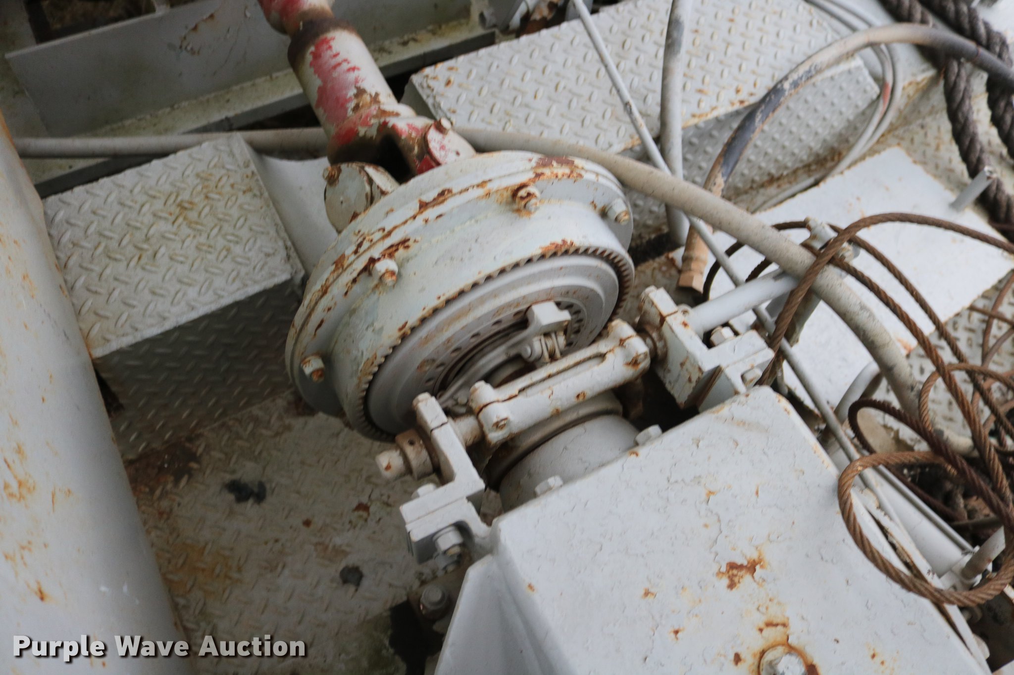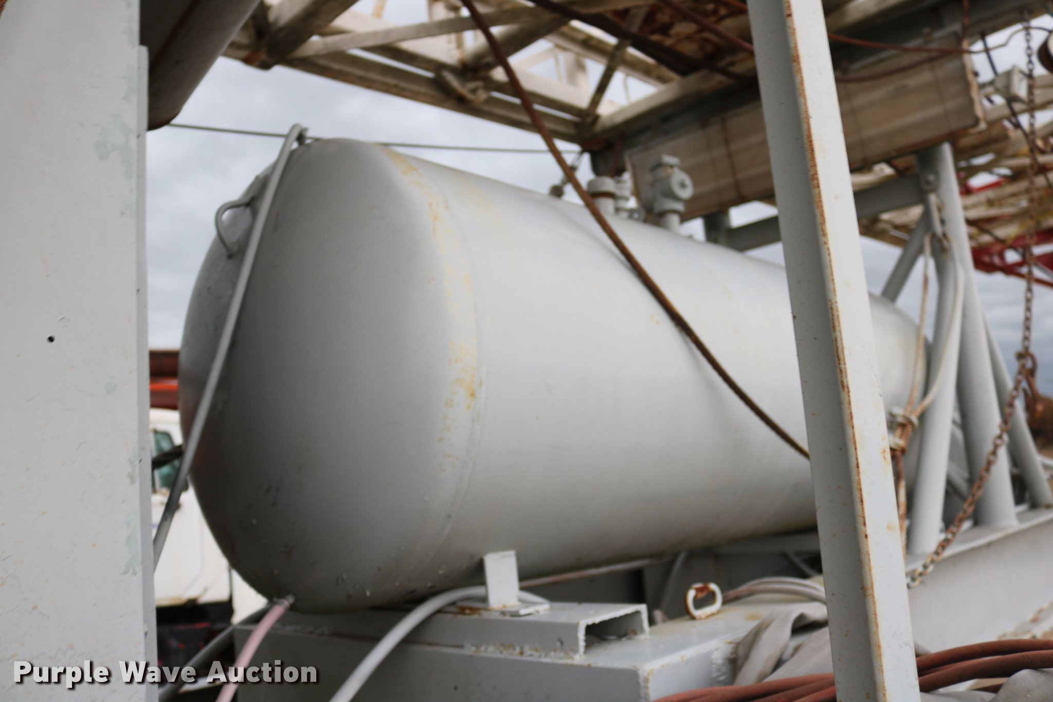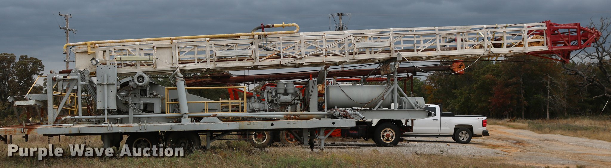 Purple Wave is selling a used Drilling Rig in Oklahoma. This item is a Drilling rig with the following: 35'L x 9'W deck, 2.5'L dovetail, Six cylinder diesel engine, 12" drill opening, Bragg Ross drill head, Mckissick winch head, 55'L platform, Outriggers, Fifth wheel plate, Dual leg landing gear, Tandem axle, 10.00-20 tires, Serial R686