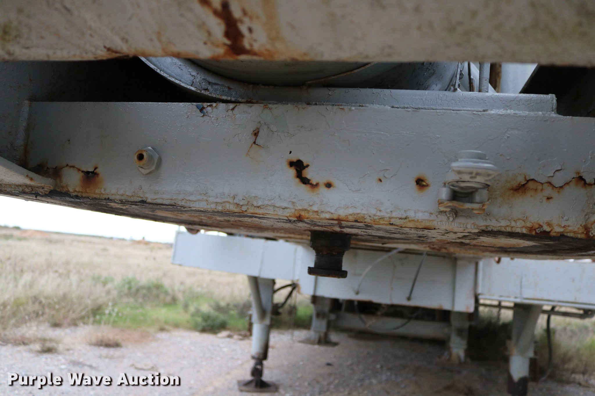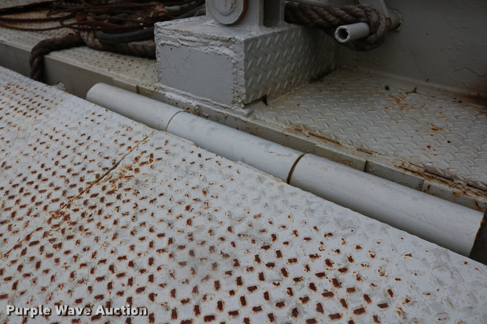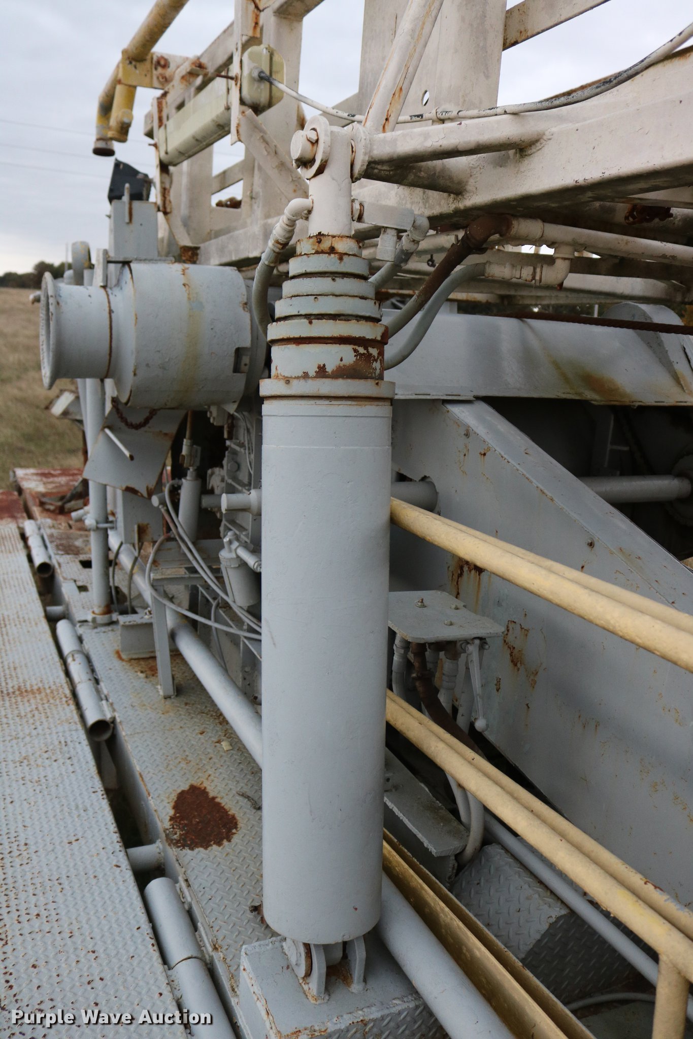 Purple Wave is selling a used Drilling Rig in Oklahoma. This item is a Drilling rig with the following: 35'L x 9'W deck, 2.5'L dovetail, Six cylinder diesel engine, 12" drill opening, Bragg Ross drill head, Mckissick winch head, 55'L platform, Outriggers, Fifth wheel plate, Dual leg landing gear, Tandem axle, 10.00-20 tires, Serial R686