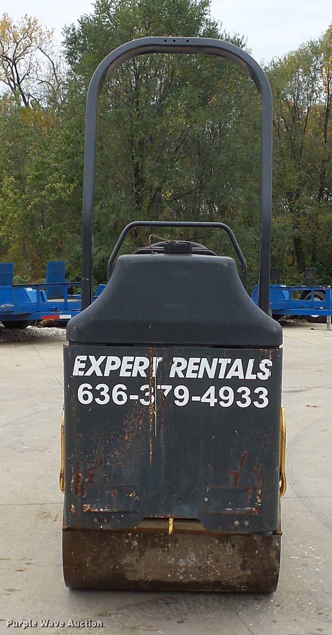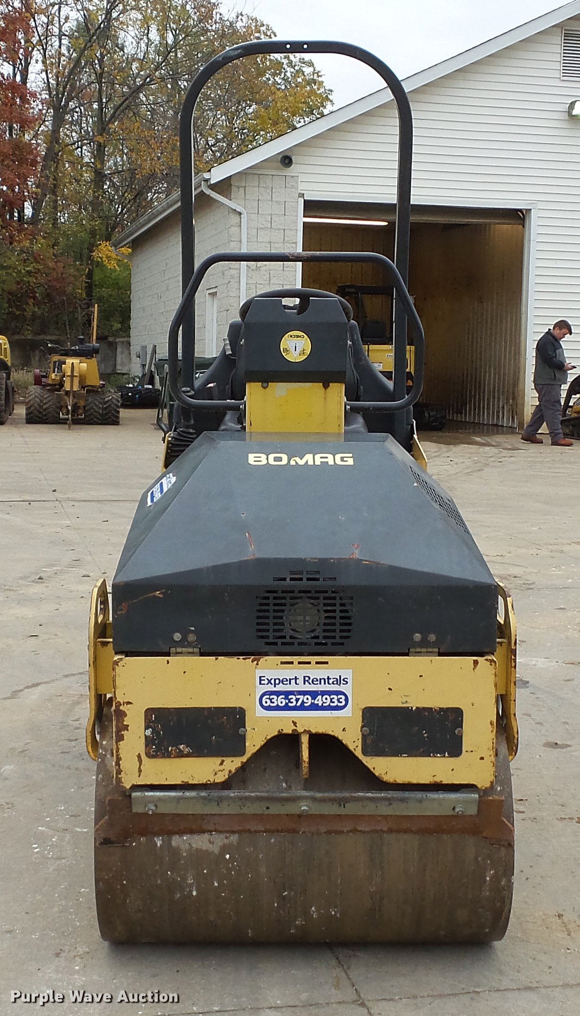 2006 Bomag BW900-2 double drum vibratory roller. 1,036 hours on meter, Honda GX620 two cylinder gas engine 20 HP, Hydrostatic transmission, OROPS, Vandal cover, 35.5"W x 22" diameter smooth drums Single vibratory system, Front and rear drum scrapers, Front and water application, Dual propel system, Serial 851800021268. Expert Rentals. 8126 Veterans Memorial Pkwy. Saint Peters, MO 63376