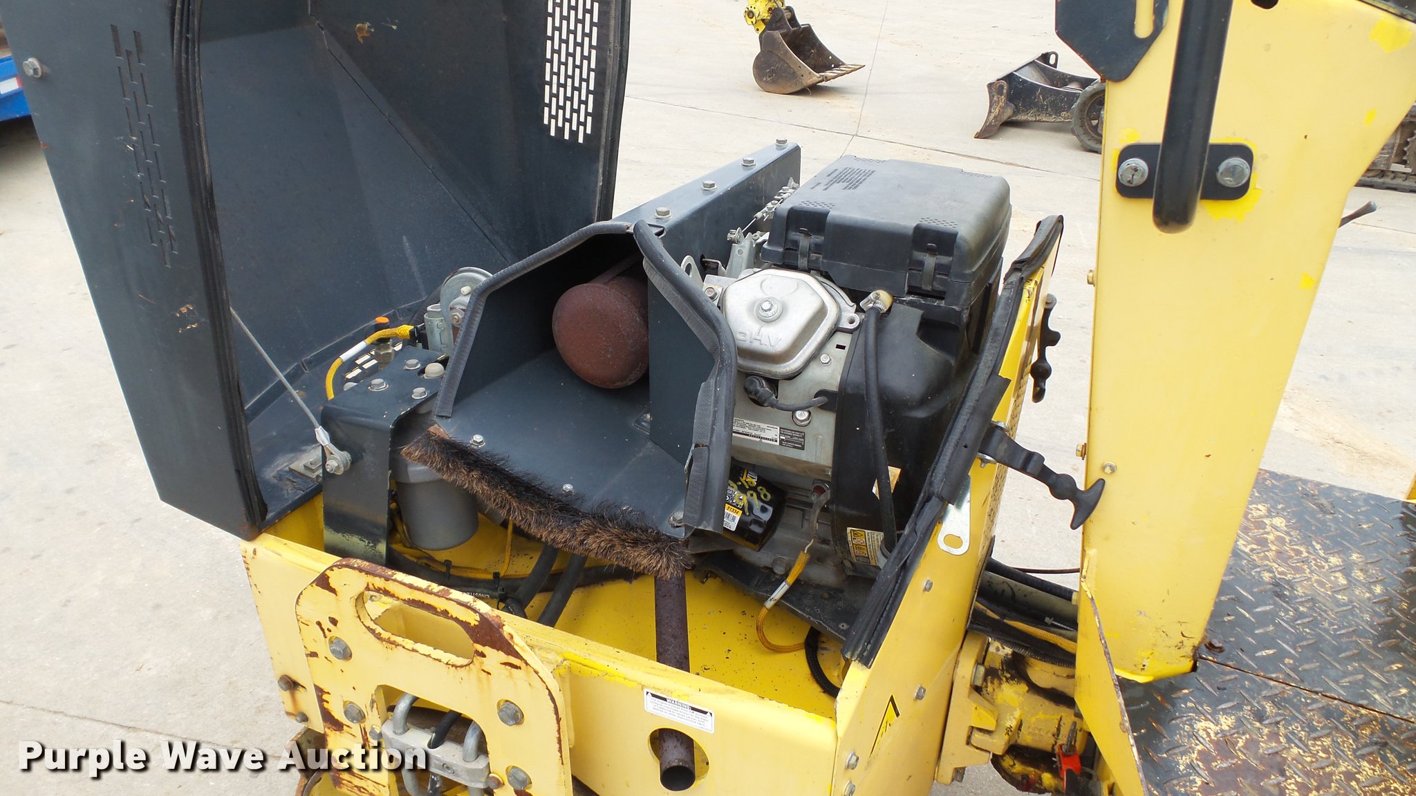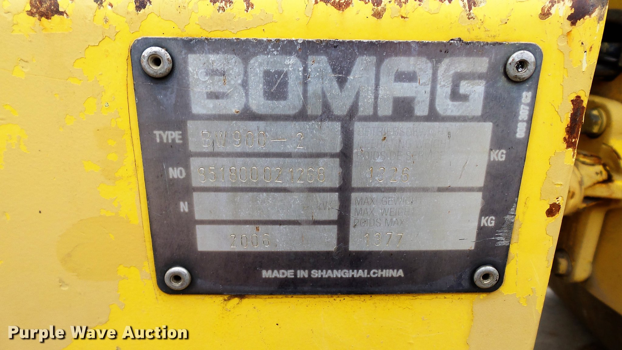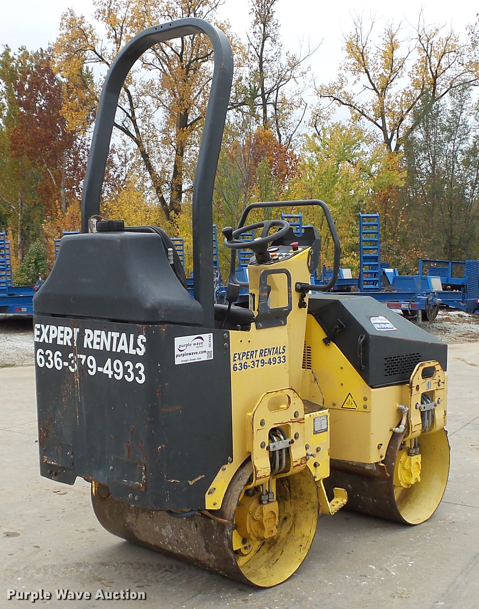 Purple Wave is selling a used Double Drum Roller Compactor in Missouri. This item is a 2006 Bomag BW900-2 double drum vibratory roller with the following: 1,036 hours on meter, Honda GX620 two cylinder gas engine, 20 HP, Hydrostatic transmission, OROPS, Vandal cover, 35.5"W x 22" diameter smooth drums, Single vibratory system, Front and rear drum scrapers, Front and water application, Dual propel system, Serial 851800021268