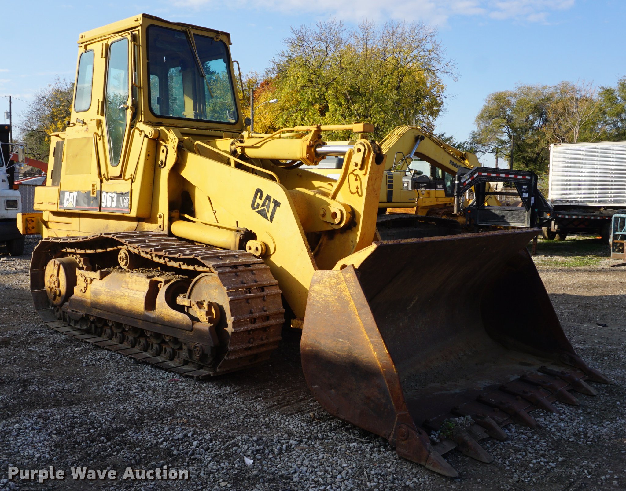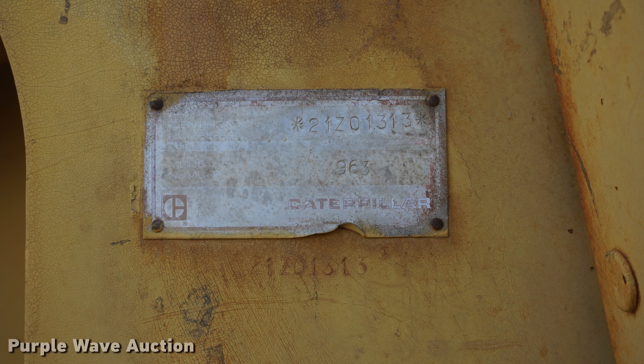 Purple Wave is selling a used Crawler Loader in Kansas. This item is a 1987 Caterpillar 963 LGP track loader with the following: 17,620 hours on meter, Caterpillar 3304 four cylinder turbo diesel engine, 150 HP, Serial 12Z22439, Hydrostatic transmission, Enclosed cab, Suspension seat, Two-lever bucket controls, Caterpillar 100"W general purpose bucket, (8) teeth, 22"W double grouser track pads, Serial 21201313