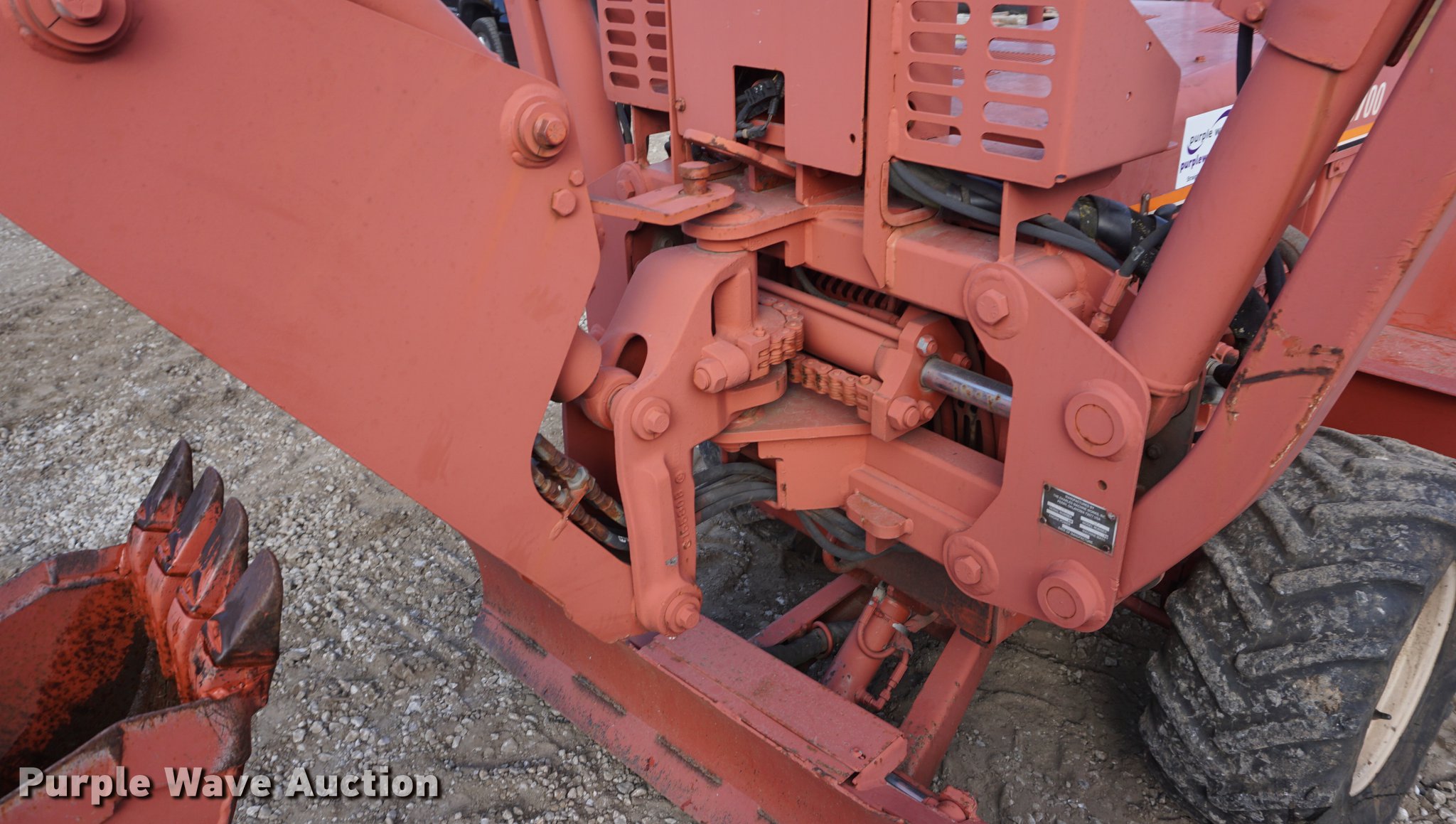 1999 Ditch Witch 3700DD trencher. 742 hours on meter, Deutz F3L1011F three cylinder diesel engine 45 HP, Hydrostatic transmission, Four wheel drive, OROPS, Trencher model H314 48" boom length, 5" cutting width, 14" end idler diameter, Rock and dirt teeth, Manual crumber arch 5" crumber shoe width, Hydraulic side shift, Serial 8T0106, Backhoe model A322 13"W four tooth bucket, Serial 1S3004, 64"W six-way backfill blade, 26 x 12.00-12 tires, Serial 3S1753. Infrastucture Solutions. 1215 Scott Ave. Kansas City, KS 66105