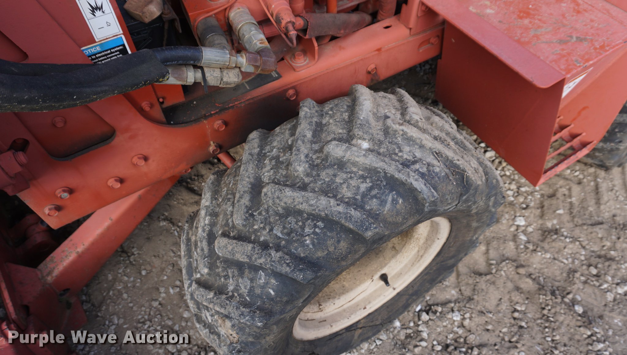Purple Wave is selling a used Trencher or Rock Saw in Kansas. This item is a 1999 Ditch Witch 3700DD trencher with the following: 742 hours on meter, Deutz F3L1011F three cylinder diesel engine, 45 HP, Hydrostatic transmission, Four wheel drive, OROPS, Trencher model H314, 48" boom length, 5" cutting width, 14" end idler diameter, Rock and dirt teeth, Manual crumber arch, 5" crumber shoe width, Hydraulic side shift, Serial 8T0106, Backhoe model A322, 13"W four tooth bucket, Serial 1S3004, 64"W six-way backfill blade, 26 x 12.00-12 tires, Serial 3S1753