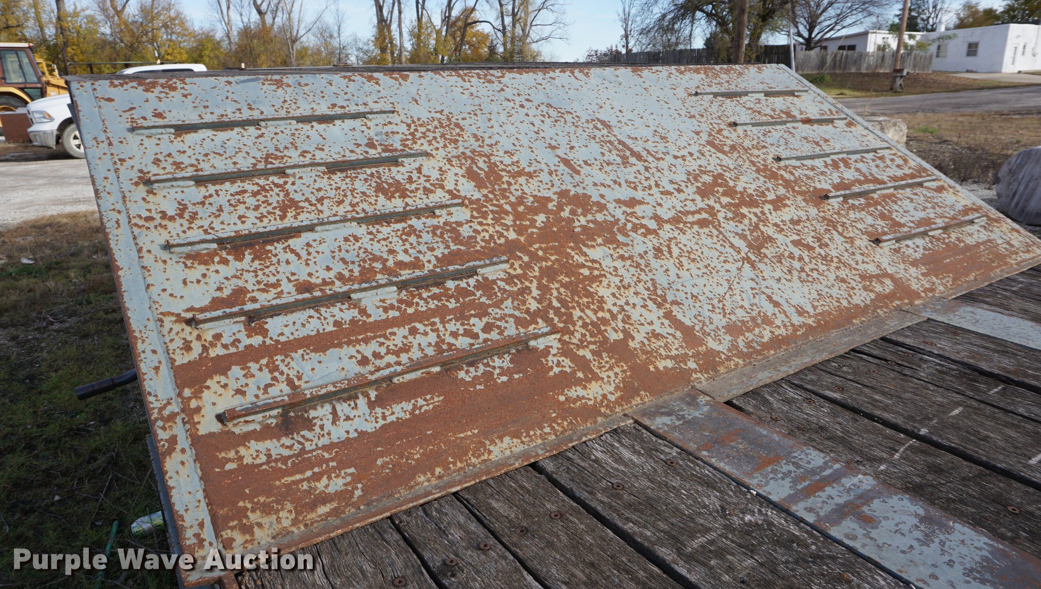 Purple Wave is selling a used Equip. Trailer in Missouri. This item is a 2007 Kaufman equipment trailer with the following: 42.5' overall length, 24.5'L x 100.5"W wood main deck, 9'2"L top deck, 5'L dovetail, 6'L ramps, D-ring tie downs, Fifth wheel plate, Dual leg landing gear, Spring suspension, Air brakes, Triple axle, 215/75R17.5 tires