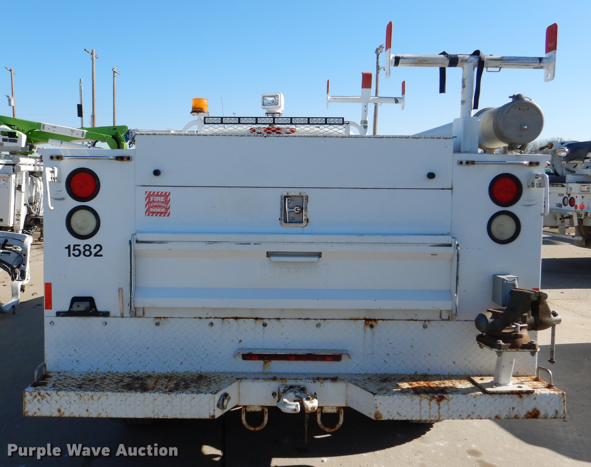 2009 Chevrolet Silverado 3500HD utility bed pickup truck. 142,143 miles on odometer, 6.0L V8 OHV 16V gas engine, Automatic transmission, AC and heat, Tilt, Cruise, AM/FM/CD, Power windows, locks, and mirrors, Vinyl interior, Running boards, Front tow hook, Knapheide utility bed 8'L x 82"W, Vise, Beacon light , Spot light, Pintle hitch, 265/75R16 tires, Unit# 1582. Kansas title. Completed bill of sale documentation required prior to release of paid invoice. 1GBHC74K19E151349. Westar Energy. 4001 NW 14th St. Topeka, KS 66601