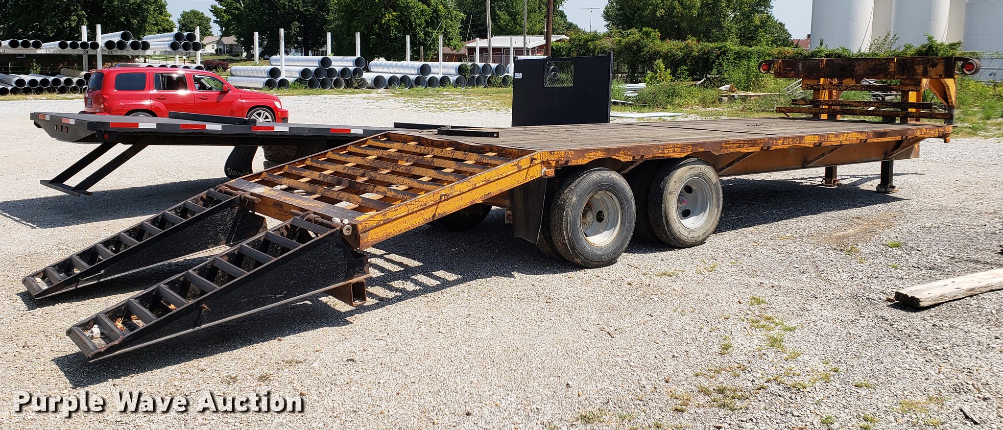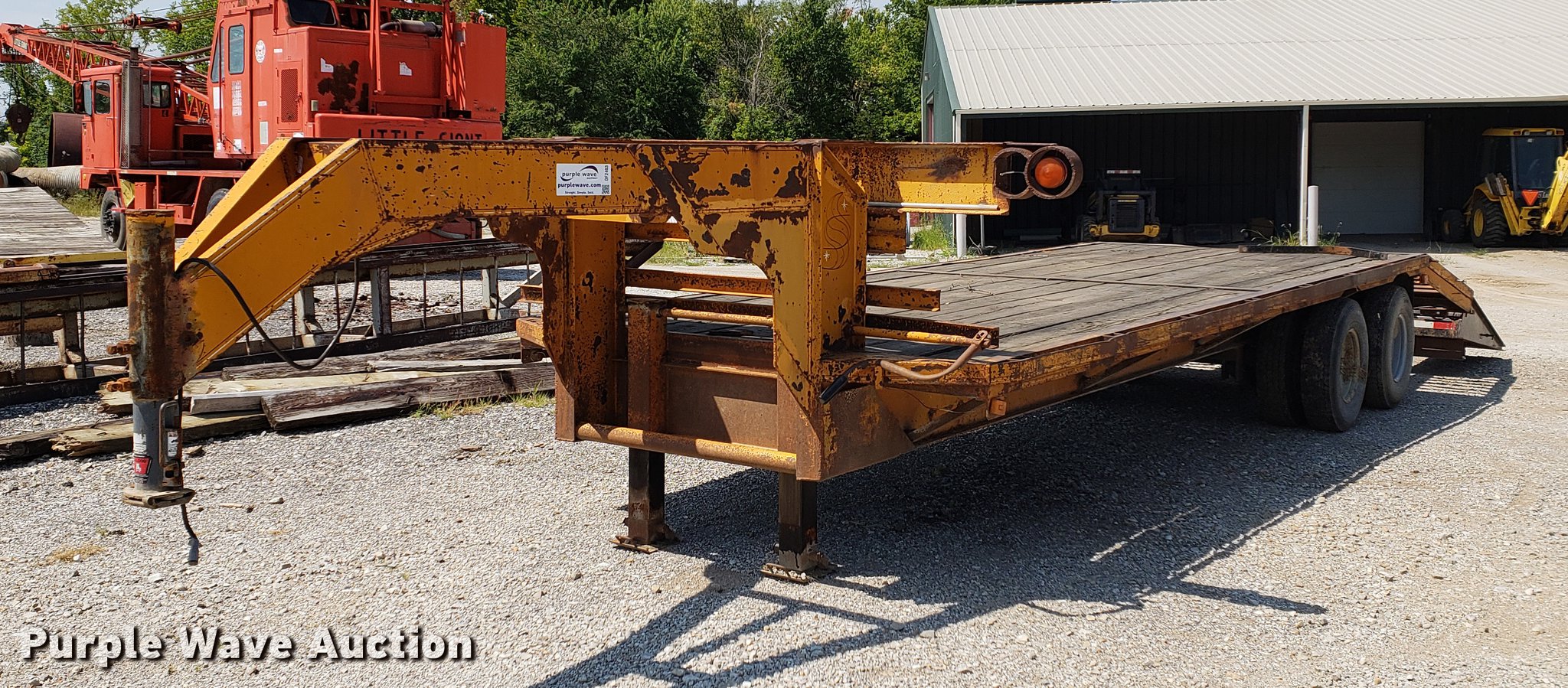 Purple Wave is selling a used Equip. Trailer in Missouri. This item is a 1987 equipment trailer with the following: 20'L x 96"W wood deck, 5'L dovetail, 5'L x 23"W ramps, Gooseneck hitch, Dual leg landing gear, Spring suspension, Electric brakes, Tandem axle, 7.50R16 tires