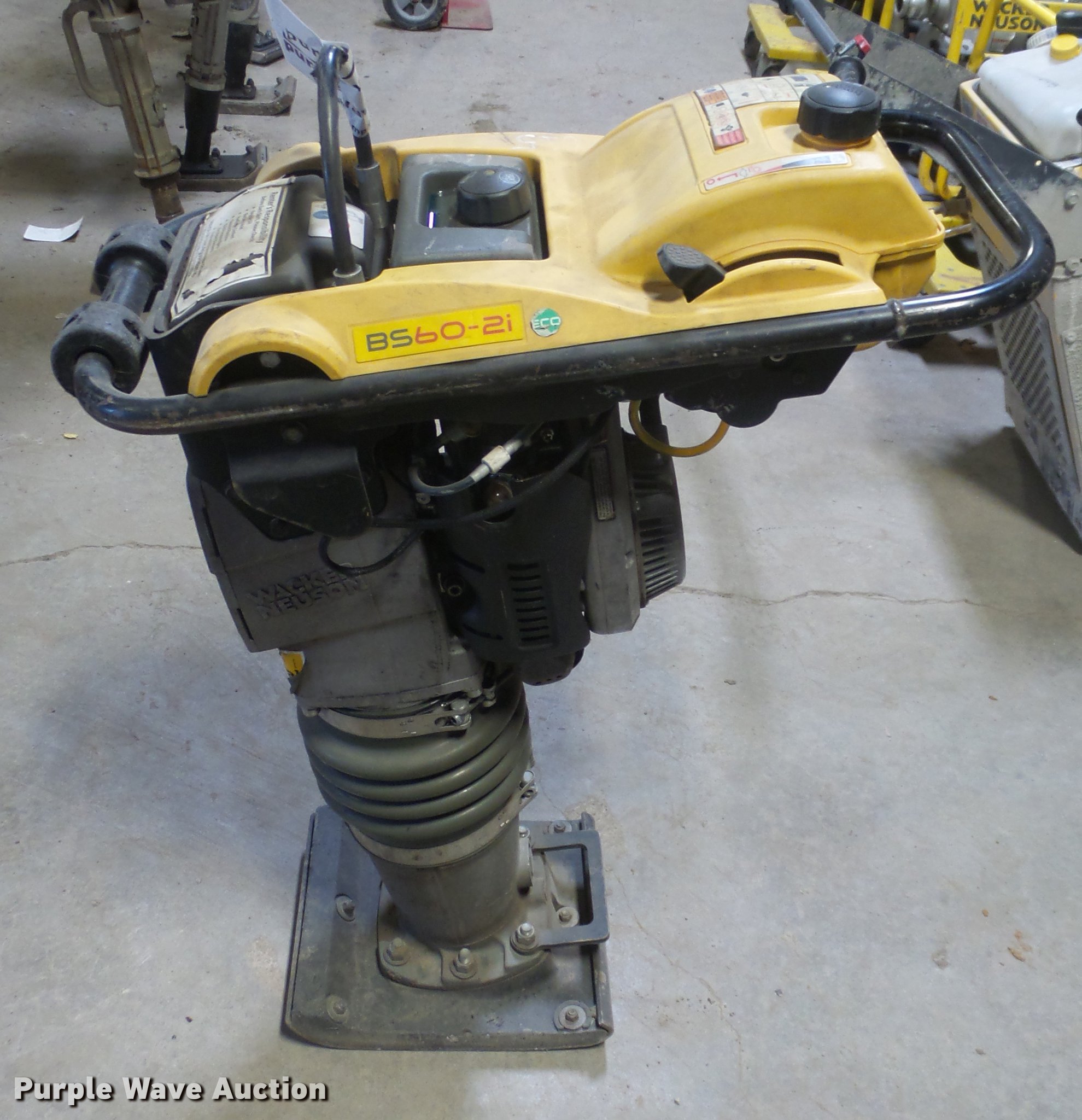Purple Wave is selling a used Walk Behind Compactor in Kansas. This item is a Wacker BS60-21 vibratory plate compactor with the following: Gas engine, 2.4 HP, 11" plate, Engine idle issues, Serial 20238540, Unit# 4AR7615
