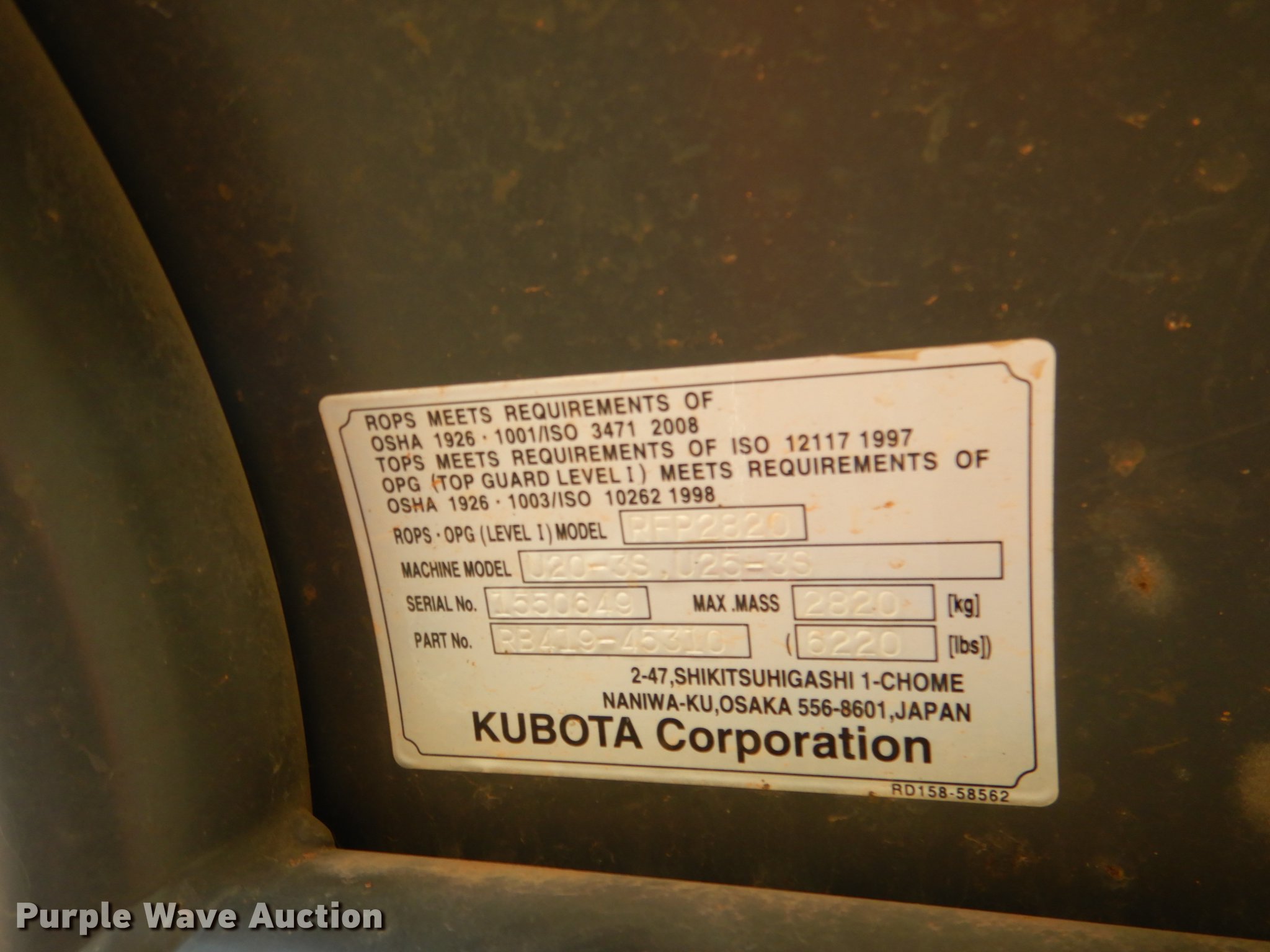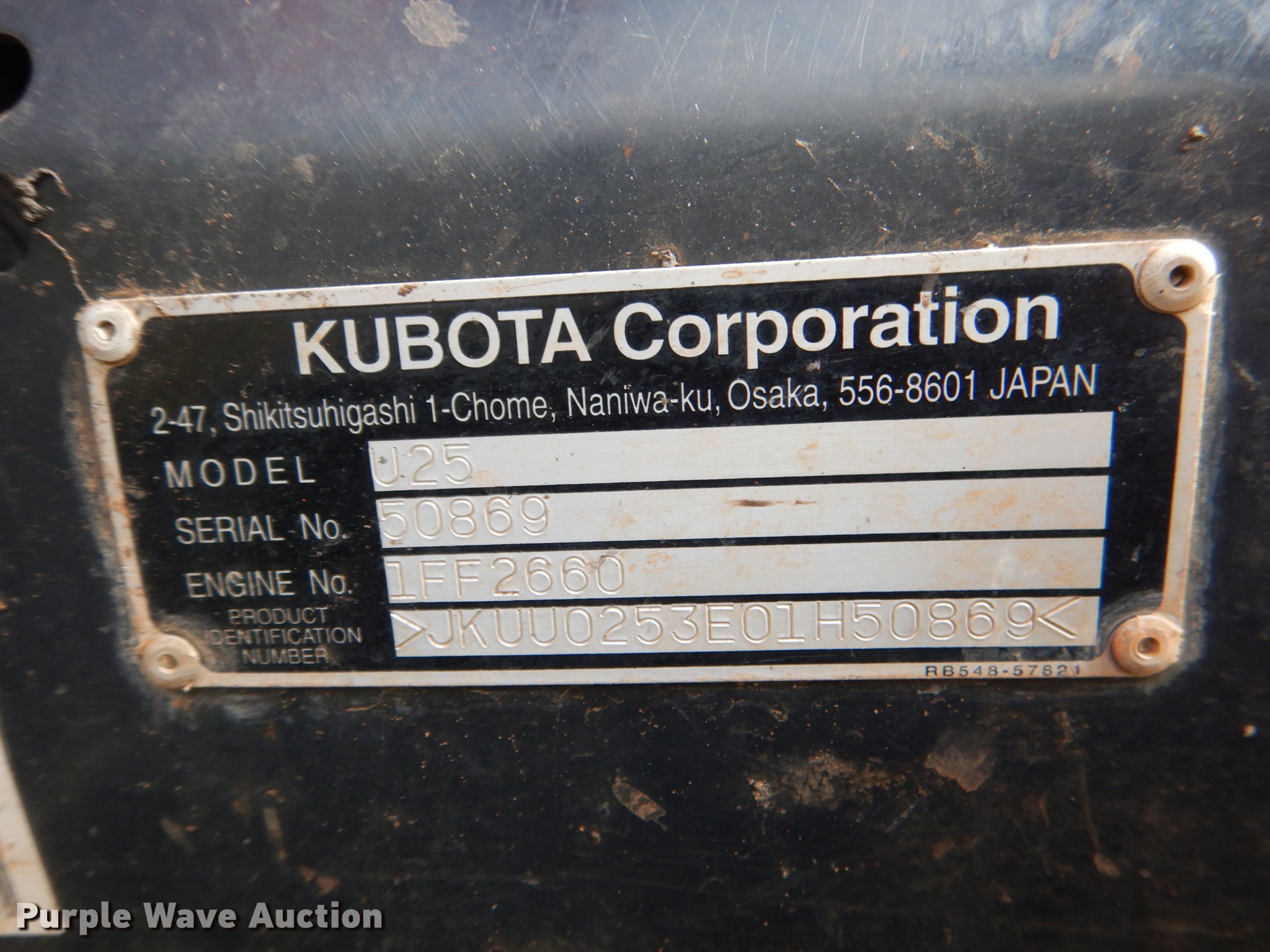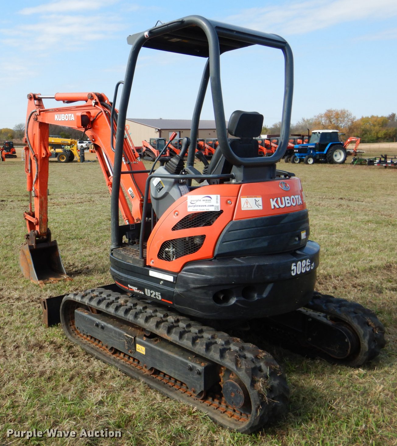 Purple Wave is selling a used Mini Excavator in Oklahoma. This item is a 2015 Kubota U25S mini excavator with the following: 650 hours on meter, Kubota D1105 1.1L three cylinder diesel engine, Serial 1FF2660, Two speed hydrostatic transmission, OROPS, Pattern changer, Front and rear work lights, 58"W backfill blade, Standard boom, Auxiliary hydraulics, Hydraulic quick coupler, 16"W bucket, (3) weld-on teeth, 11"W rubber tracks, Serial 50869, Unit# 50869