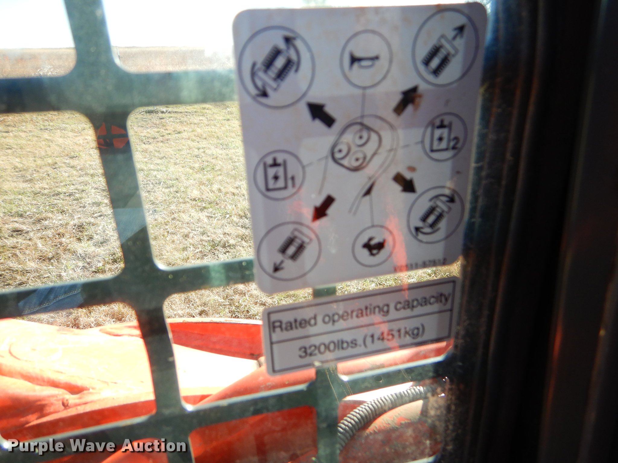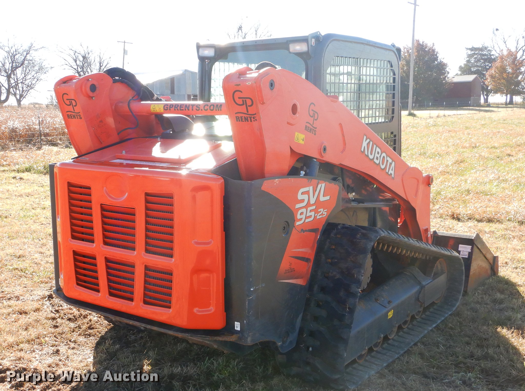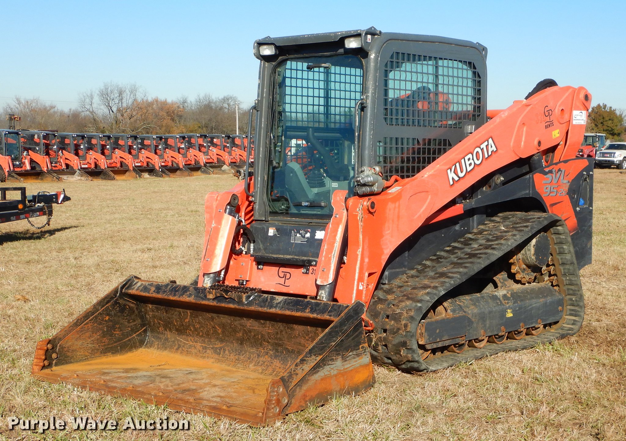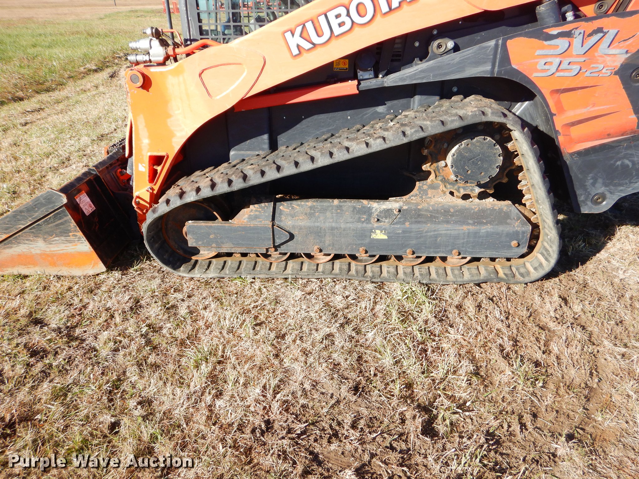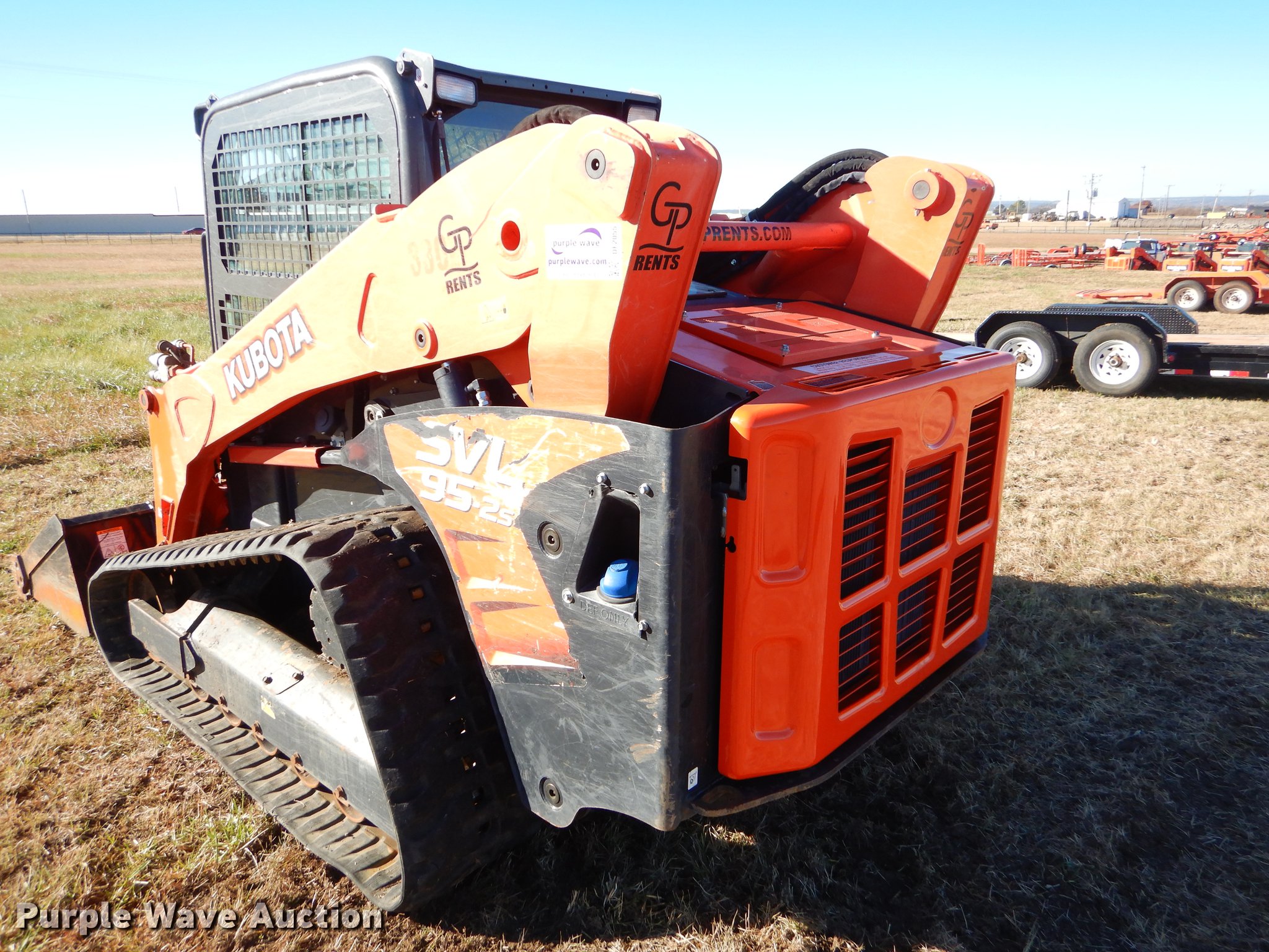 Purple Wave is selling a used Skid Steer Loader in Oklahoma. This item is a 2016 Kubota SVL95-2S skid steer with the following: 981 hours on meter, Kubota V3800 four cylinder diesel engine, Two speed hydrostatic transmission, EROPS, Serial 1003169, Joystick controls, Air suspension seat, Front work lights, Backup alarm, High flow auxiliary hydraulics, Auxiliary electrical outlet, Hydraulic quick coupler, 74"W low profile bucket, Bolt-on cutting edge, 18"W tracks, Serial 31735, Unit# 31735
