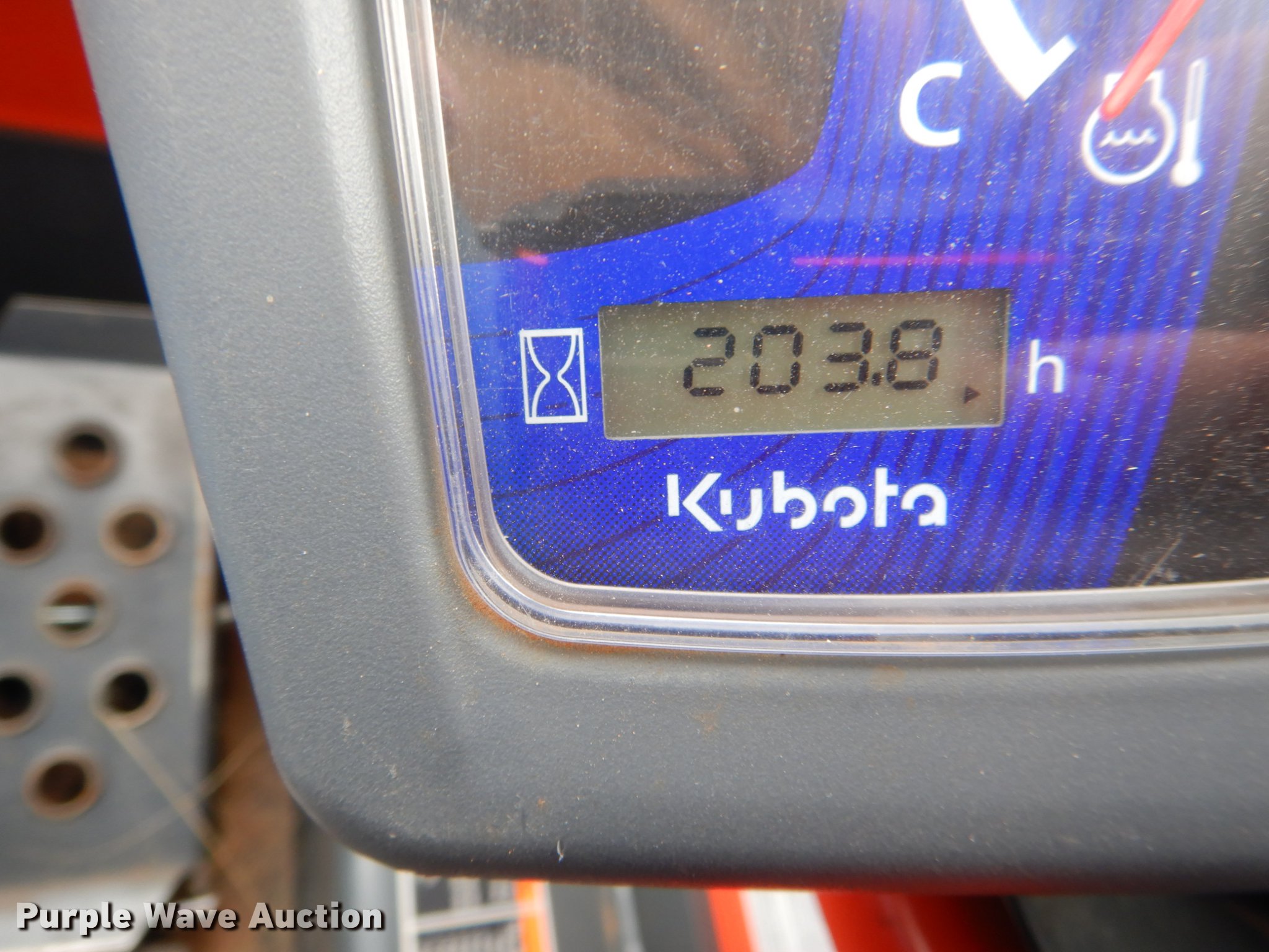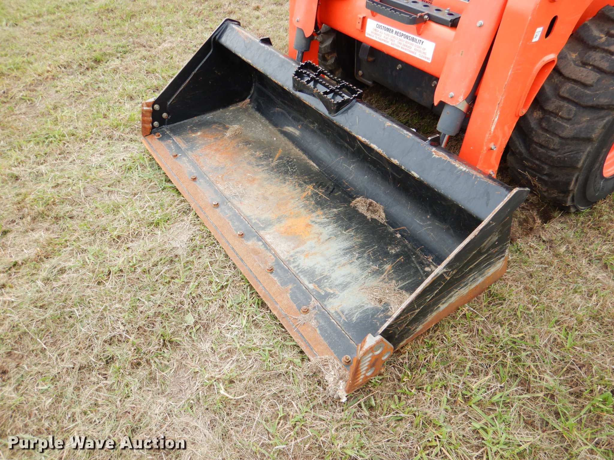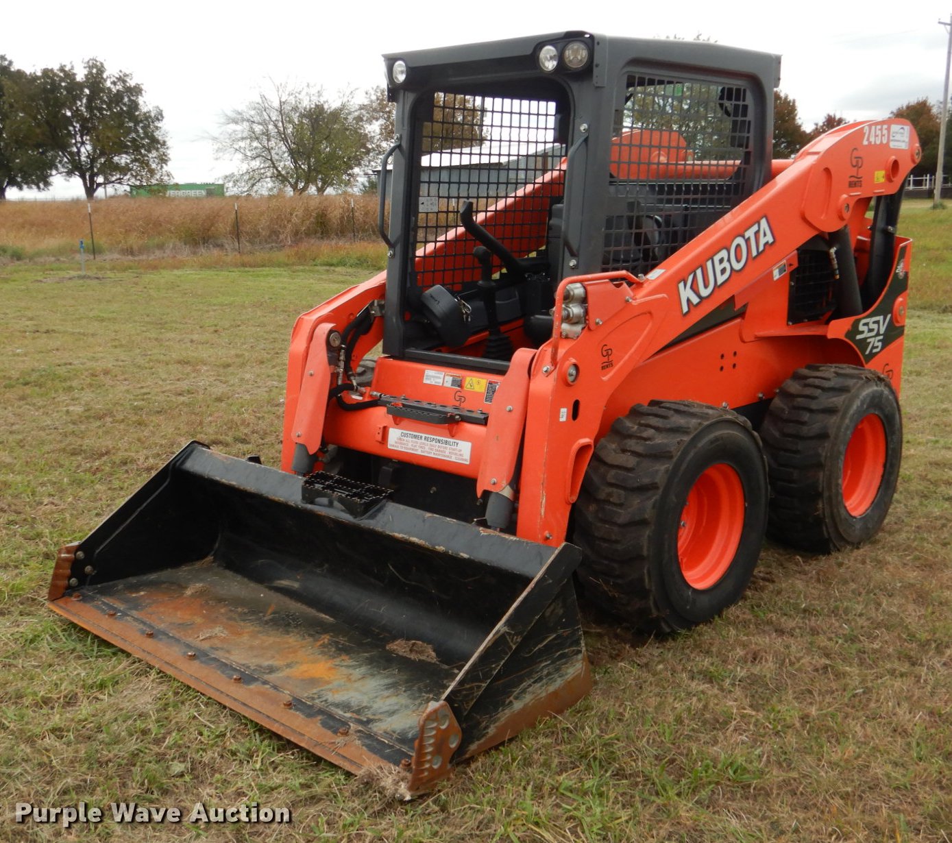 Purple Wave is selling a used Skid Steer Loader in Oklahoma. This item is a 2017 Kubota SSV75 skid steer with the following: 204 hours on meter, Kubota V3307 3.3L four cylinder turbo diesel engine, Serial 8FW0047, Two speed hydrostatic transmission, Open station/canopy, Hand and foot controls, Front and rear work lights, Auxiliary hydraulics, Hydraulic quick coupler, Kubota 75"W bucket, Bolt-on cutting edge, 12-16.5 NHS tires, Full warranty until 2/4/2019, Serial 10933, Unit# 10933