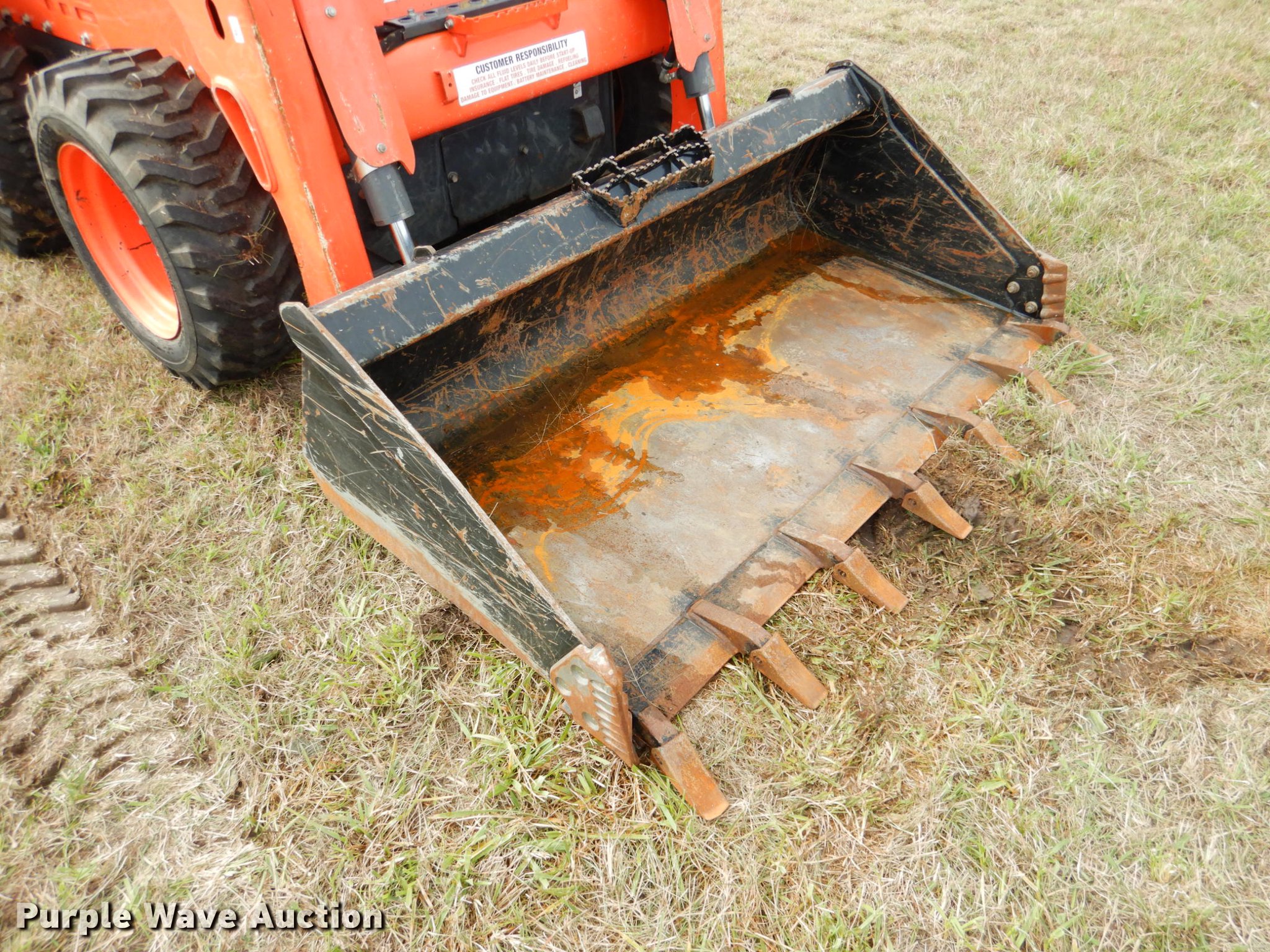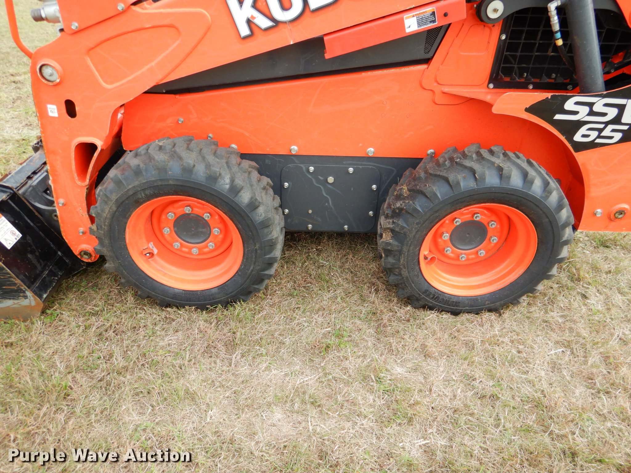 Purple Wave is selling a used Skid Steer Loader in Oklahoma. This item is a 2017 Kubota SSV65 skid steer with the following: 370 hours on meter, Kubota V2607 2.6L four cylinder diesel engine, Serial 8GG4077, Two speed hydrostatic transmission, Open station/canopy, Hand and foot controls, Front and rear work lights, Auxiliary hydraulics, Hydraulic quick coupler, 69"W bucket, Weld-on teeth, 10-16.5 NHS tires, Full warranty until 2/8/2019, Serial 11862, Unit# 11862
