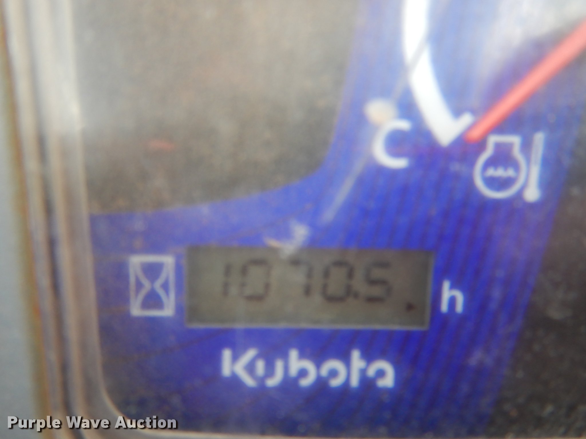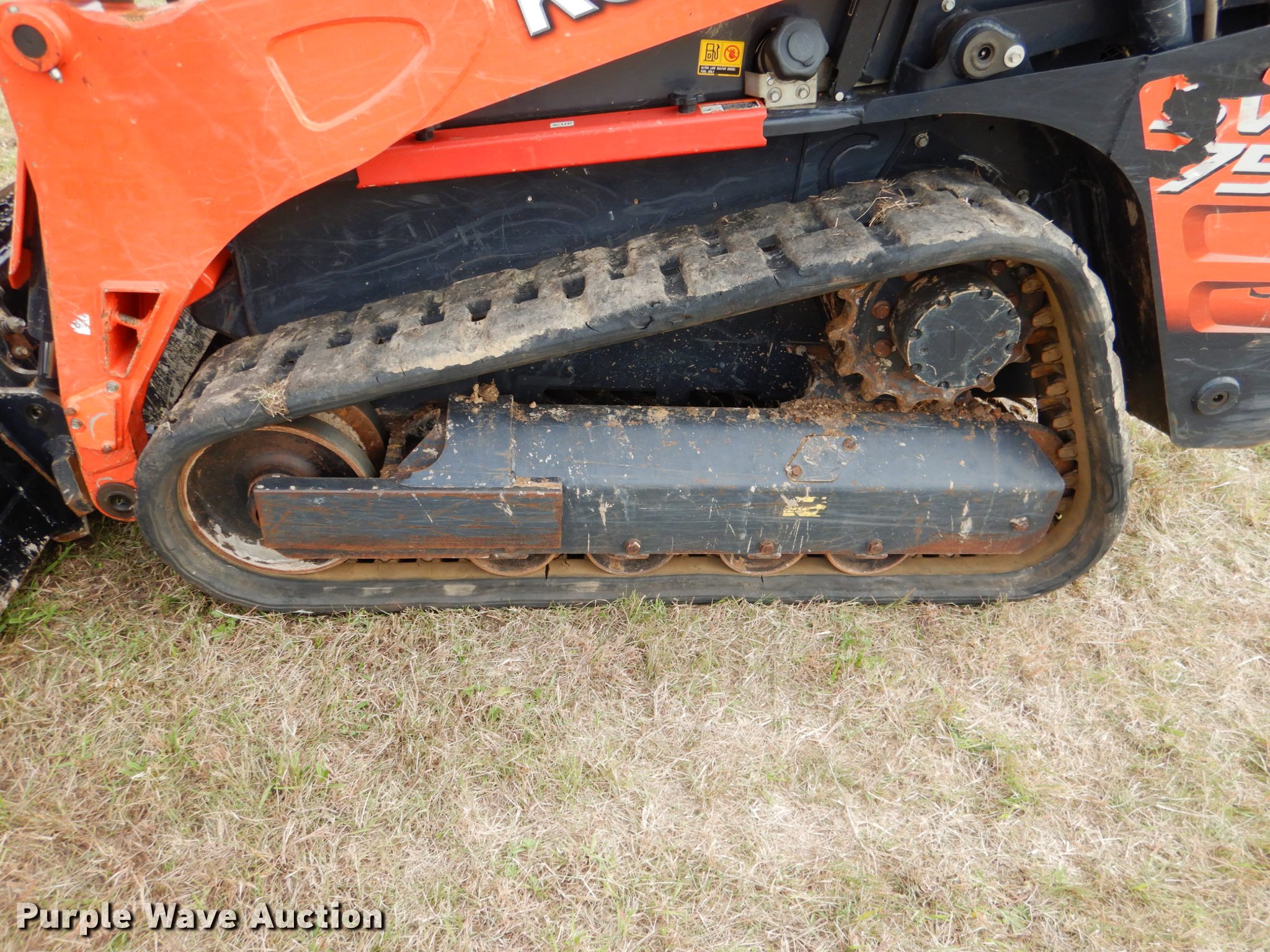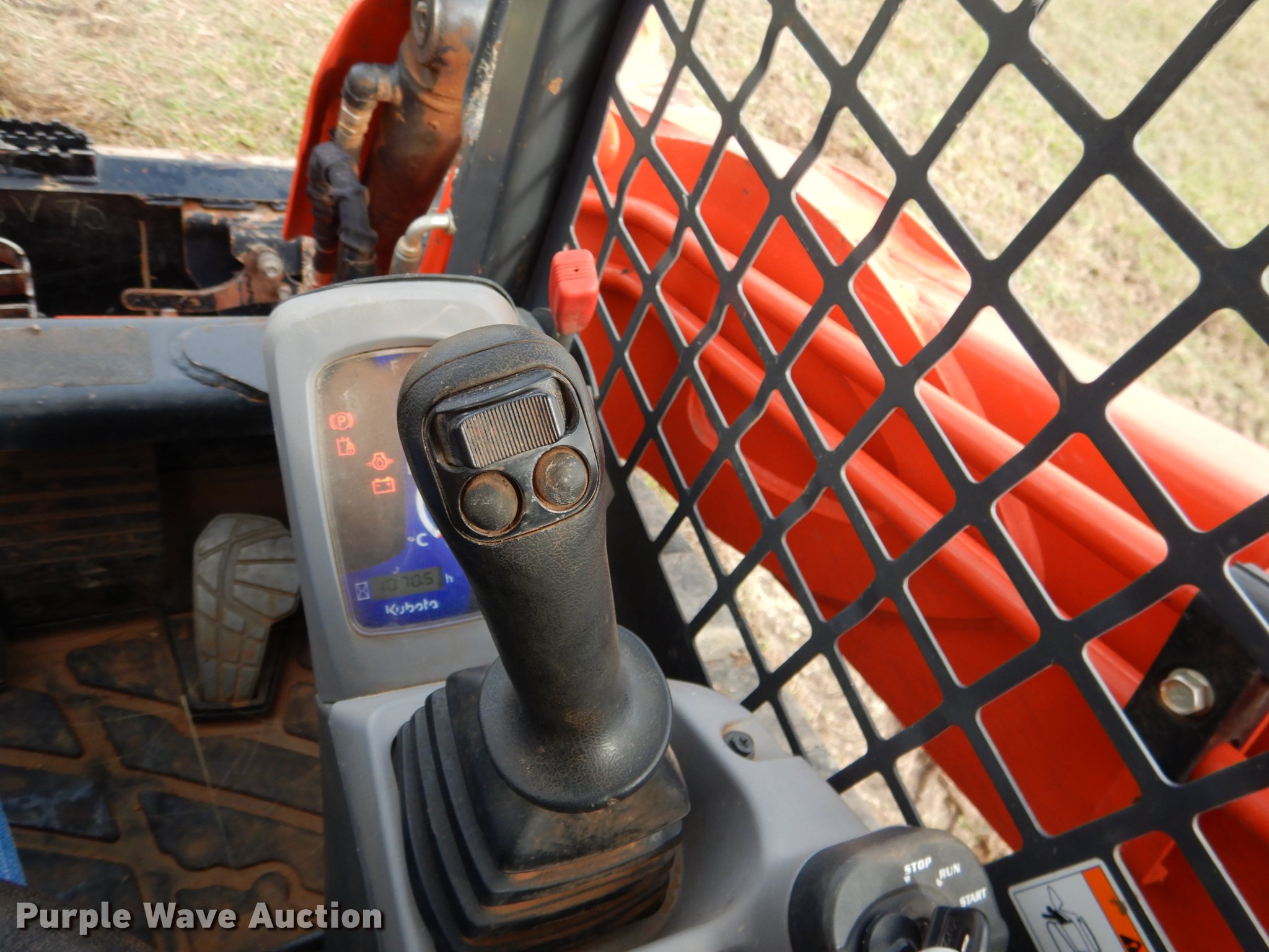 Purple Wave is selling a used Tracked Skid Steer Loader in Oklahoma. This item is a 2014 Kubota SVL75-2 skid steer with the following: 1,070 hours on meter, Kubota V3307 3.3L four cylinder turbo diesel engine, Two speed hydrostatic transmission, Open station/canopy, Joystick controls, Front and rear work lights, Auxiliary hydraulics, Hydraulic quick coupler, 75"W bucket, Bolt-on cutting edge, 12"W tracks, Serial 24448, Unit# 24448
