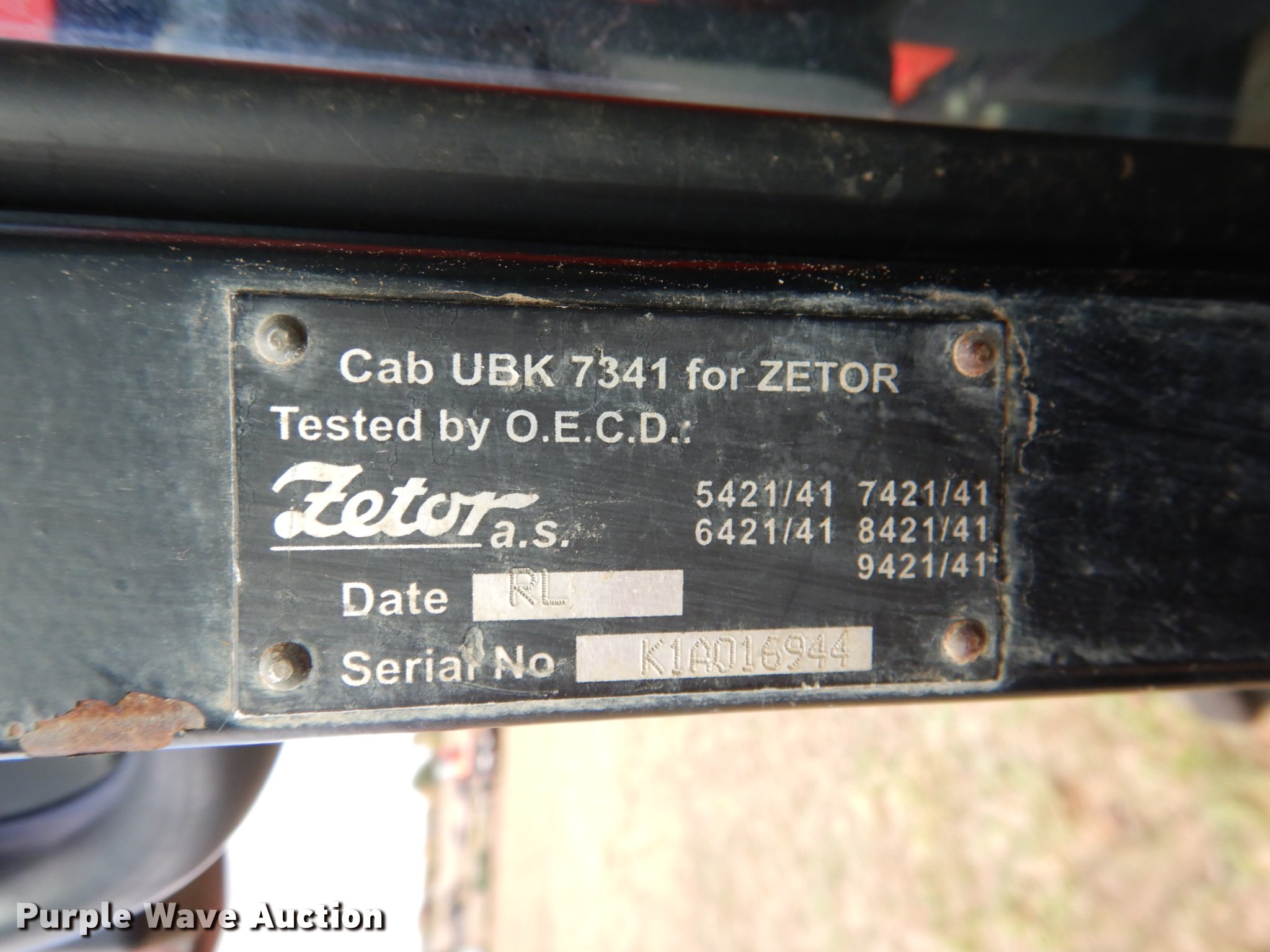 Purple Wave is selling a used Tractor in Oklahoma. This item is a 2006 Zetor Proxima 6441 tractor with the following: 1,161 hours on meter, Zetor 66AXL4 4.15L six cylinder turbo diesel engine, Manual transmission, 6F-6R gears, AC and heat, Zetor 102H loader, 35"L bale spear, Self-leveling, Two-lever controls, Three point, Seven pin outlet, 540 PTO, Rear hydraulic remote sets, 11.2-24 front tires, 16.0-30 rear tires, Serial K1A016944