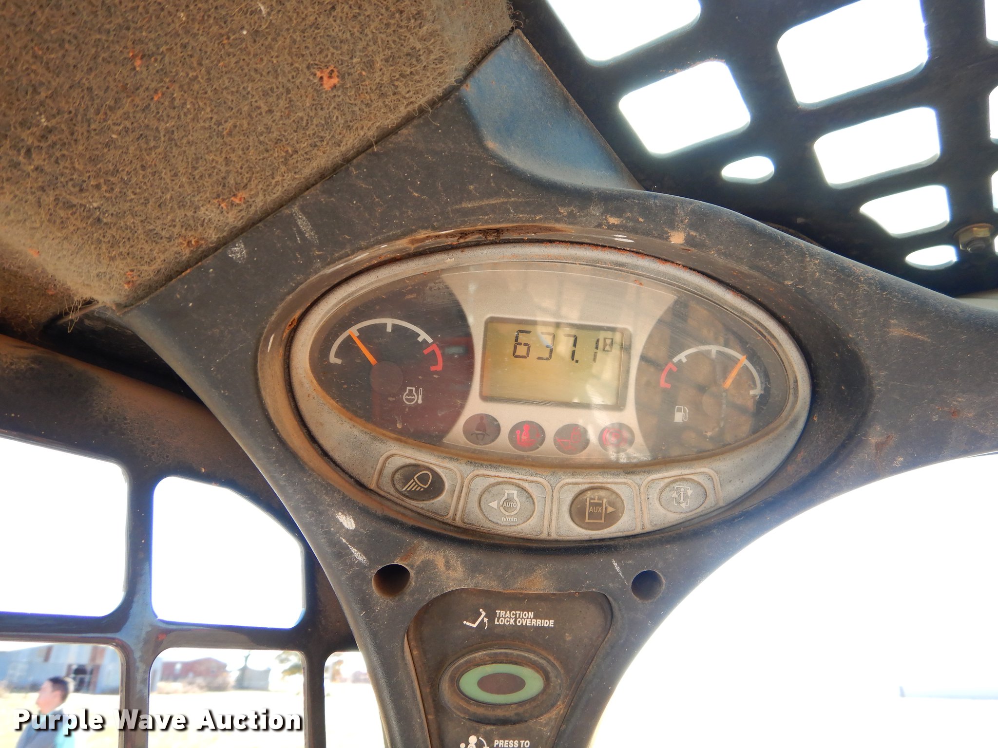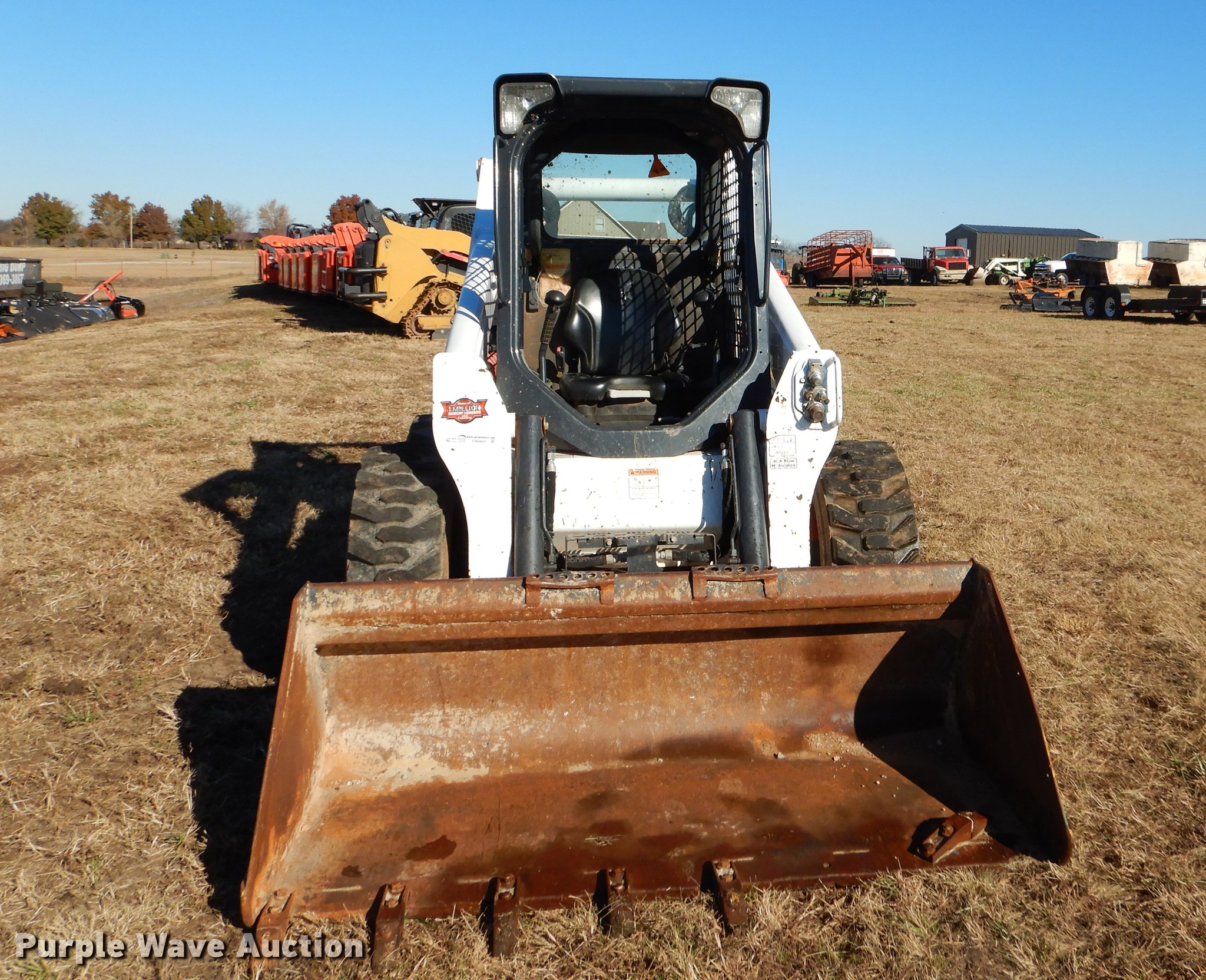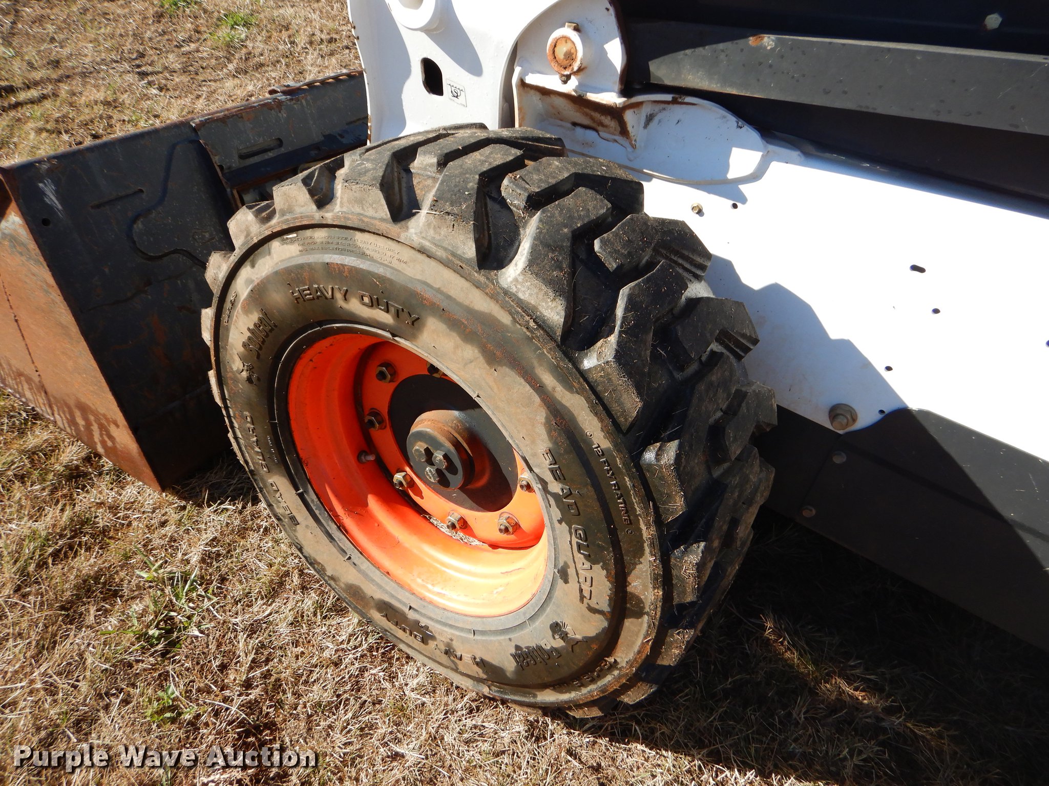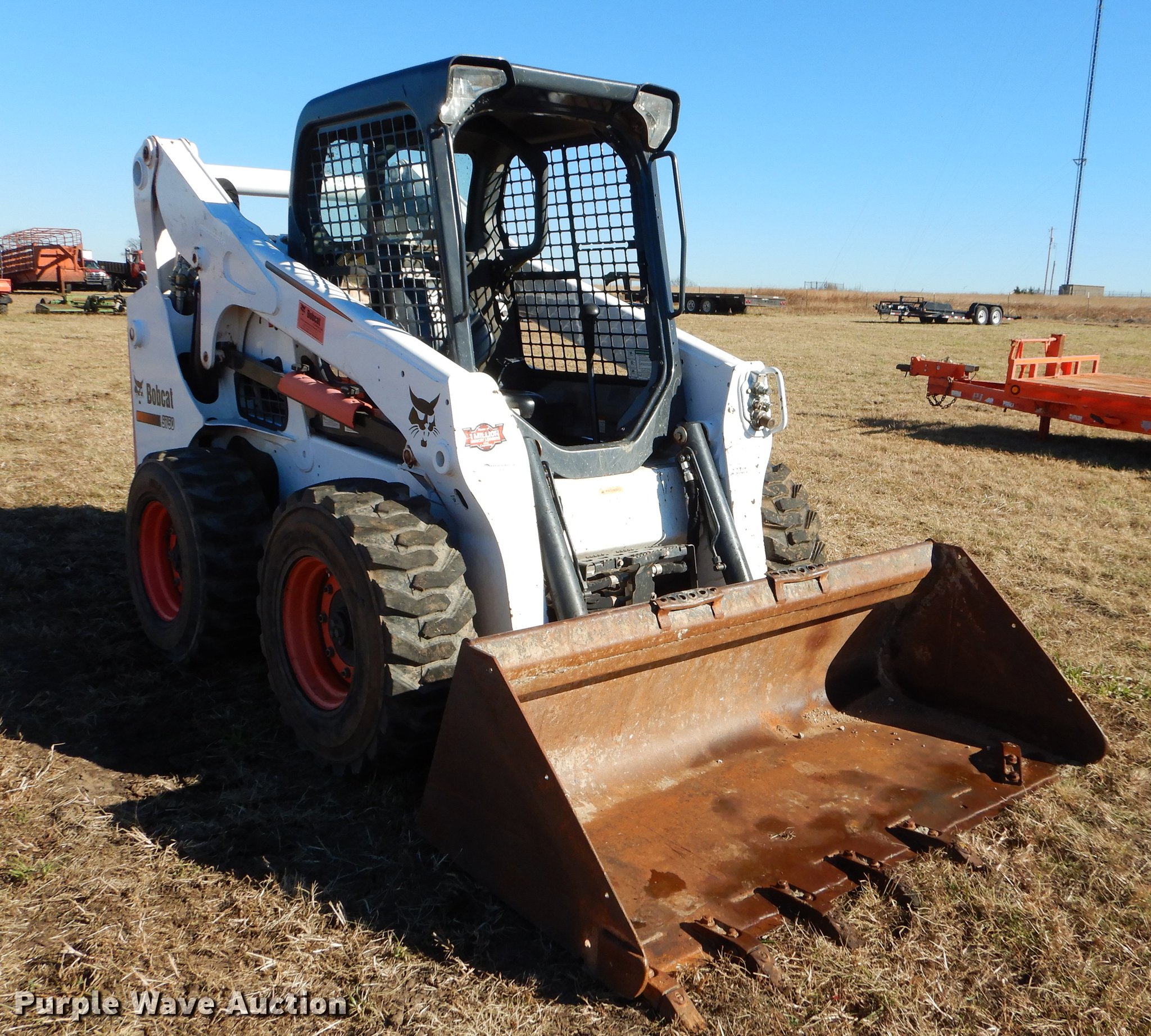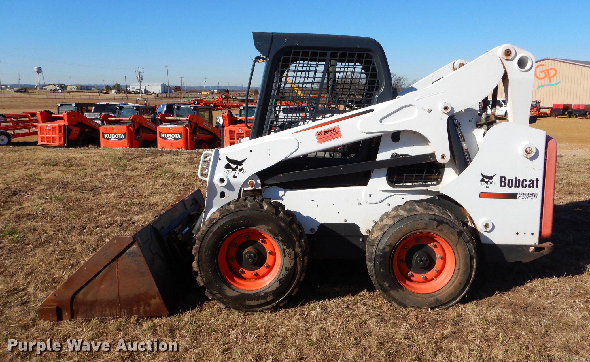 Purple Wave is selling a used Skid Steer Loader in Oklahoma. This item is a 2014 Bobcat S750 skid steer with the following: 636 hours on meter, Kubota four cylinder diesel engine, Two speed hydrostatic transmission, OROPS, Hand and foot controls, Suspension seat, Front and rear work lights, Backup alarm, Auxiliary hydraulics, 74"W bucket, Bolt-on teeth, 12-16.5 tires, Serial ATDZ13619