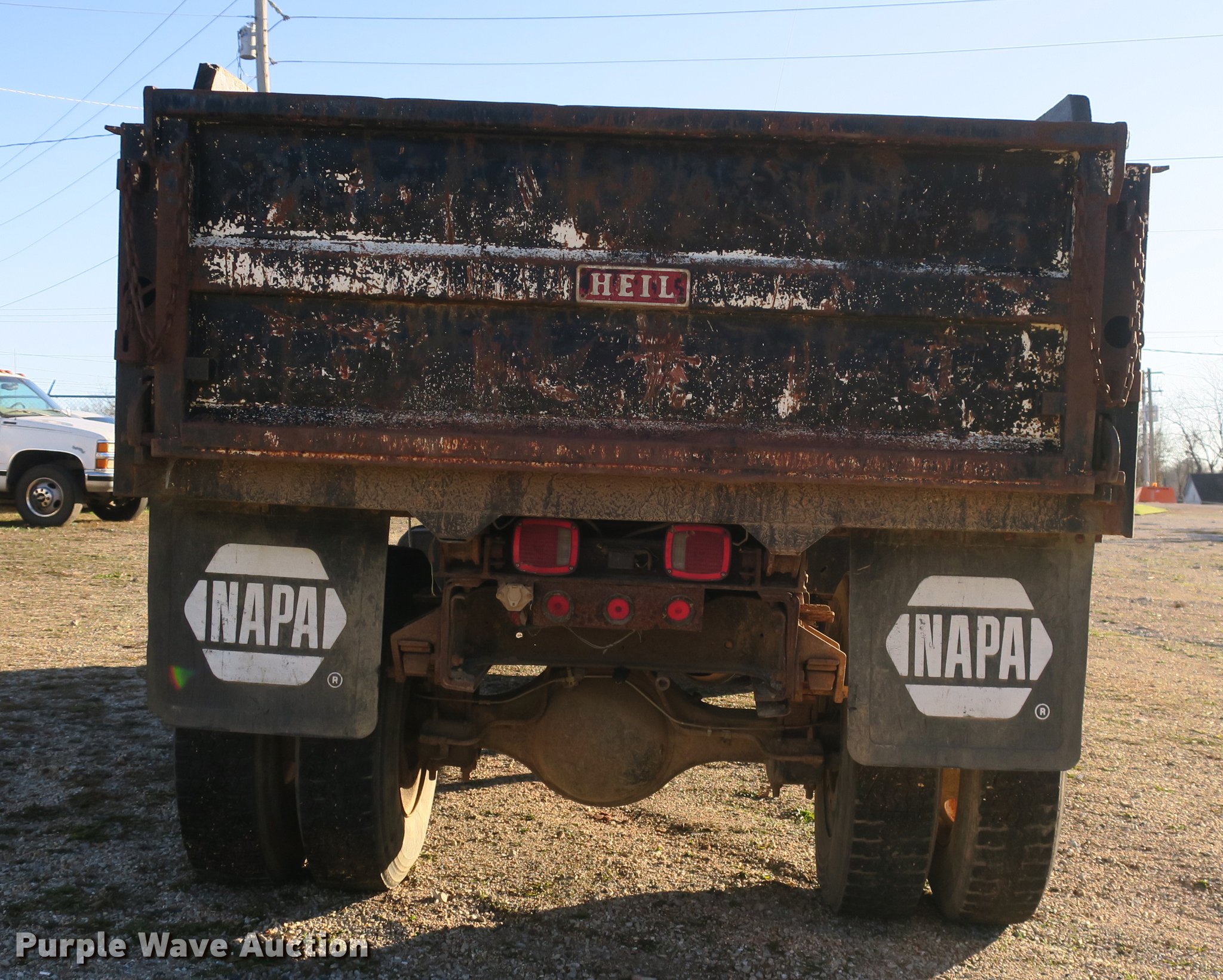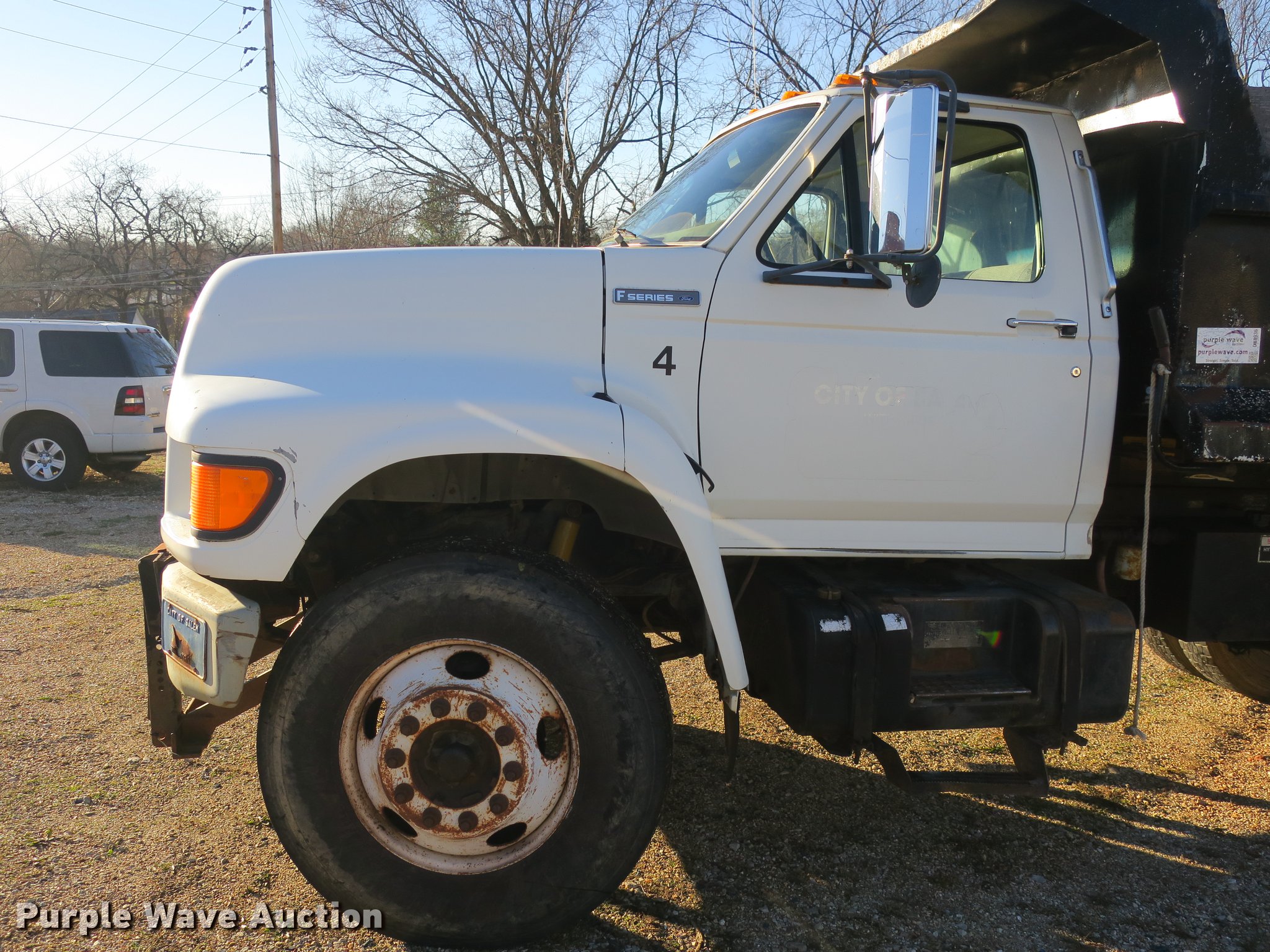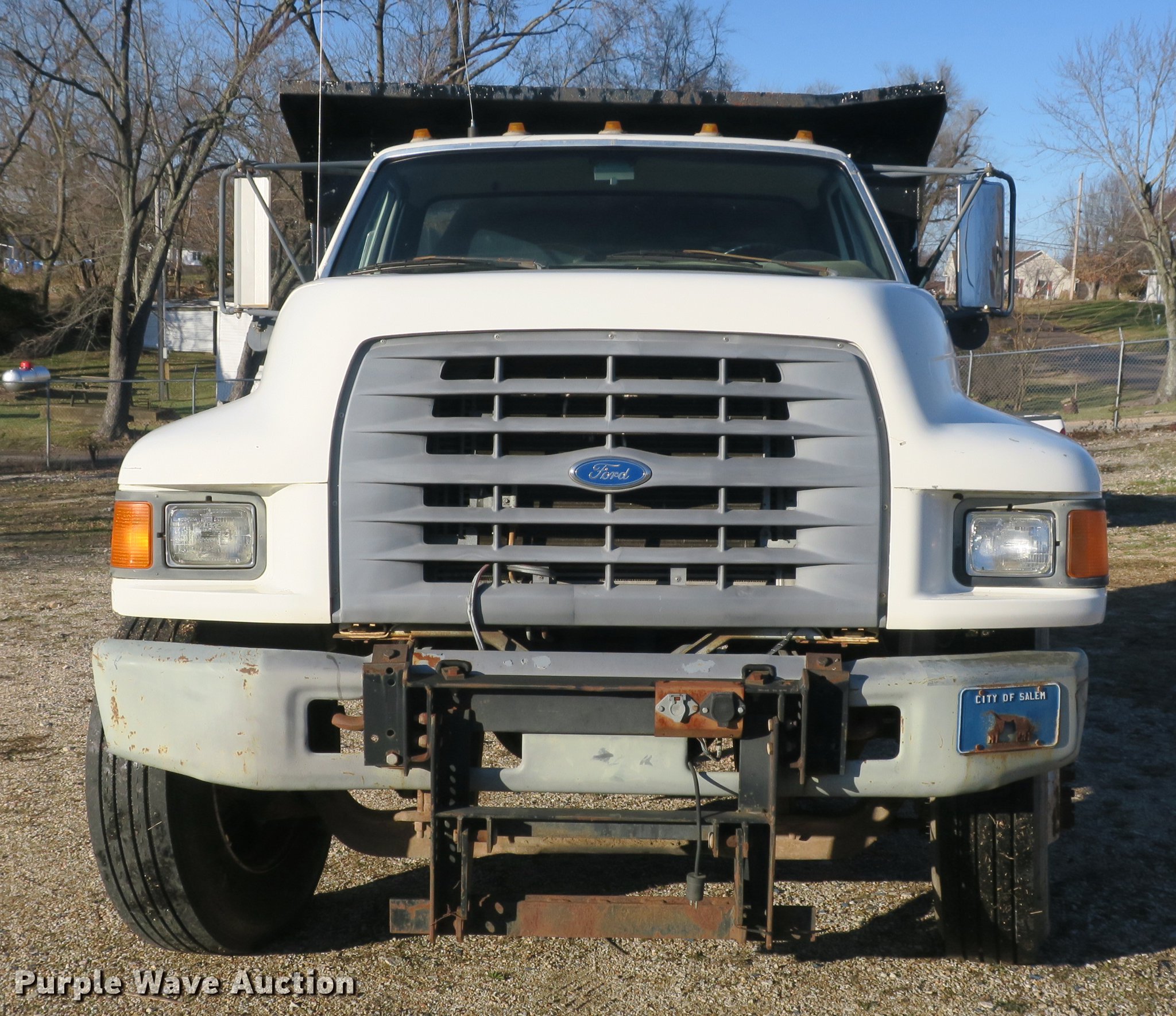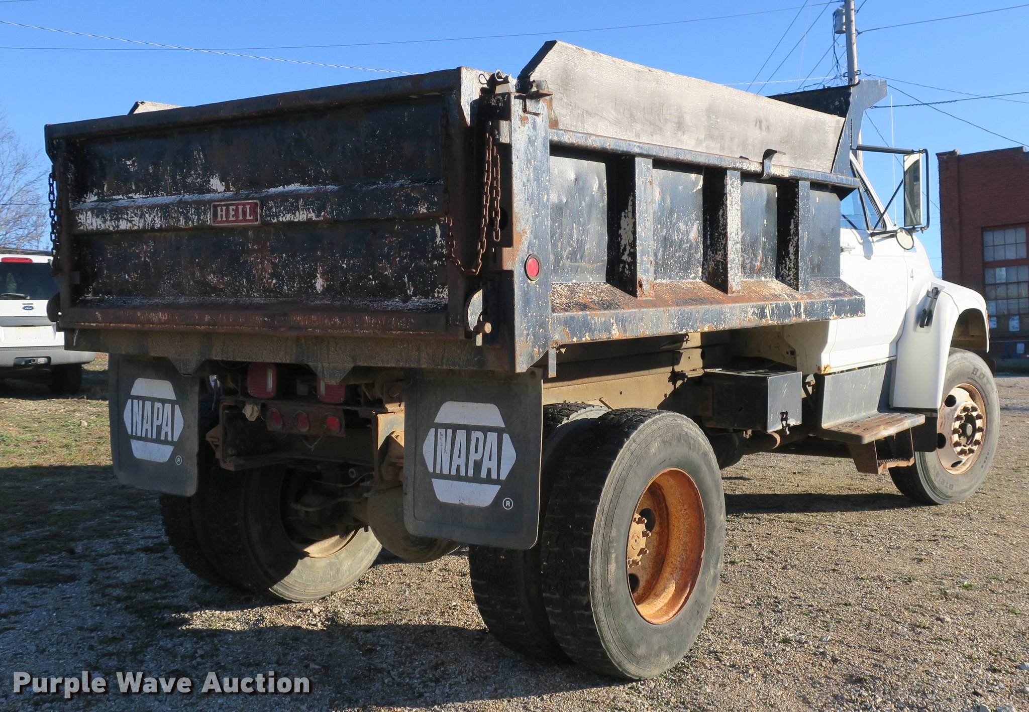 Purple Wave is selling a used Construction Dump Truck in Missouri. This item is a 1997 Ford F700 dump truck with the following: 81,189 miles on odometer, Cummins 5.9L L6 turbo diesel engine, Allison automatic transmission, Single axle, PTO, Heil SLT5YD10-0 dump bed, 10'L x 91"W, 28" side height, 12" side board height, Single ram hoist, Manual end gate, Spring suspension, Hydraulic brakes, 11R22.5 tires, GVWR 33,000 lbs
