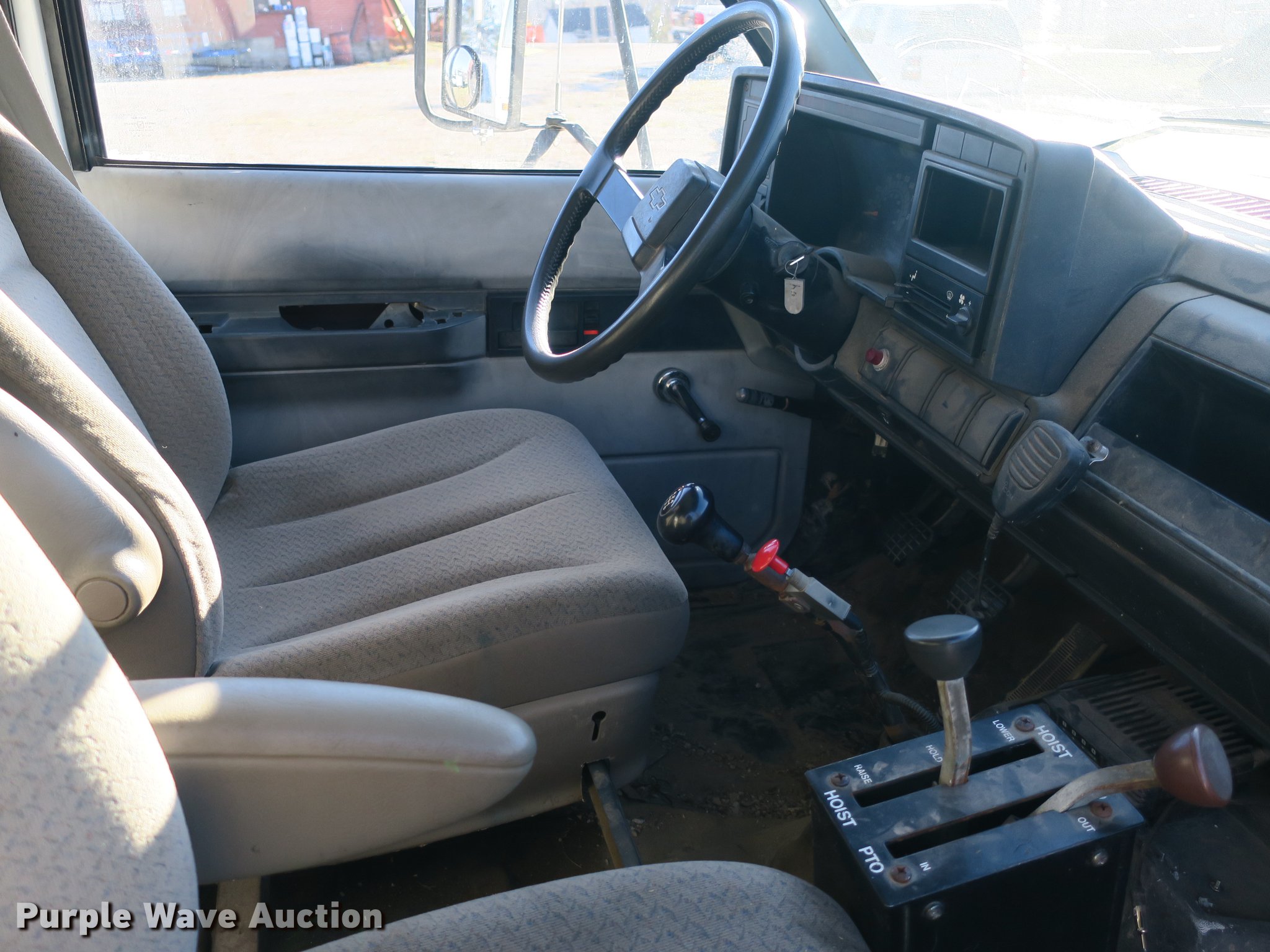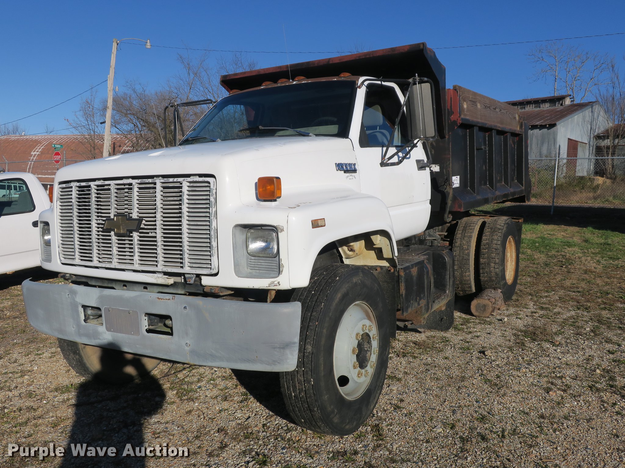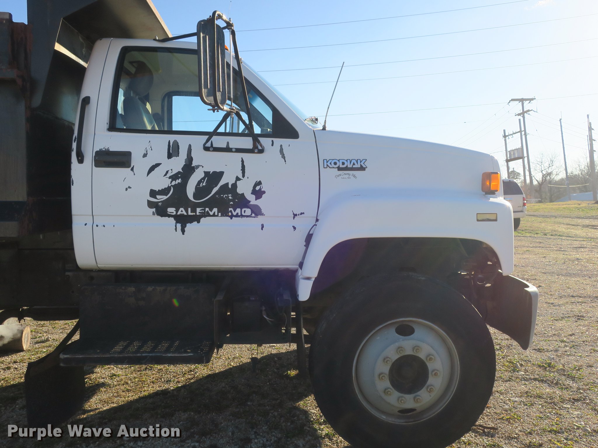 Purple Wave is selling a used Construction Dump Truck in Missouri. This item is a 1992 Chevrolet Kodiak C5500 dump truck with the following: 115,774 miles on odometer, 6.0L V8 gas engine, Five speed manual transmission, Two speed rear end, Single axle, Heat, Front tow hooks, PTO, 10'L x 91"W steel dump bed, 32" side height, 12" side board height, Single ram hoist, Manual end gate, Single fuel tank, Pintle hitch, Spring suspension, Hydraulic brakes, 11R22.5 tires