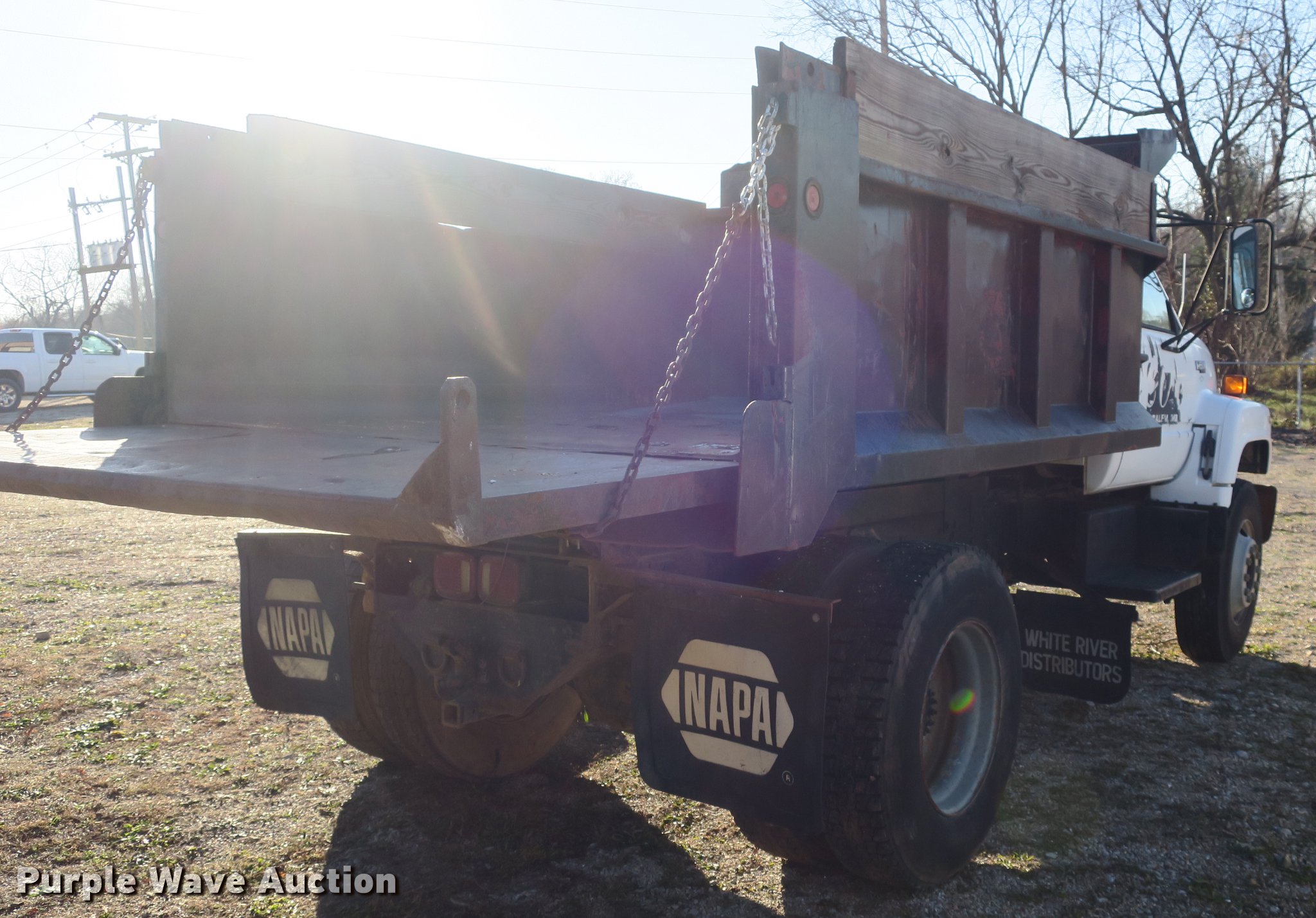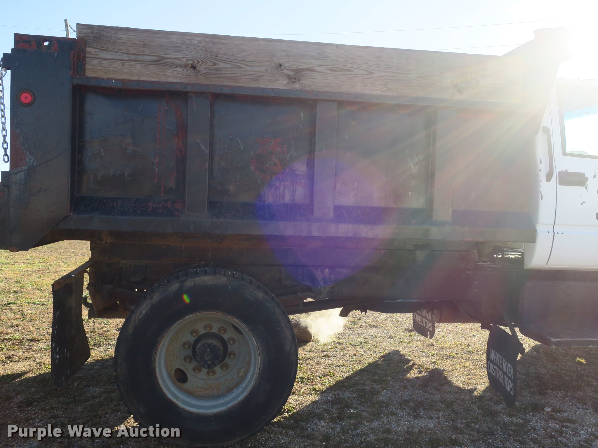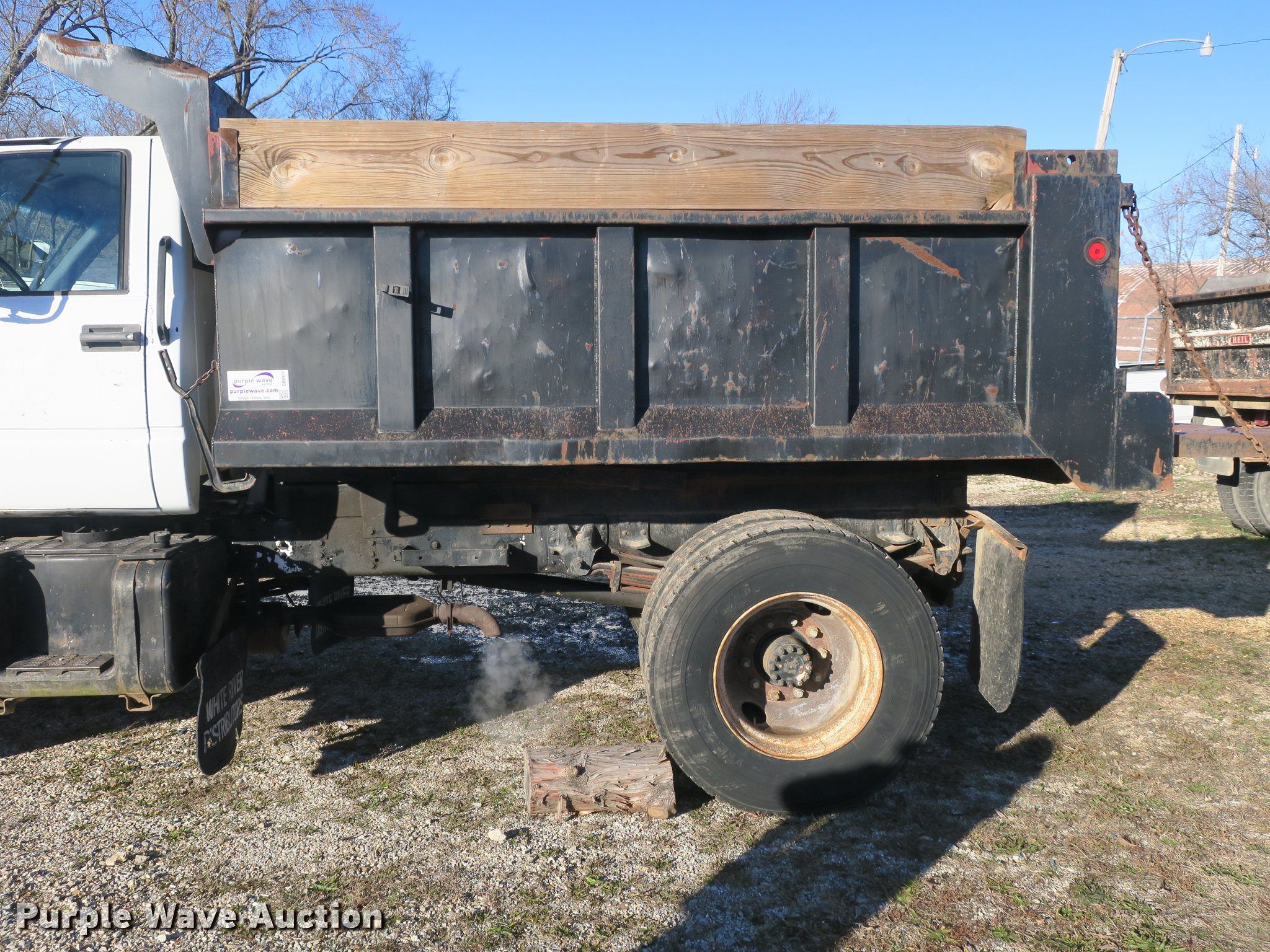 Purple Wave is selling a used Construction Dump Truck in Missouri. This item is a 1992 Chevrolet Kodiak C5500 dump truck with the following: 115,774 miles on odometer, 6.0L V8 gas engine, Five speed manual transmission, Two speed rear end, Single axle, Heat, Front tow hooks, PTO, 10'L x 91"W steel dump bed, 32" side height, 12" side board height, Single ram hoist, Manual end gate, Single fuel tank, Pintle hitch, Spring suspension, Hydraulic brakes, 11R22.5 tires