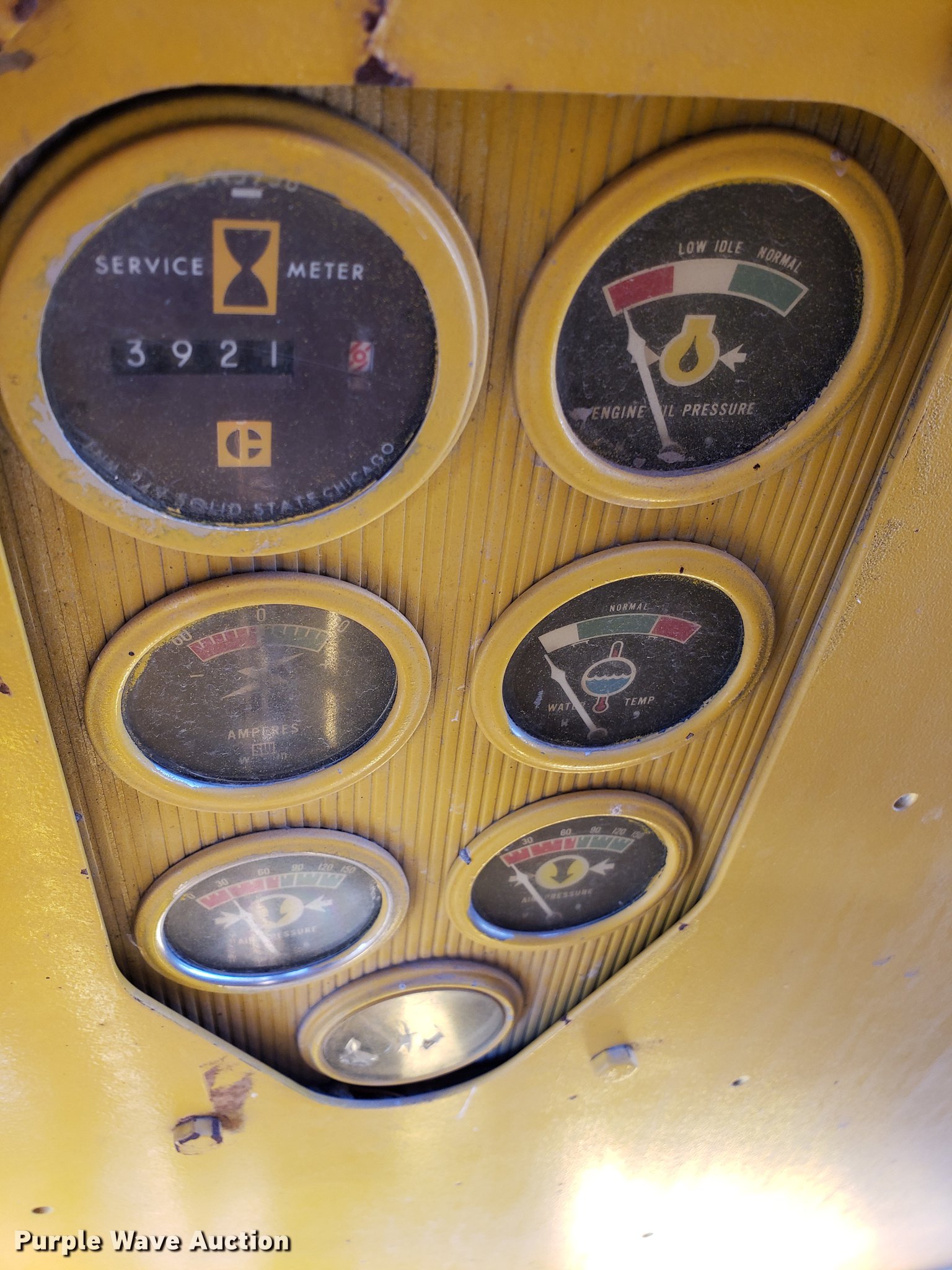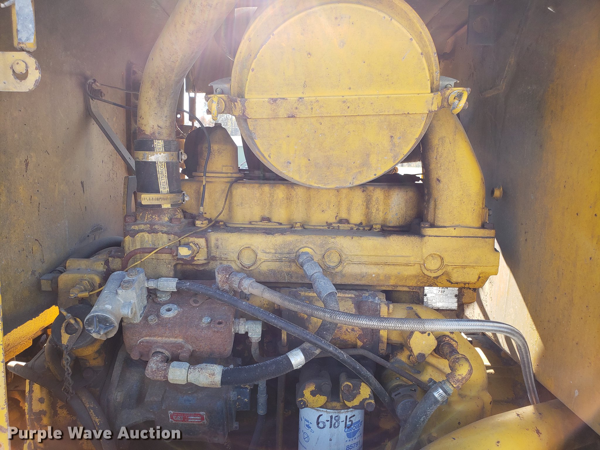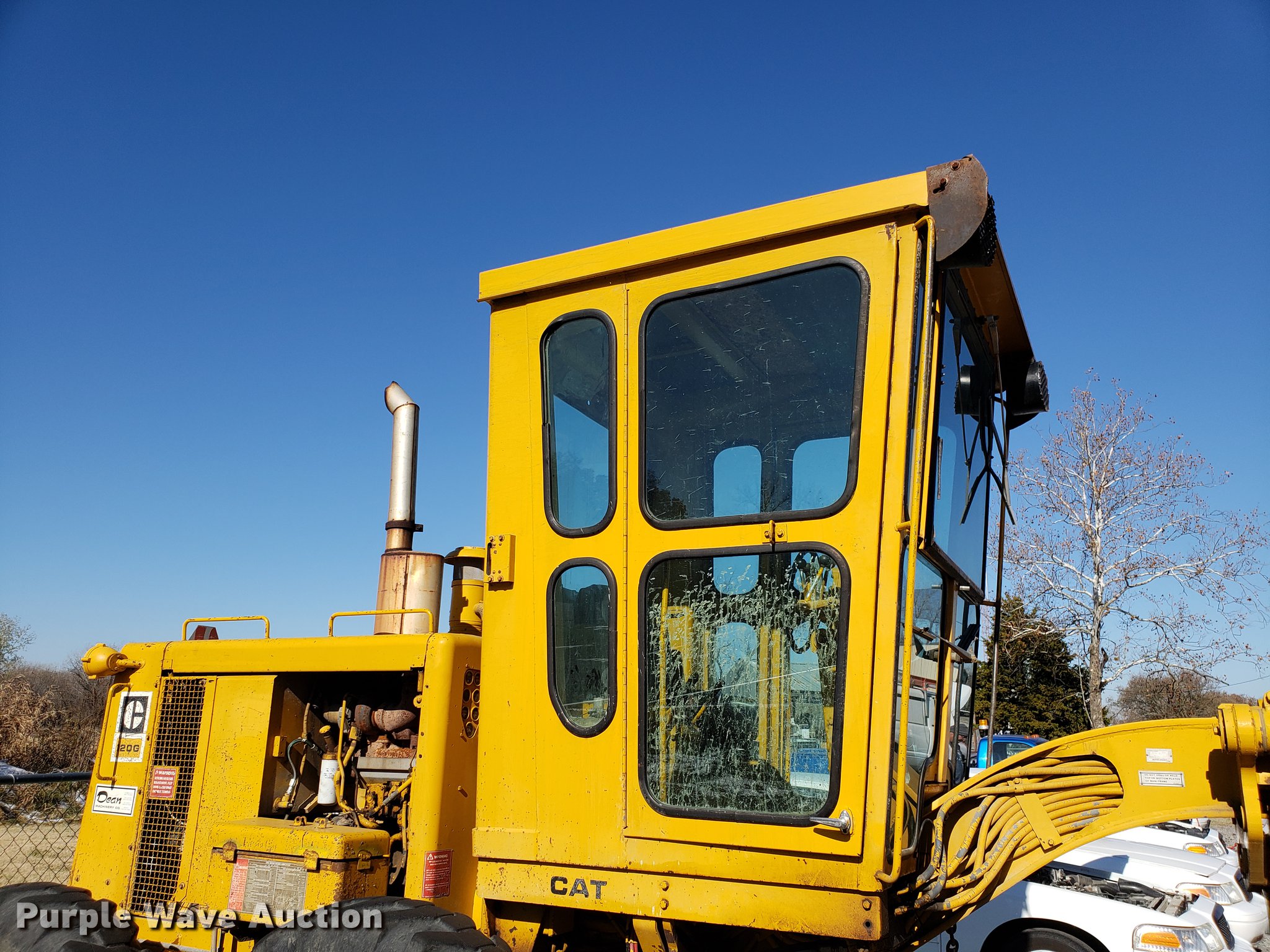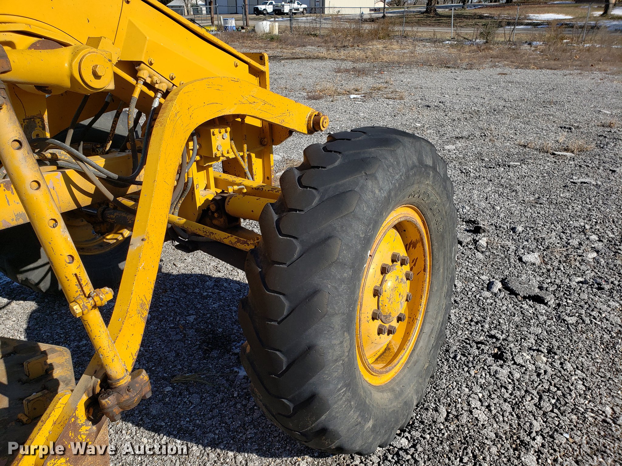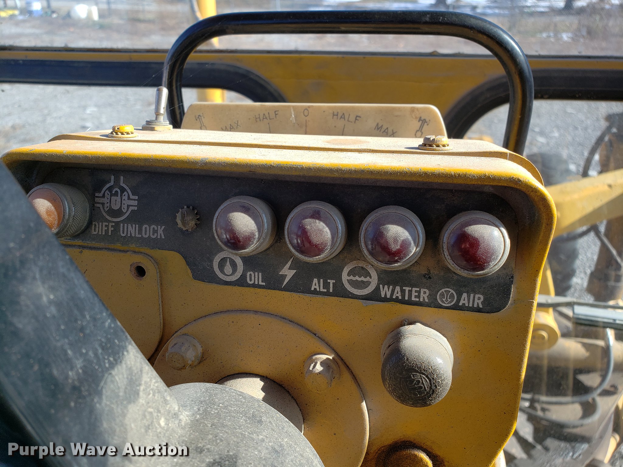 Purple Wave is selling a used Motor Grader in Missouri. This item is a Caterpillar 120G rigid frame motor grader with the following: 3,921 hours on meter, Caterpillar four cylinder turbo diesel engine, Powershift transmission, 6F-6R gears, EROPS enclosed cab, Heat, Air suspension seat, 12'W moldboard, Tip control, Side shift, 13-24 tires, Possible head gasket issue, Serial 87V3672
