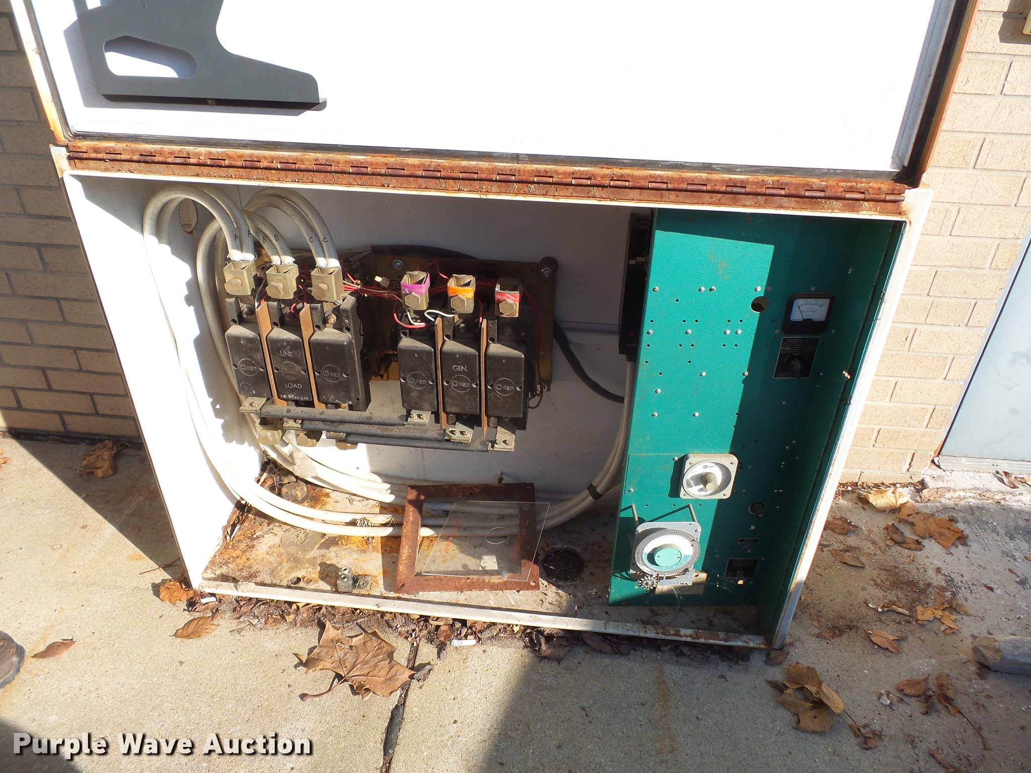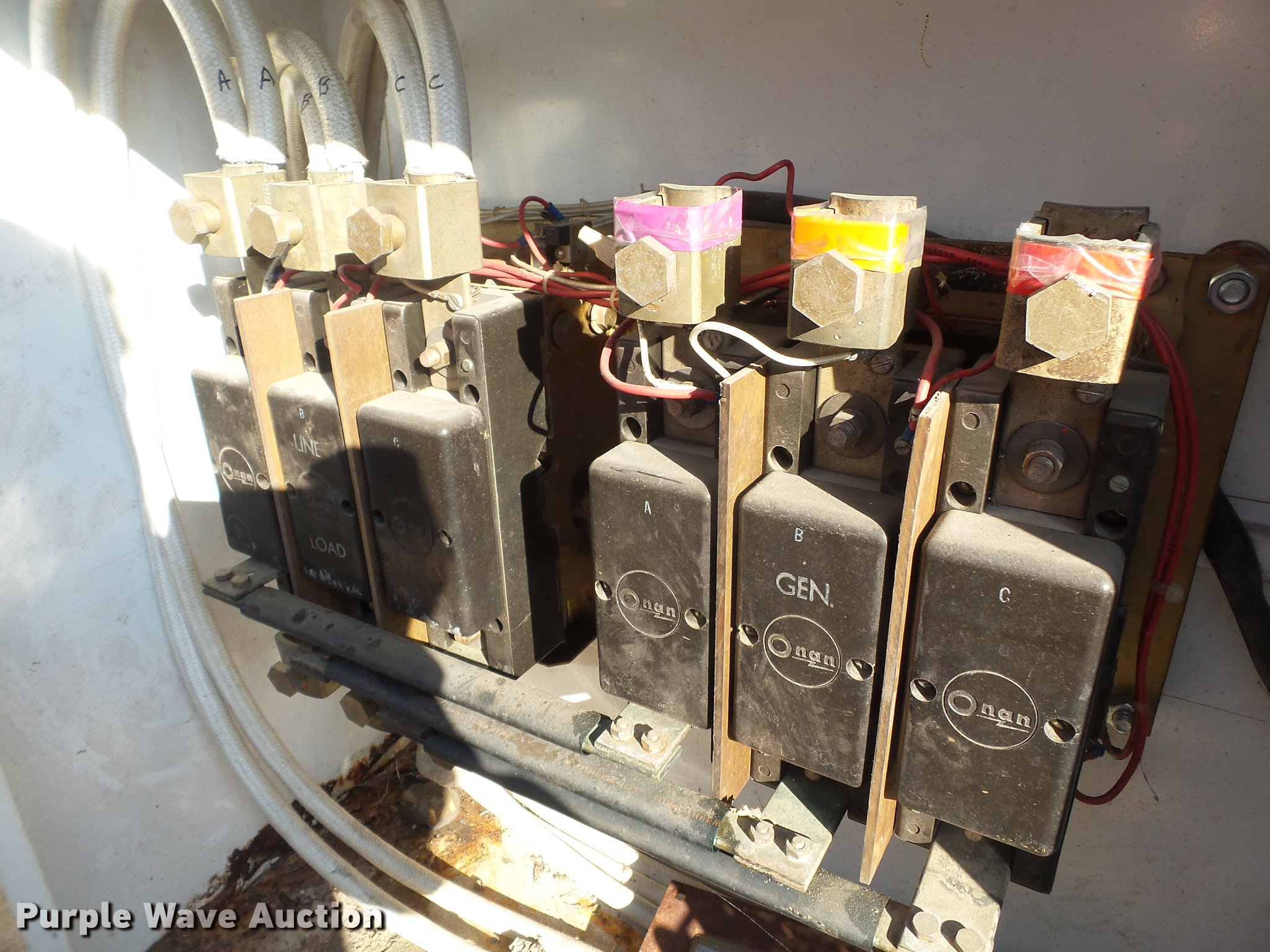 Purple Wave is selling a used Generator Set in Missouri. This item is a Onan 65KB-4R/71848L generator with the following: 1,762 hours on meter, International V401 eight cylinder natural gas engine, Electric start, 65 kW, 120V single phase, 208V three phase, Transfer switch, Skid mounted, Serial 0269085644