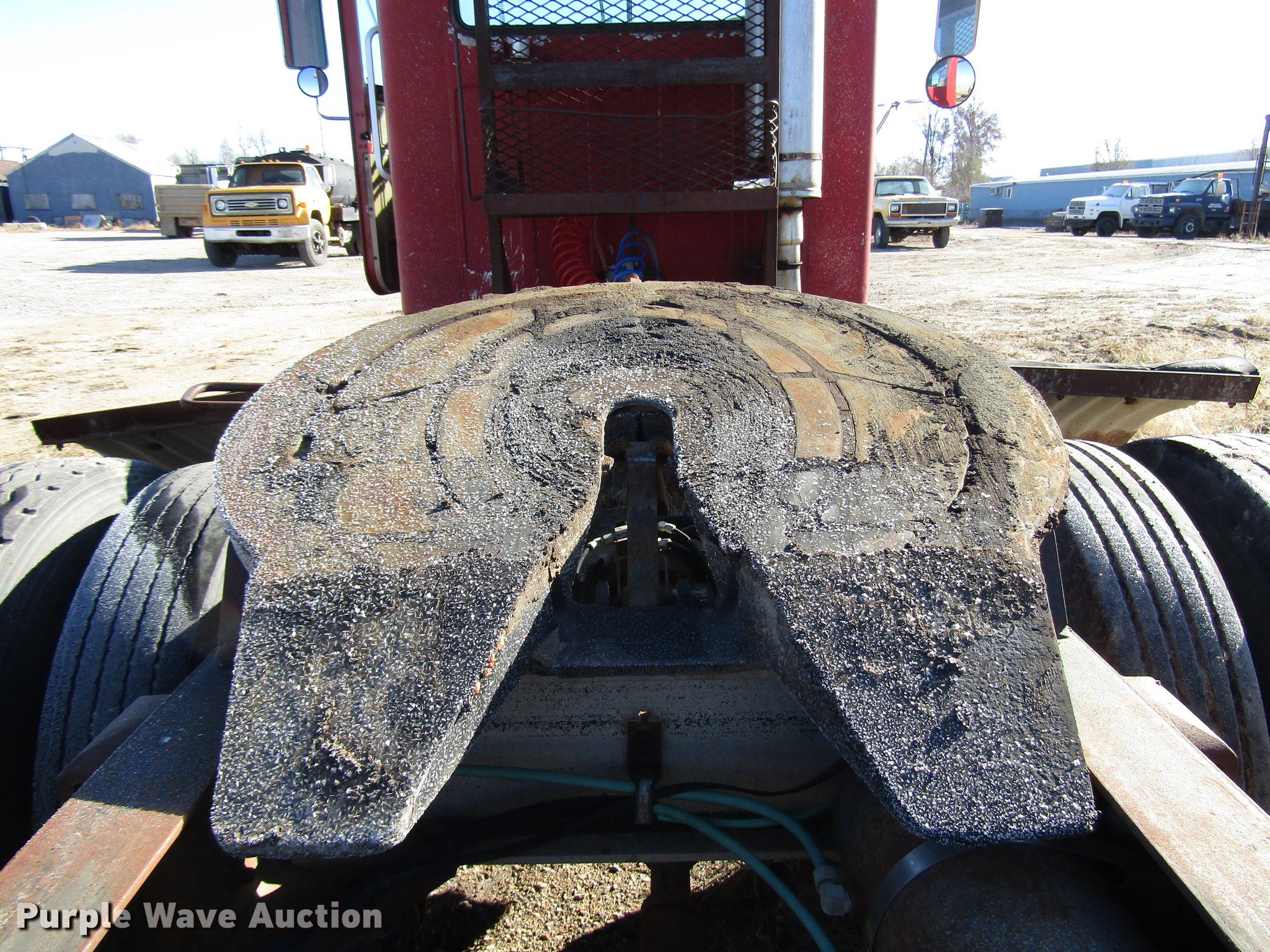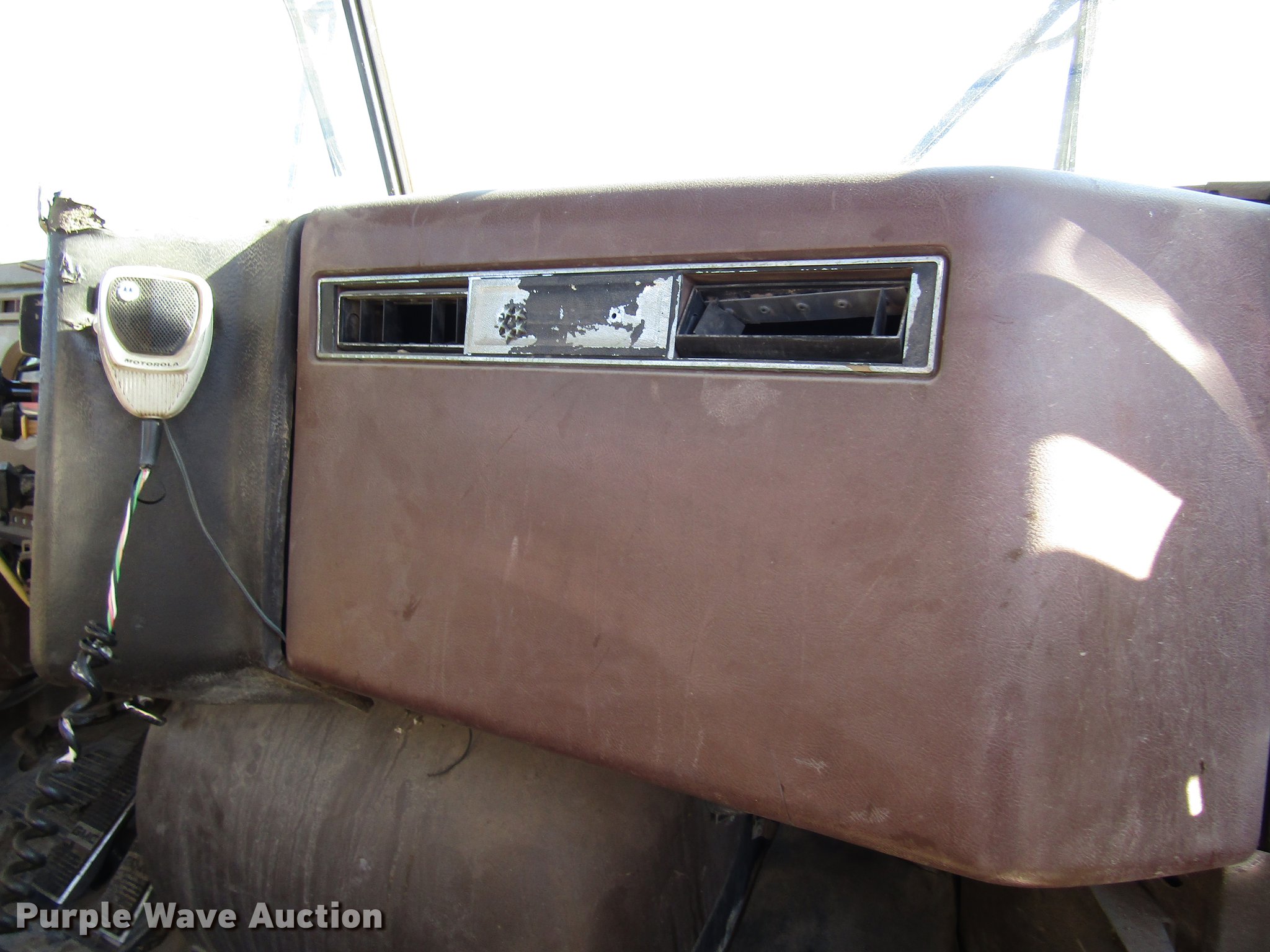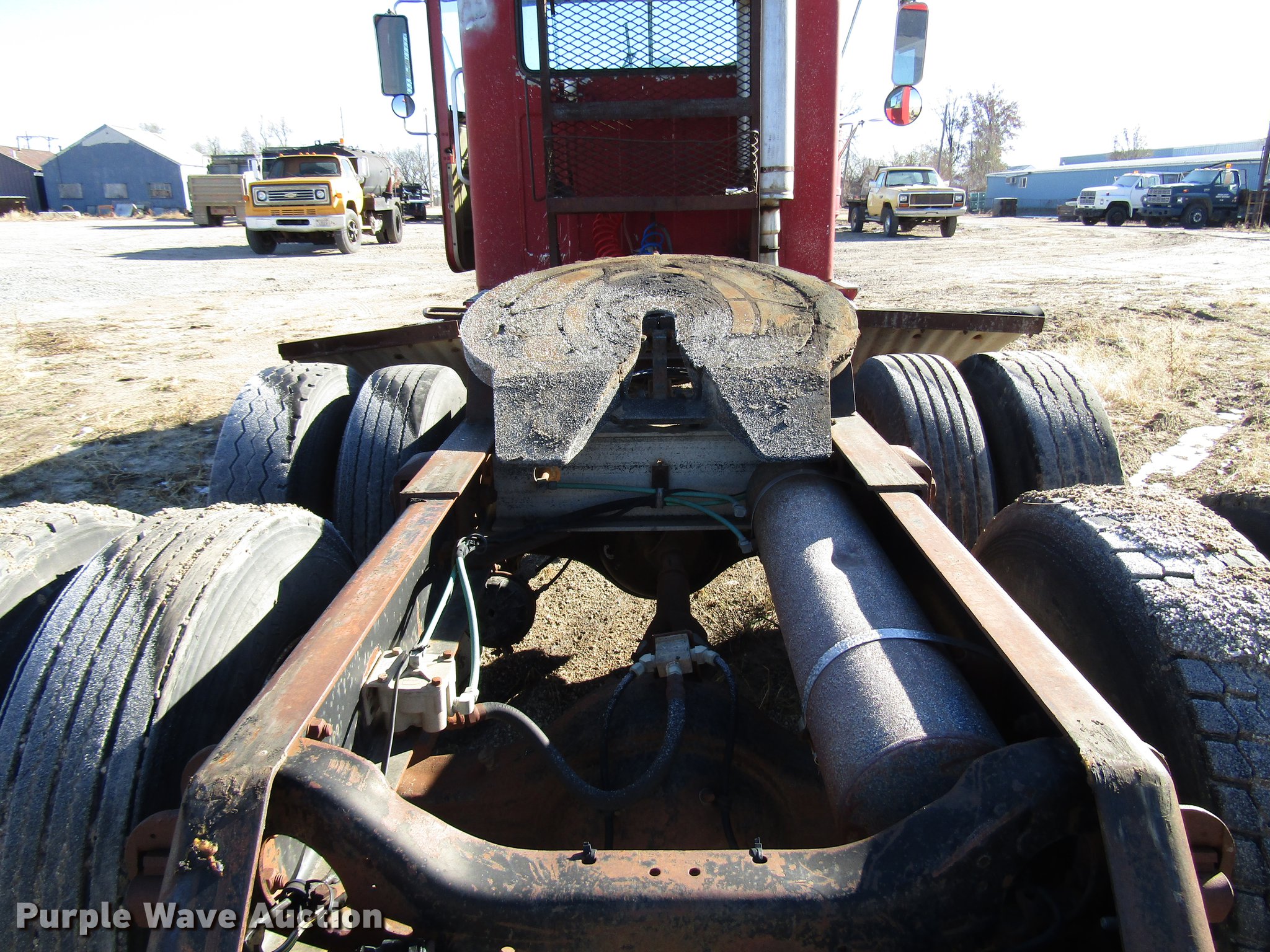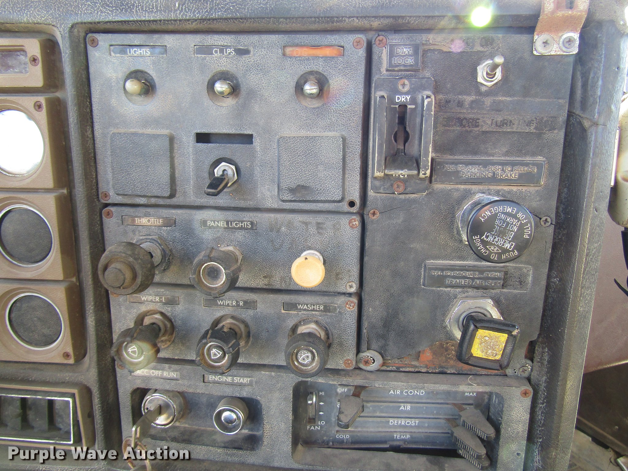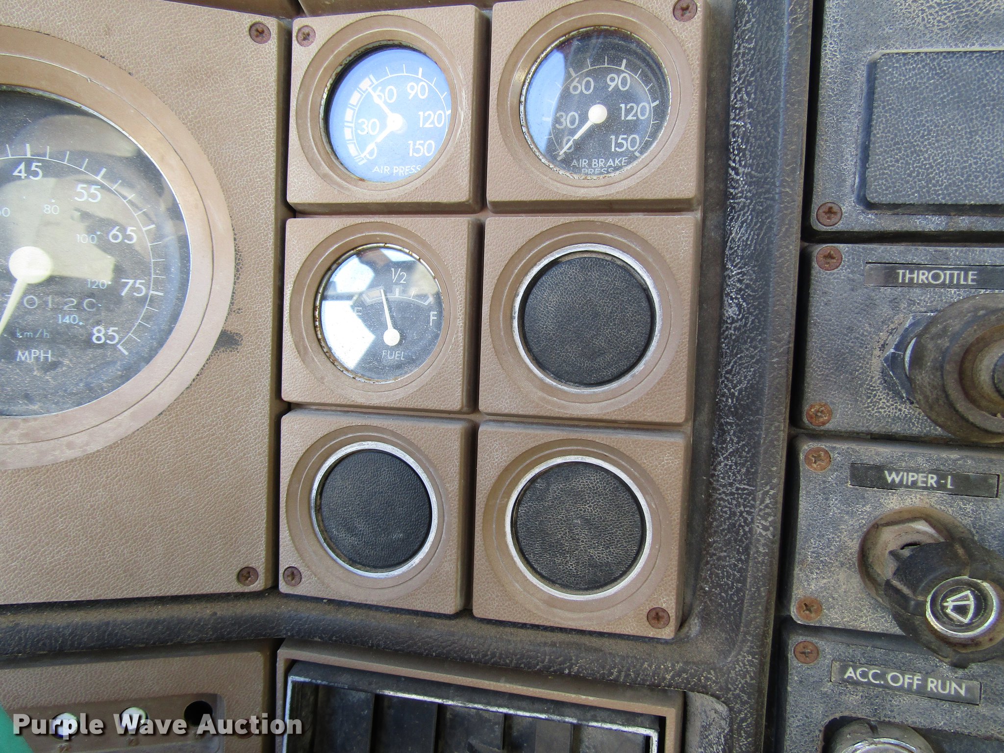 Purple Wave is selling a used Truck Tractor in Kansas. This item is a 1980 GMC General semi truck with the following: 530,120 miles on odometer, 1,565 hours on meter, Cummins NHC250 six cylinder diesel engine, Serial 11658445, Nine speed manual transmission, Tandem axle, Full differential lock, Heat, AM/FM, Air suspension seat, Block heater, Front tow hooks, Headache rack, Chain hanger, Single rear exhaust stack, Steel deck plate, Fixed fifth wheel plate, Single fuel tank, Quarter fenders, Spring suspension, Air brakes, 190" wheelbase, 11R22.5 tires, Rear end third member out