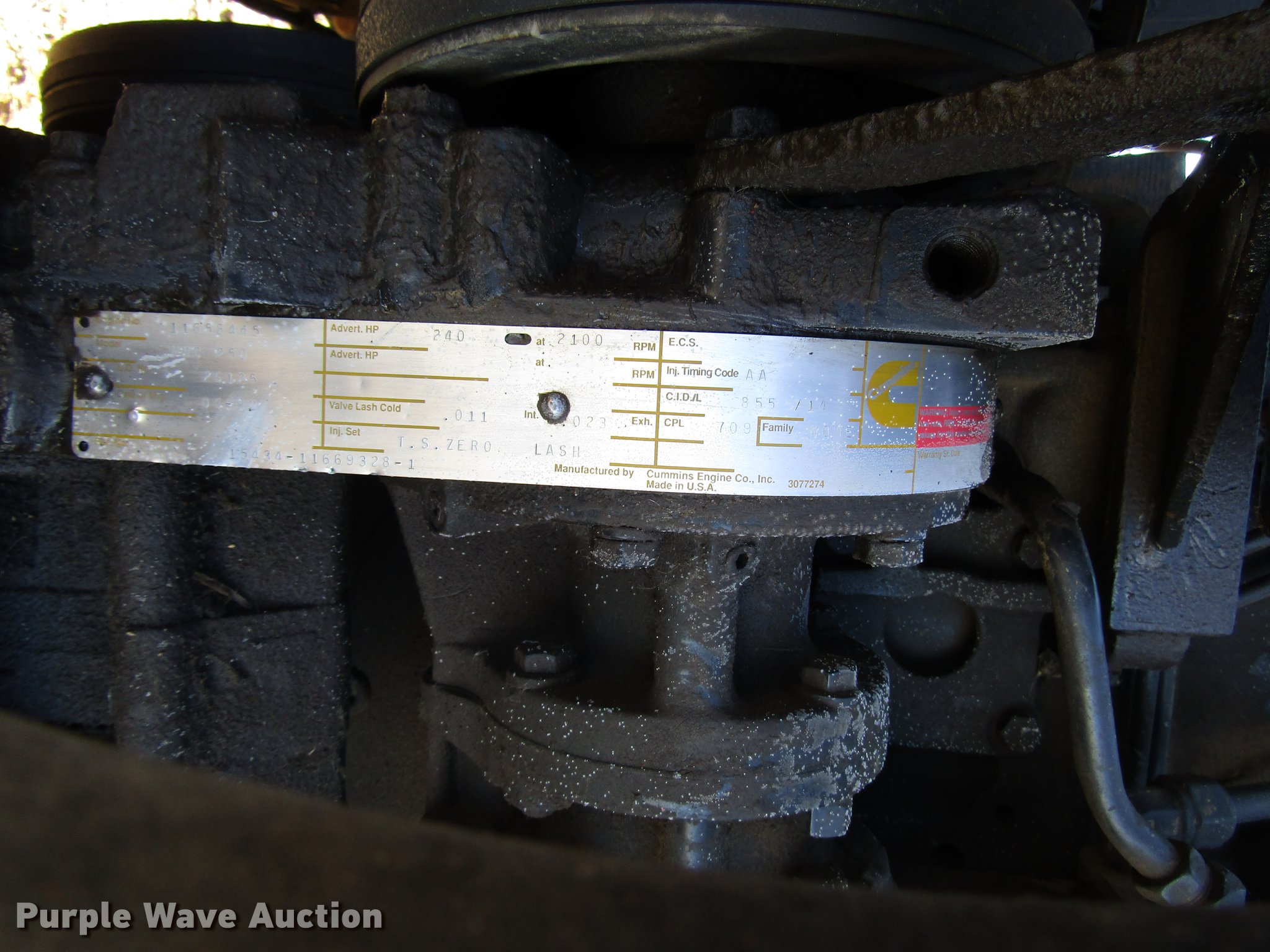 - Cummins NHC250 six cylinder diesel engine