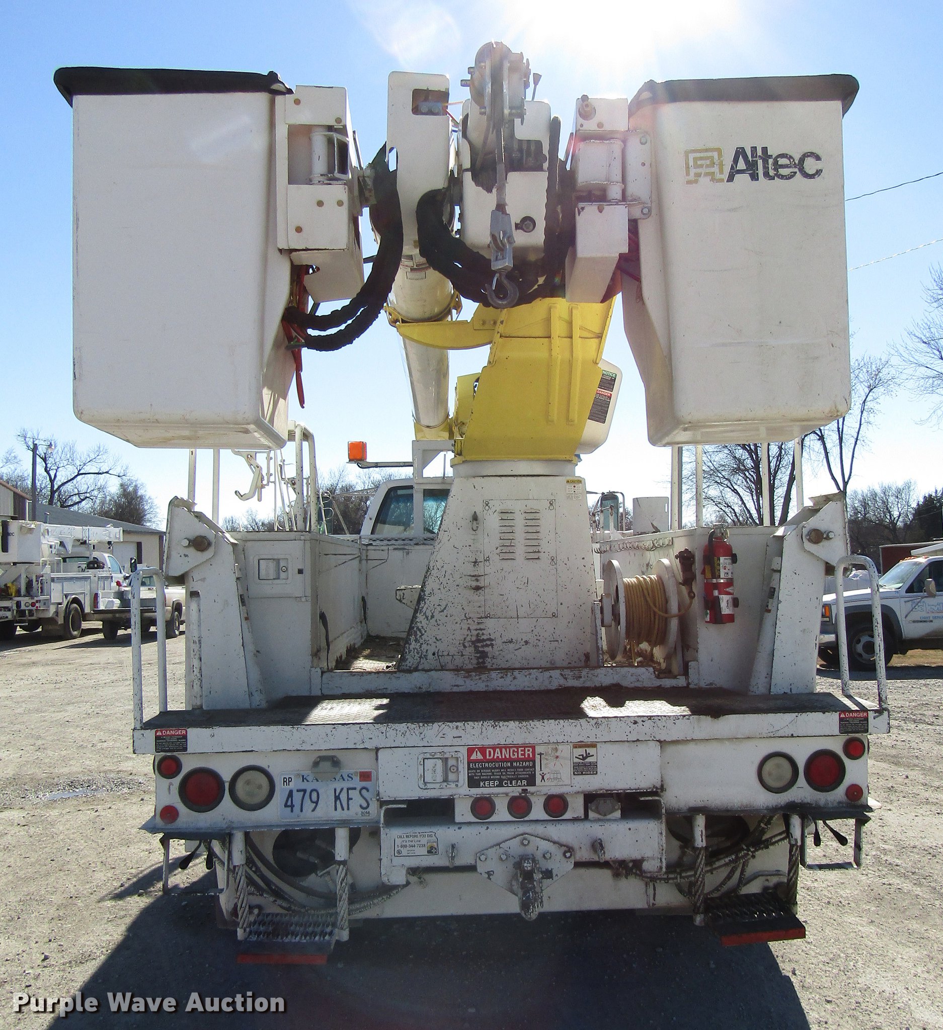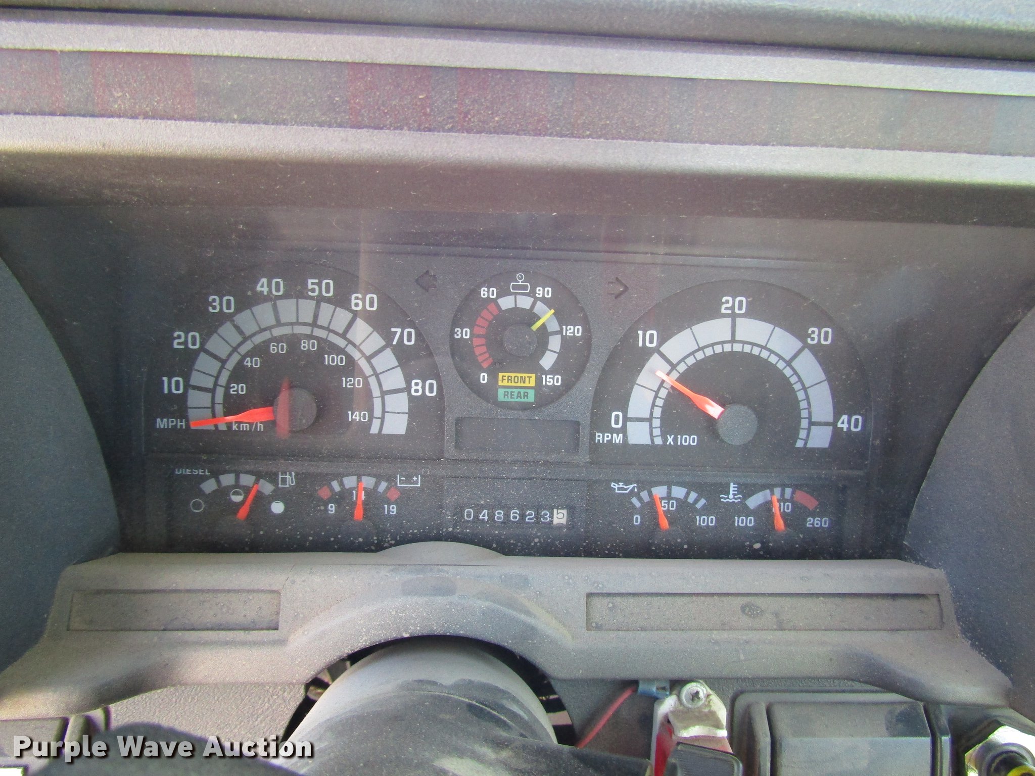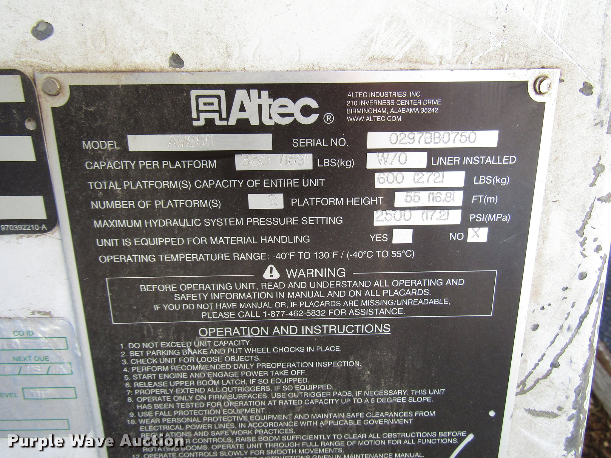 Purple Wave is selling a used Bucket Truck in Kansas. This item is a 1997 Chevrolet C7500 bucket truck with the following: 48,623 miles on odometer, 9,724 PTO hours on meter, Caterpillar 3116 6.6L L6 turbo diesel engine, Serial 9GK57506, Five speed manual transmission, Single axle, AC and heat, AM/FM, Auxiliary controls, Beacon light, Block heater, Front tow hooks, Quick-connect power outlet, PTO, Altec service bed, 15'L, Shelving, Slide-out drawers, Utility rack, Compartment lighs, Work lights, Brutus inverter, Serial 37-66021, 1997 Altec AM855 boom, 55' boom length, 350 lbs max lift capacity, Man basket, 55' max lift height, Hydraulic quick coupler on basket, Ground and platform controls, Boom rotation, Articulating boom, (4) outriggers, Serial 0297BB0750, Dual fuel tanks, Pintle hitch, Trailer wiring, Spring suspension, Air brakes, 197" wheelbase, 11R22.5 tires, GVWR 33,000 lbs, Possible air leak