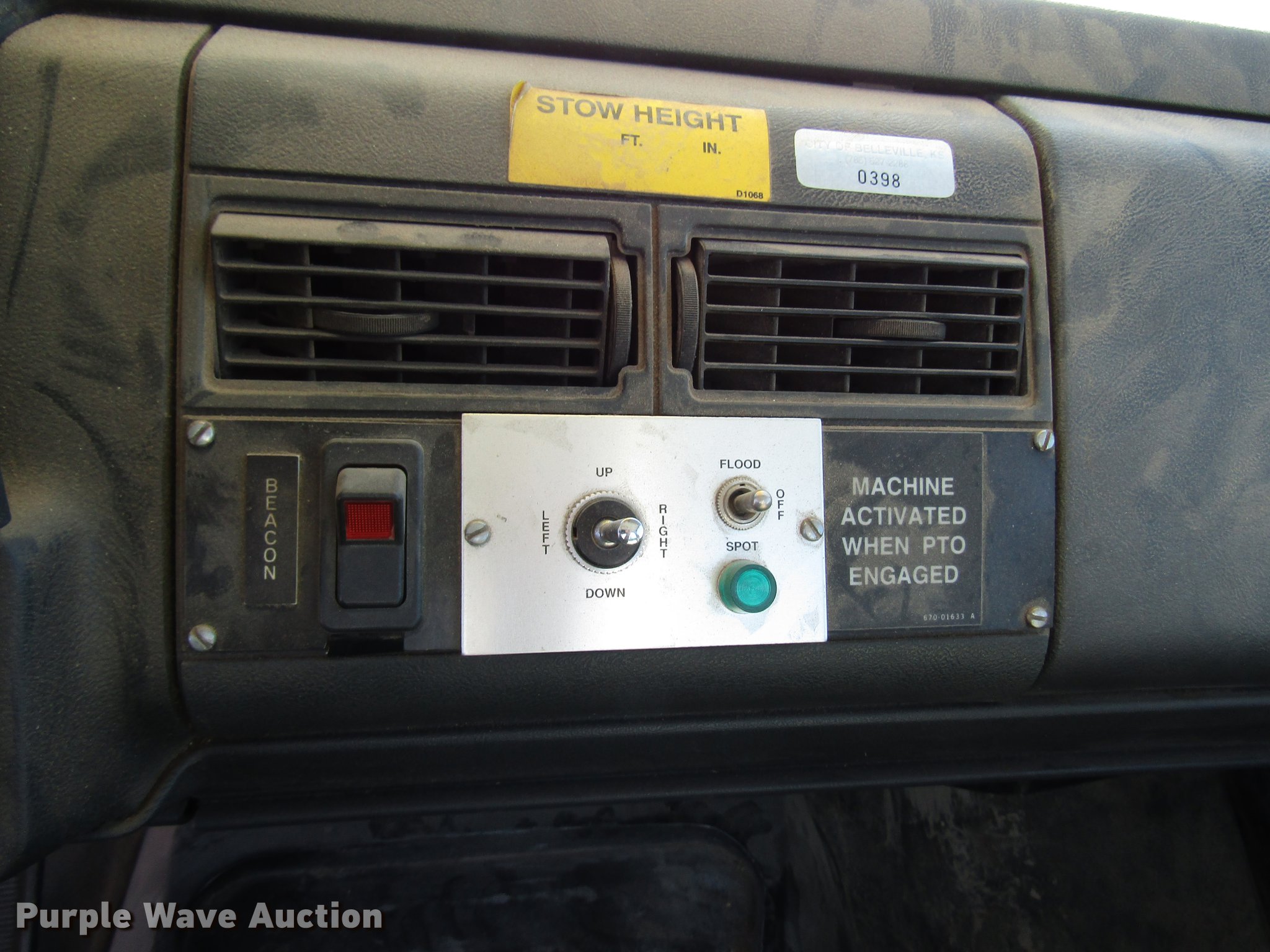 1997 Chevrolet C7500 bucket truck. 48,623 miles on odometer, 9,724 PTO hours on meter, Caterpillar 3116 6.6L L6 turbo diesel engine Serial 9GK57506, Five speed manual transmission, Single axle, AC and heat, AM/FM, Auxiliary controls, Beacon light, Block heater, Front tow hooks, Quick-connect power outlet, PTO, Altec service bed 15'L, Shelving, Slide-out drawers, Utility rack, Compartment lighs, Work lights, Brutus inverter, Serial 37-66021, 1997 Altec AM855 boom 55' boom length, 350 lbs max lift capacity, Man basket, 55' max lift height, Hydraulic quick coupler on basket, Ground and platform controls, Boom rotation, Articulating boom, (4) outriggers, Serial 0297BB0750, Dual fuel tanks, Pintle hitch, Trailer wiring, Spring suspension, Air brakes, 197" wheelbase, 11R22.5 tires, GVWR 33,000 lbs, Possible air leak. Kansas title. 1GBM7H1J9VJ111039. City of Belleville. Belleville, KS 66935