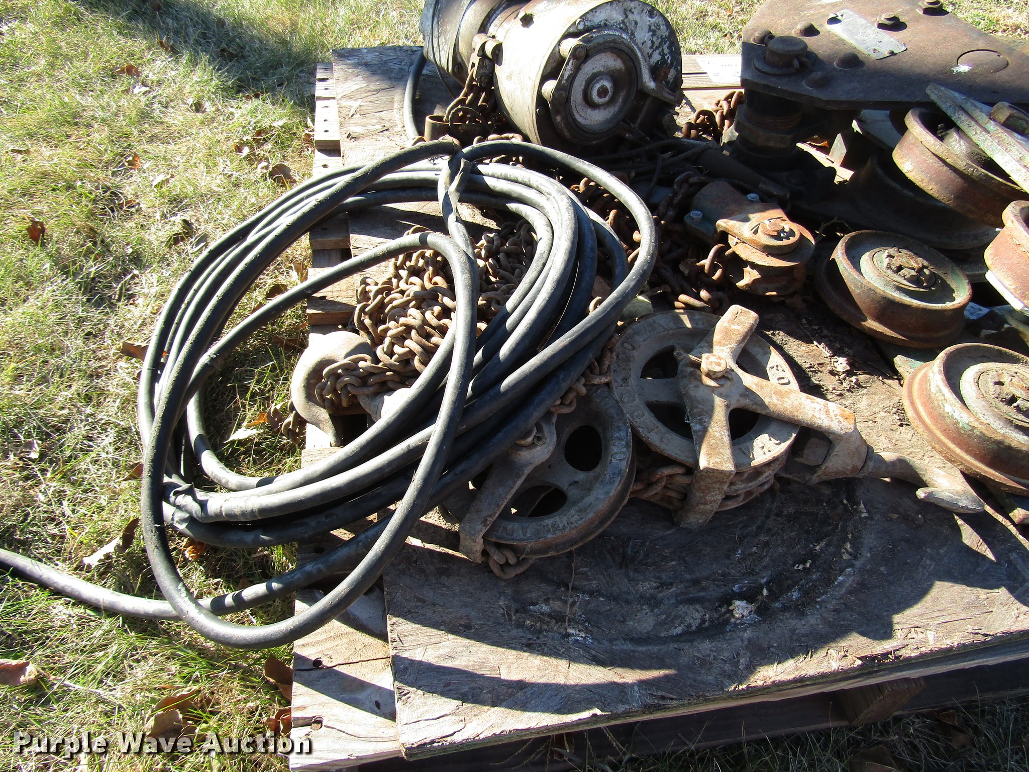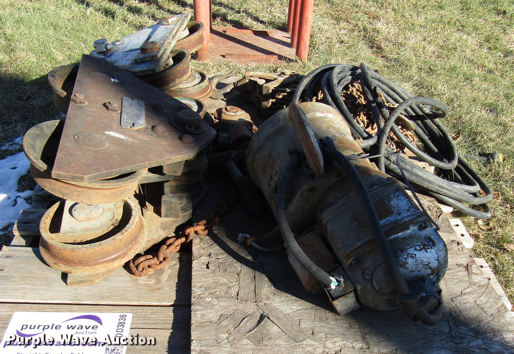 Purple Wave is selling a used Tools in Kansas. This item is a Tools with the following: Electric winch, 4,000 lbs capacity, 120V, (2) winch dollies, Manual chain winch, Tire rake