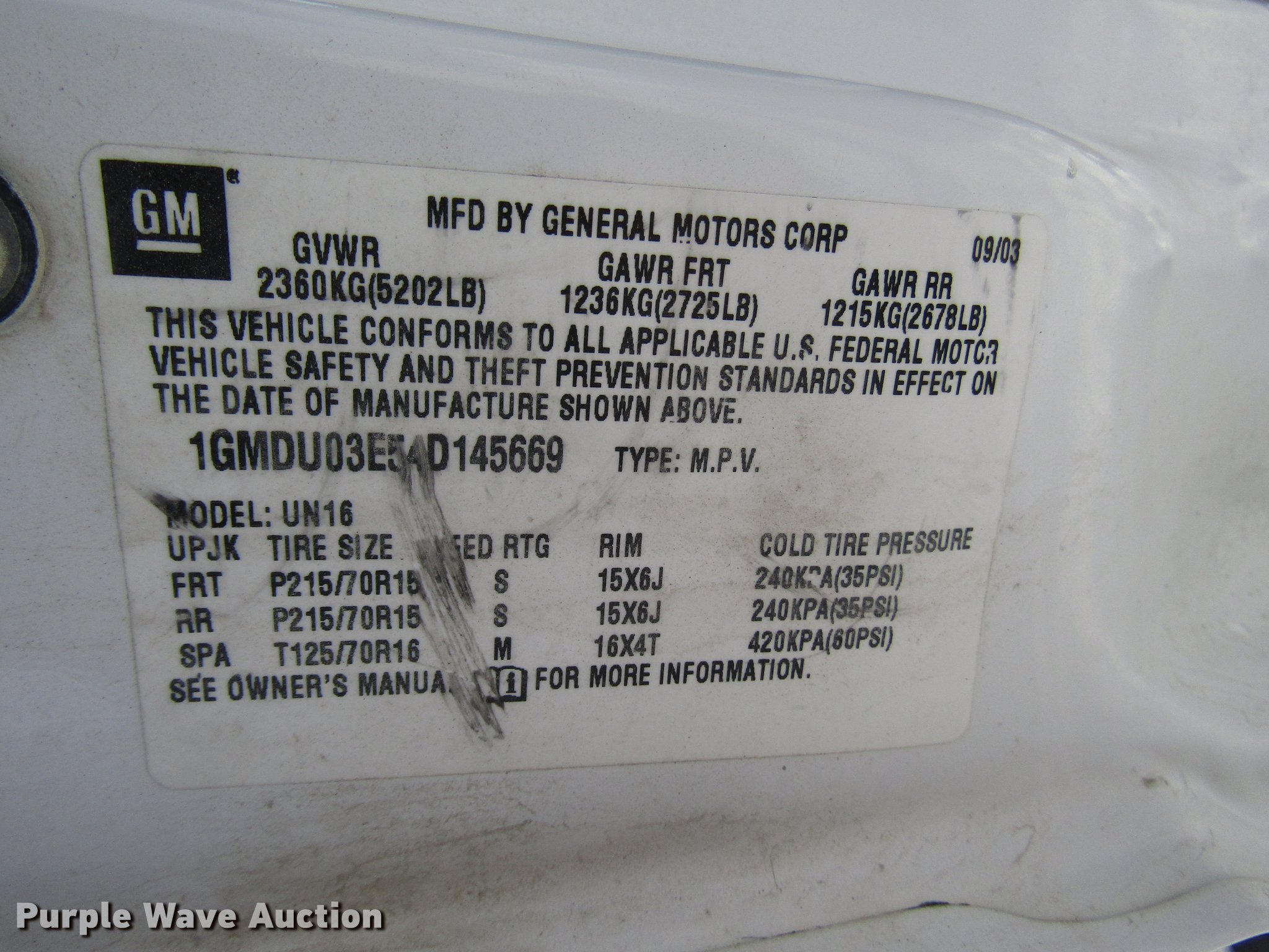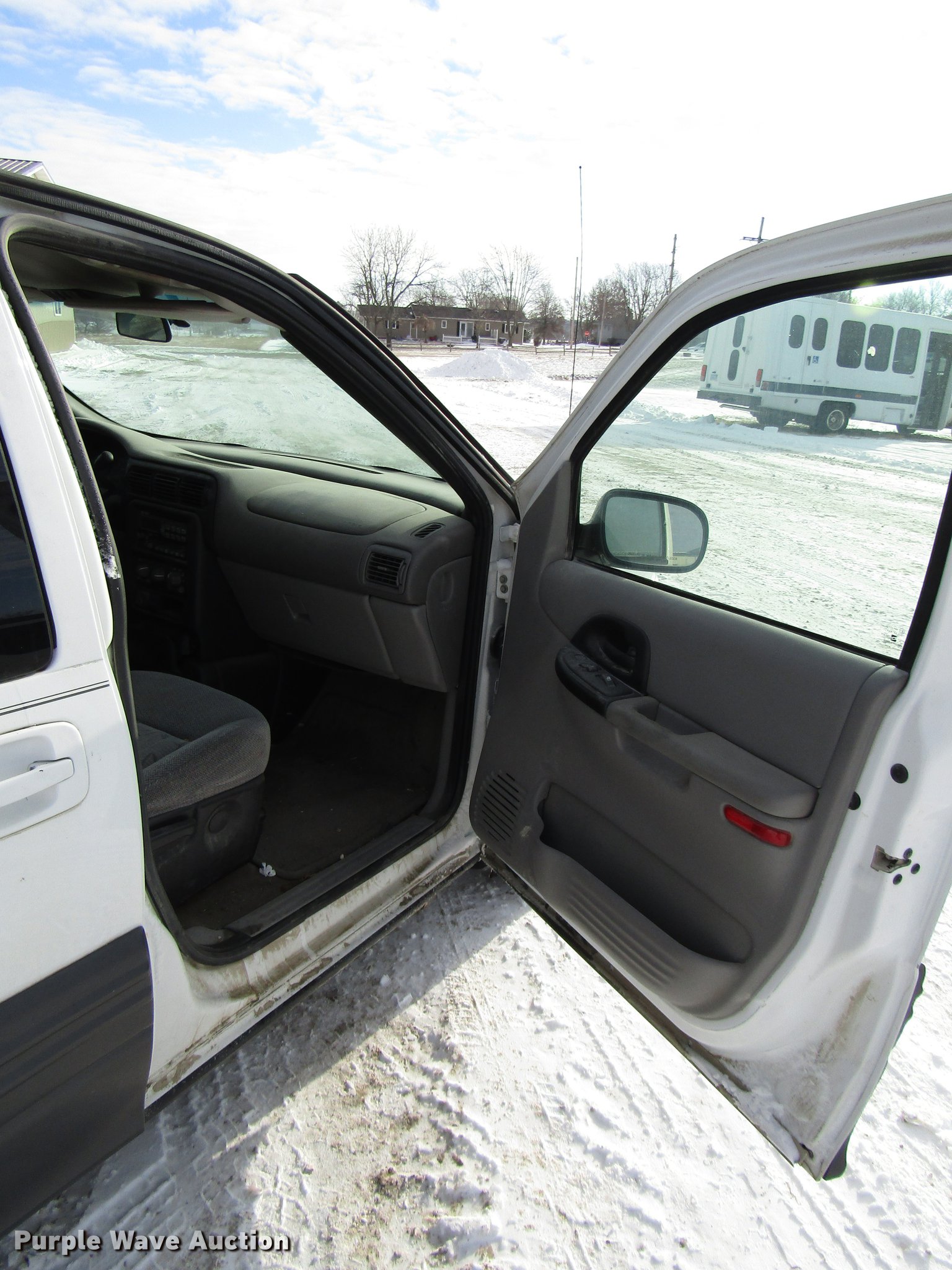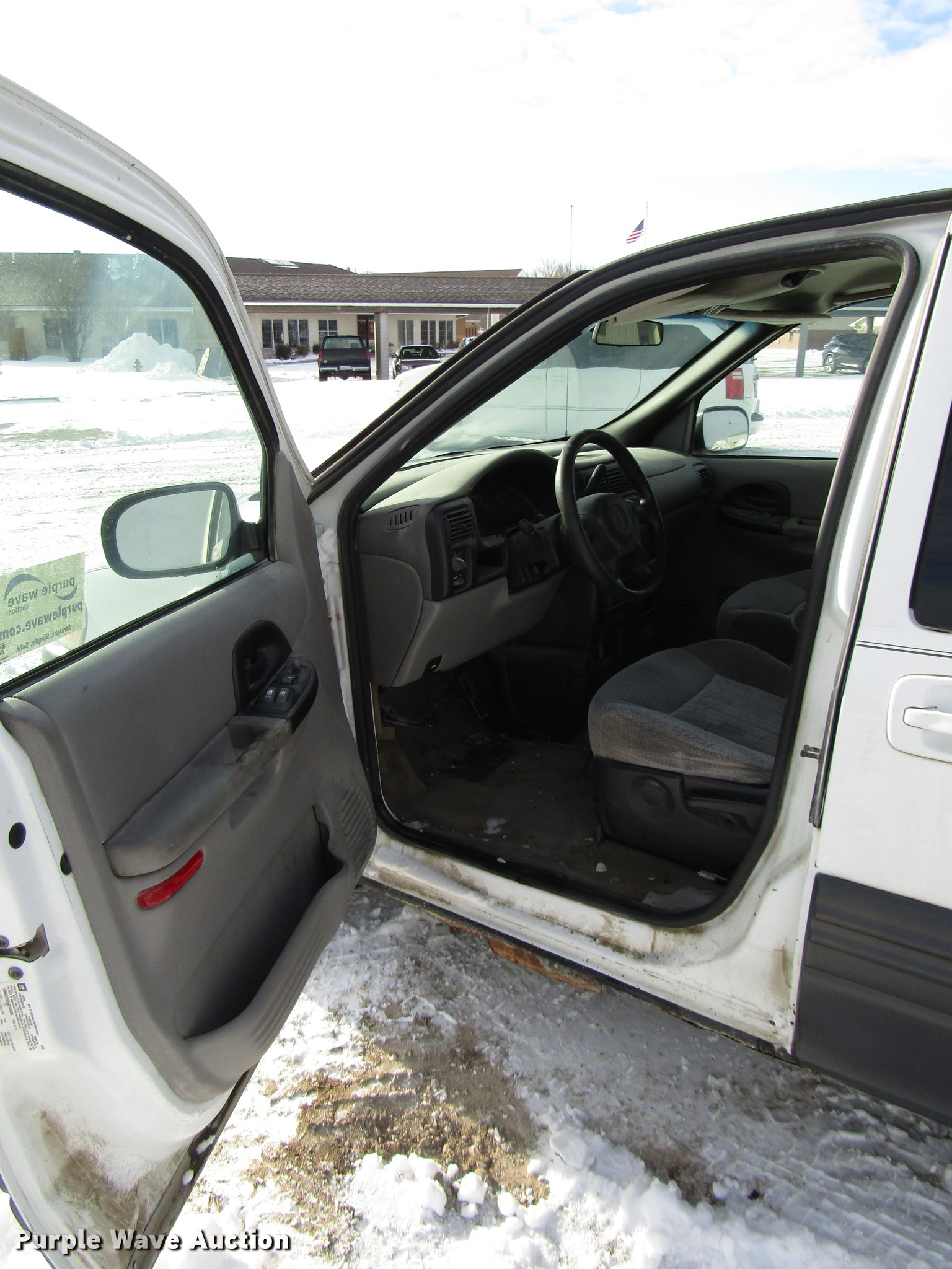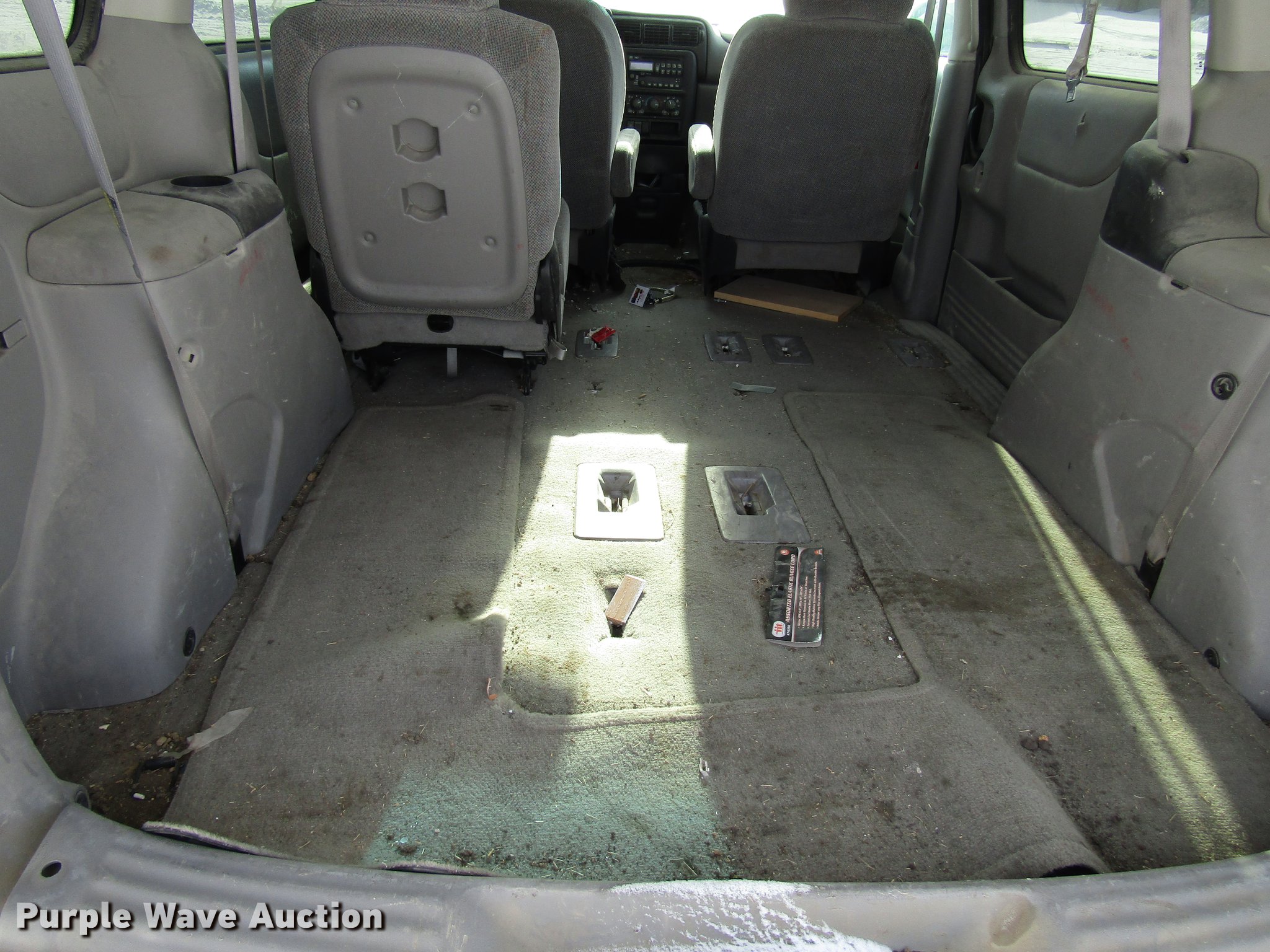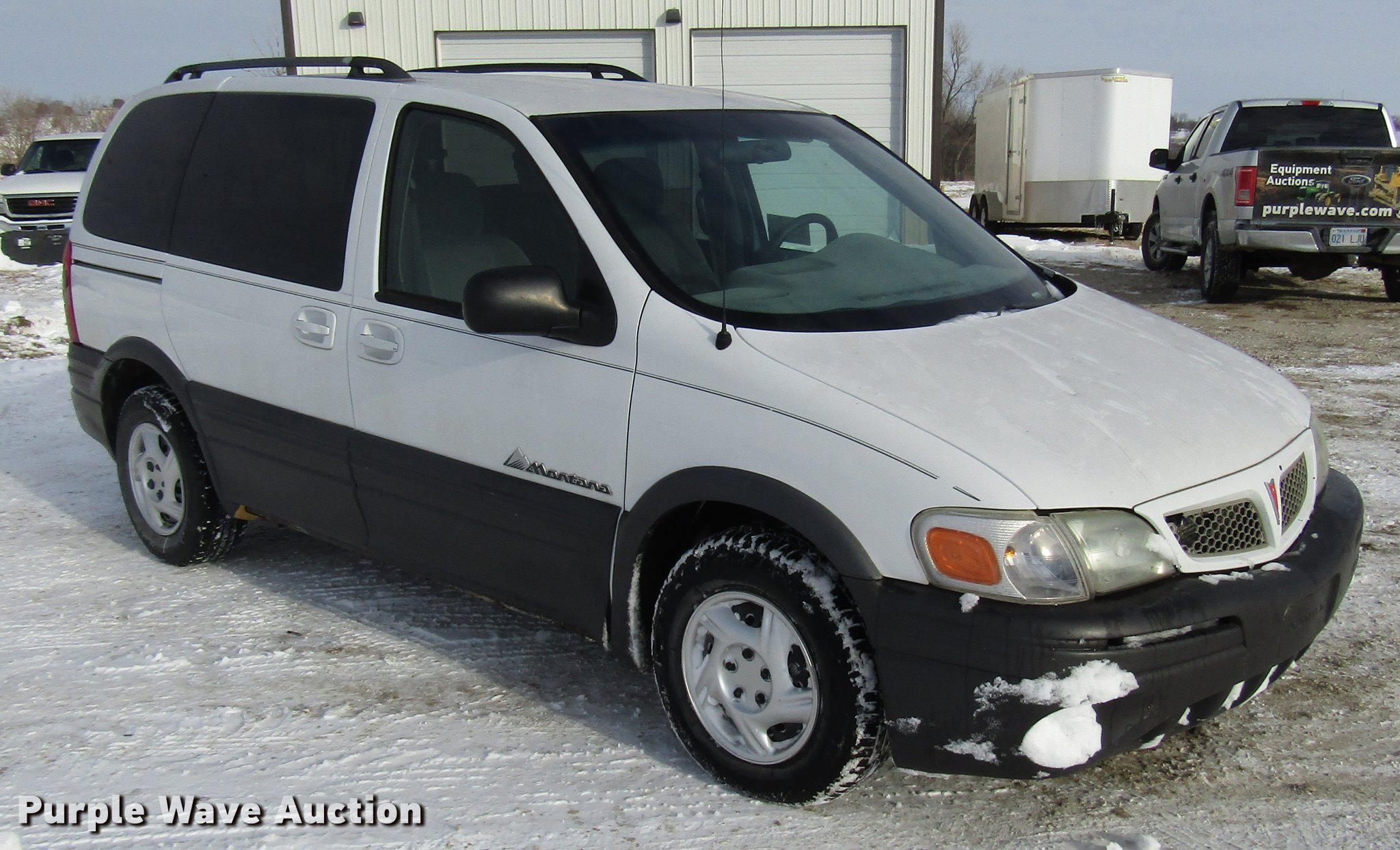 Purple Wave is selling a used Passenger Vehicle in Kansas. This item is a 2004 Pontiac Montana van with the following: 308,019 miles on odometer, 3.4L V6 OHV 12V gas engine, Automatic transmission, AC and heat, Tilt, Cruise, AM/FM/CD, Power windows, locks, and mirrors, Cloth interior, Fog lights, 215/70R15 tires