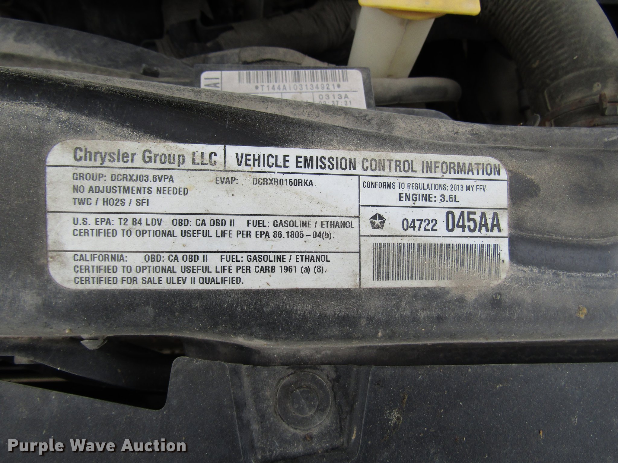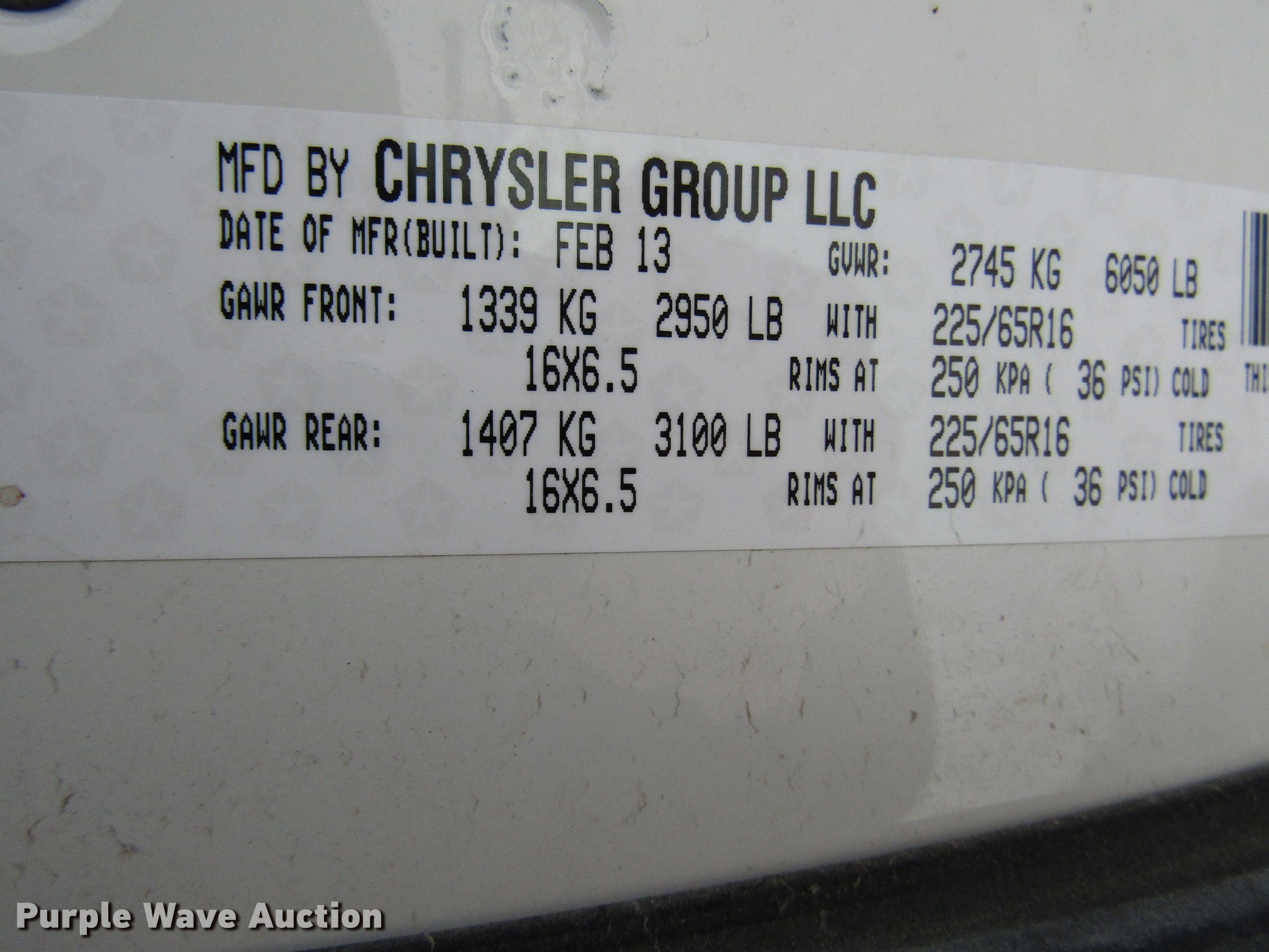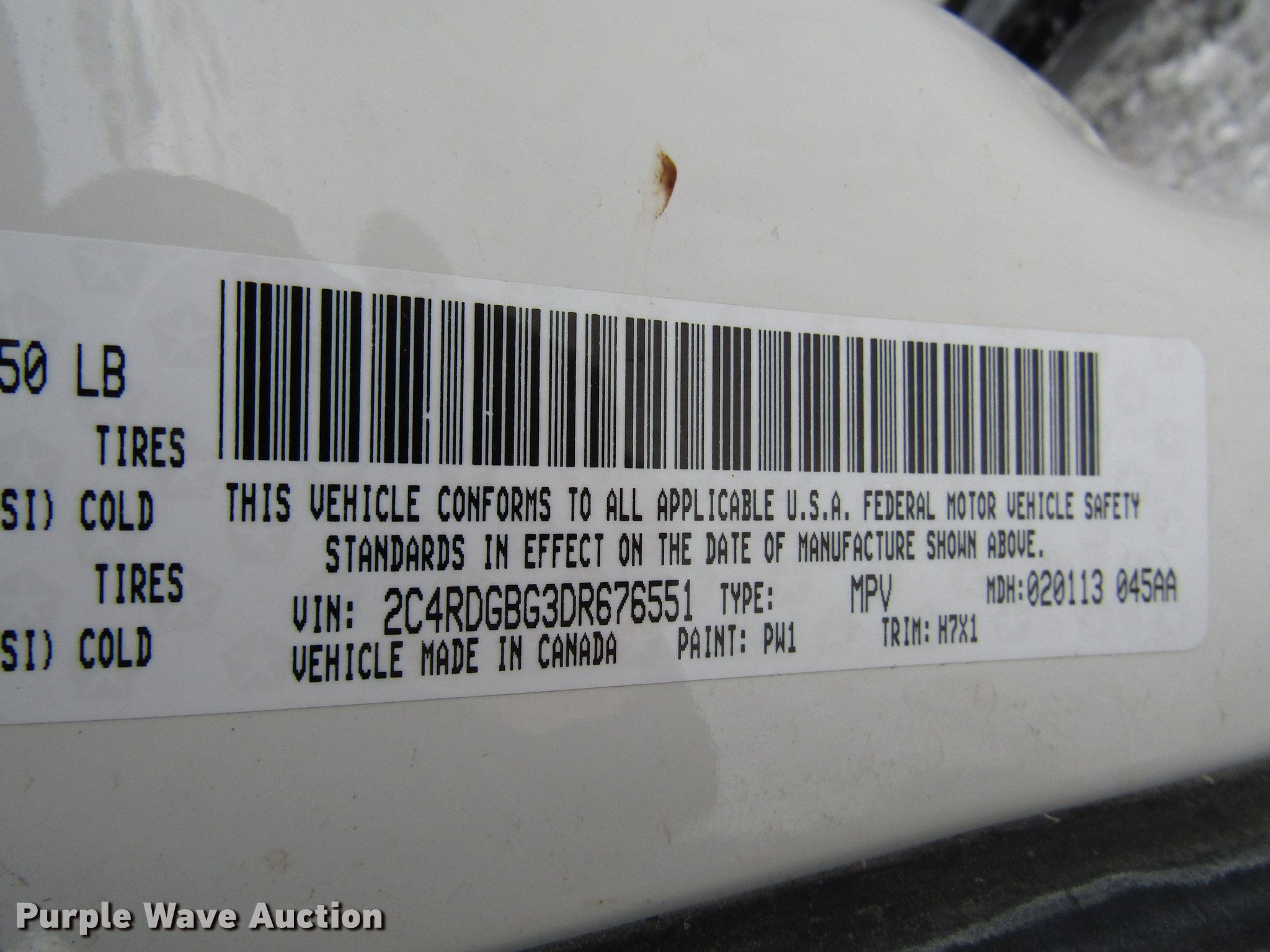 Purple Wave is selling a used Passenger Vehicle in Kansas. This item is a 2013 Dodge Grand Caravan van with the following: 308,090 miles on odometer, 3.6L V6 DOHC 24V gas engine, Automatic transmission, AC and heat, Tilt, Cruise, AM/FM/CD, Power windows, locks, and mirrors, Cloth interior, 225/65R16 tires
