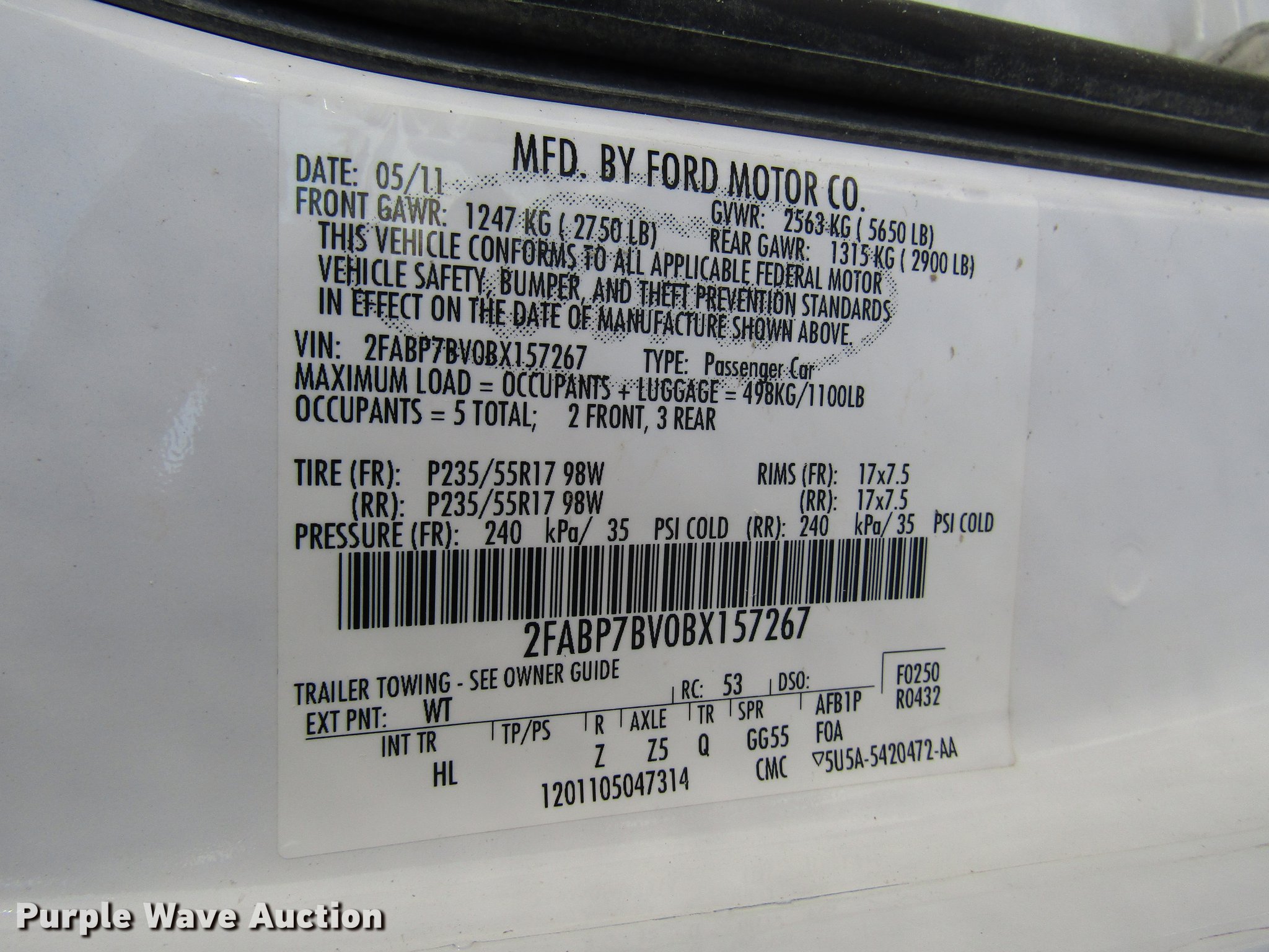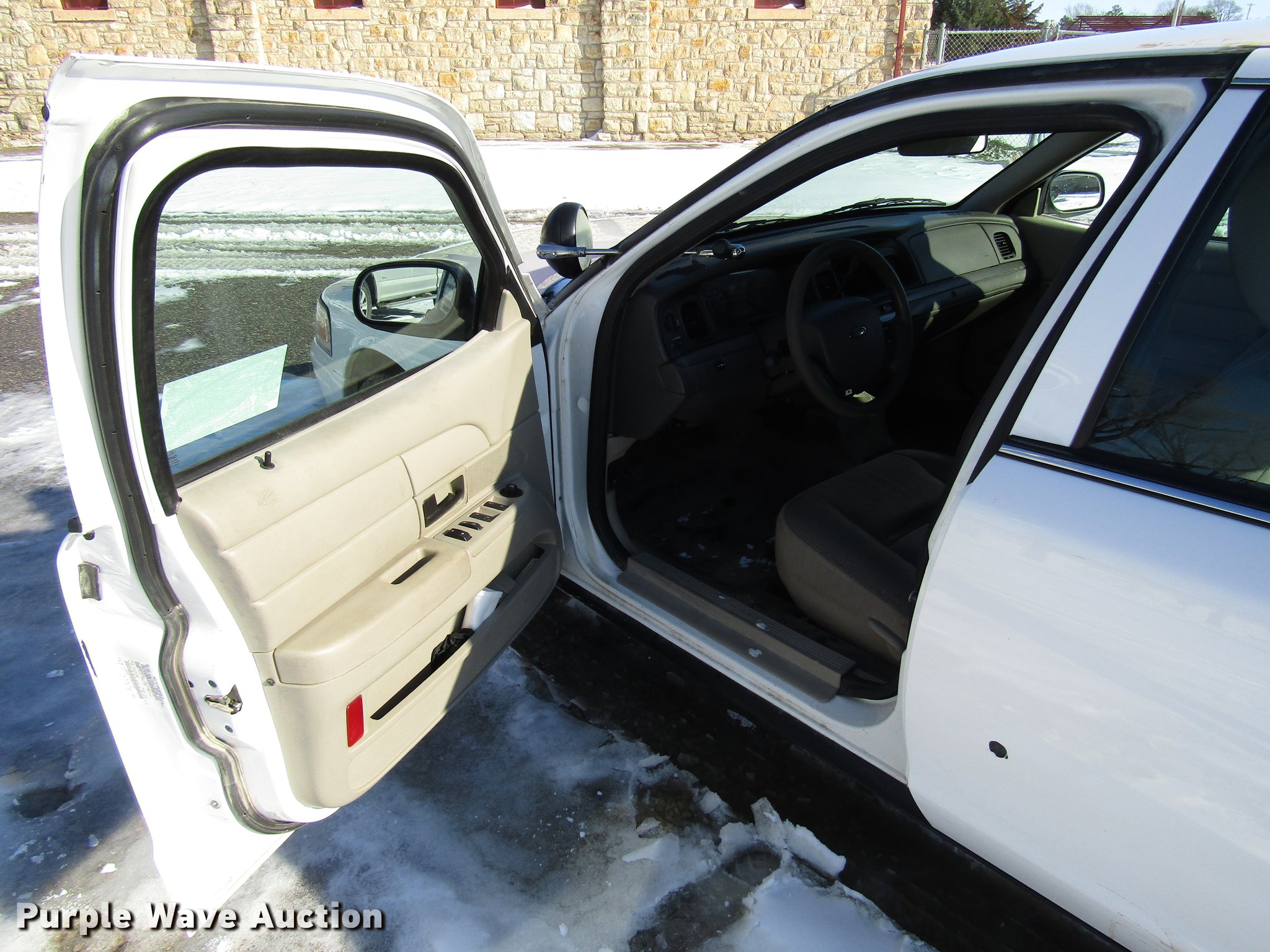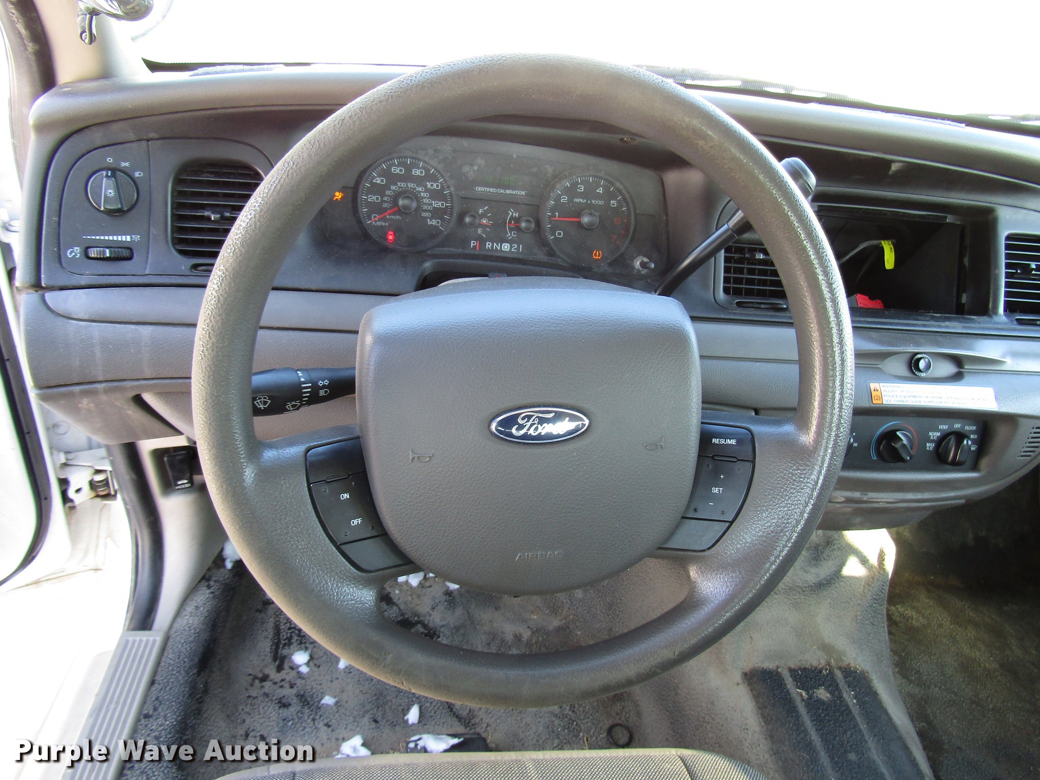 Purple Wave is selling a used Passenger Vehicle in Kansas. This item is a 2011 Ford Crown Victoria Police Interceptor with the following: 101,160 miles on odometer, 4.6L V8 SOHC 16V FFV gas engine, Automatic transmission, AC and heat, Tilt, Power windows, locks, and mirrors, Cloth interior, 235/55R17 tires, Airbag light on, Police equipment not included