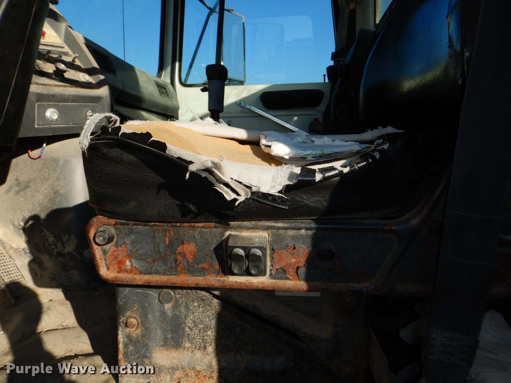 Purple Wave is selling a used Rollback or Tow Truck in Kansas. This item is a 1997 Ford LT9000 rollback truck with the following: 318,914 miles on odometer, Cummins L10 10.0L L6 turbo diesel engine, Eaton Fuller Road Ranger eight speed manual transmission, Two speed rear end, Tandem axle, Heat, AM/FM, Air suspension seat, Vinyl interior, Chelsea PTO, Toolbox, 1996 Galbreath U5-OR-174 rollback bed, 280"L, 50,000 lbs capacity, Wrecker boom, Winch, Hydraulic fold, Hand controls, Serial H11258, Dual fuel tanks, Spring over walking beam suspension, Air brakes, 260" wheelbase, Goodyear 11R22.5 tires, GVWR 62,000 lbs, FAWR 18,000 lbs, RAWR 44,000 lbs, Cracked windshield, King pins need to be replaced, Toolbox door missing, Injectors need to be replaced, Top end of engine needs to be cleaned