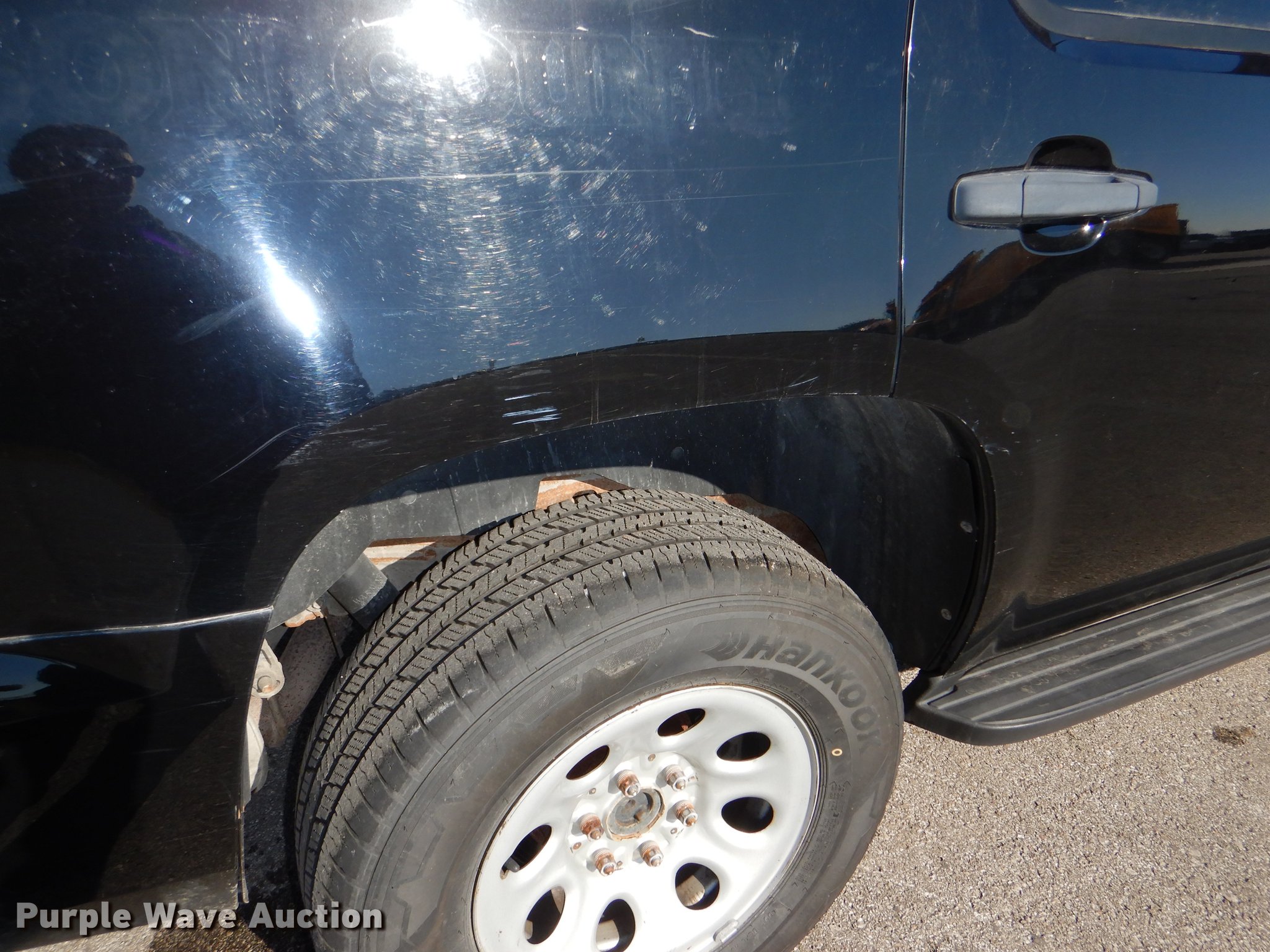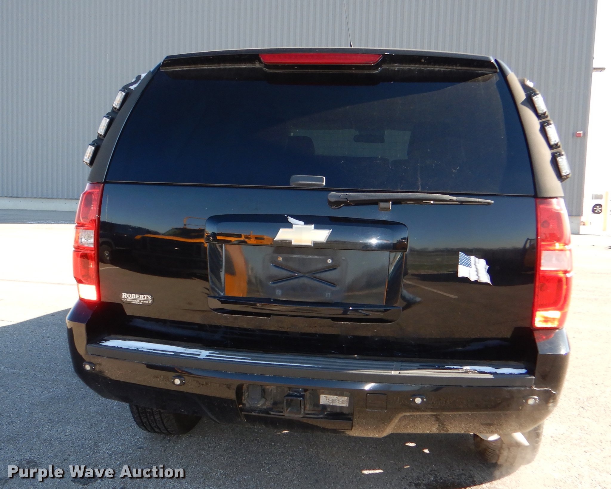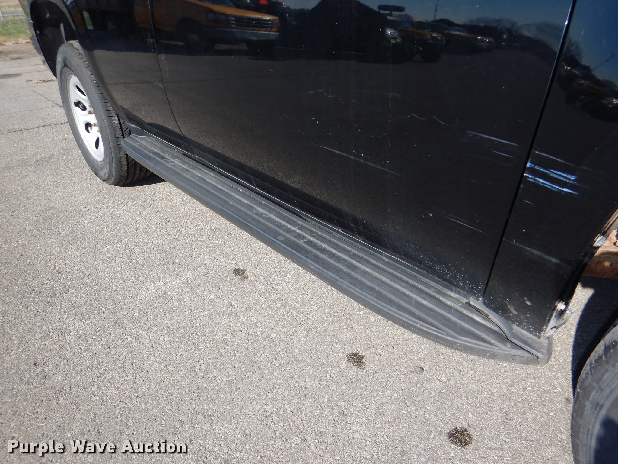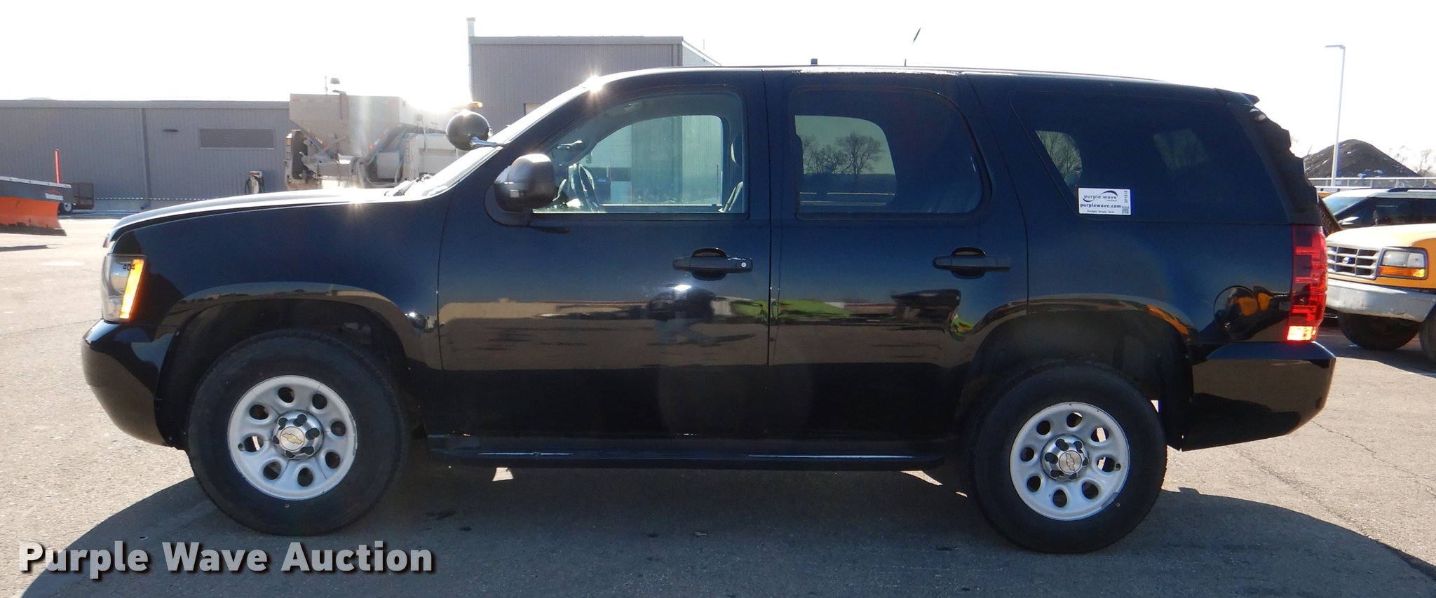Purple Wave is selling a used Passenger Vehicle in Kansas. This item is a 2011 Chevrolet Tahoe Police SUV with the following: 152,682 miles on odometer, 5.3L V8 OHV 16V FFV gas engine, Automatic transmission, AC and heat, Tilt, Cruise, AM/FM/CD, Power windows, locks, mirrors, and seat, Cloth interior, Spotlight, Running boards, Receiver hitch, 265/70R17 tires