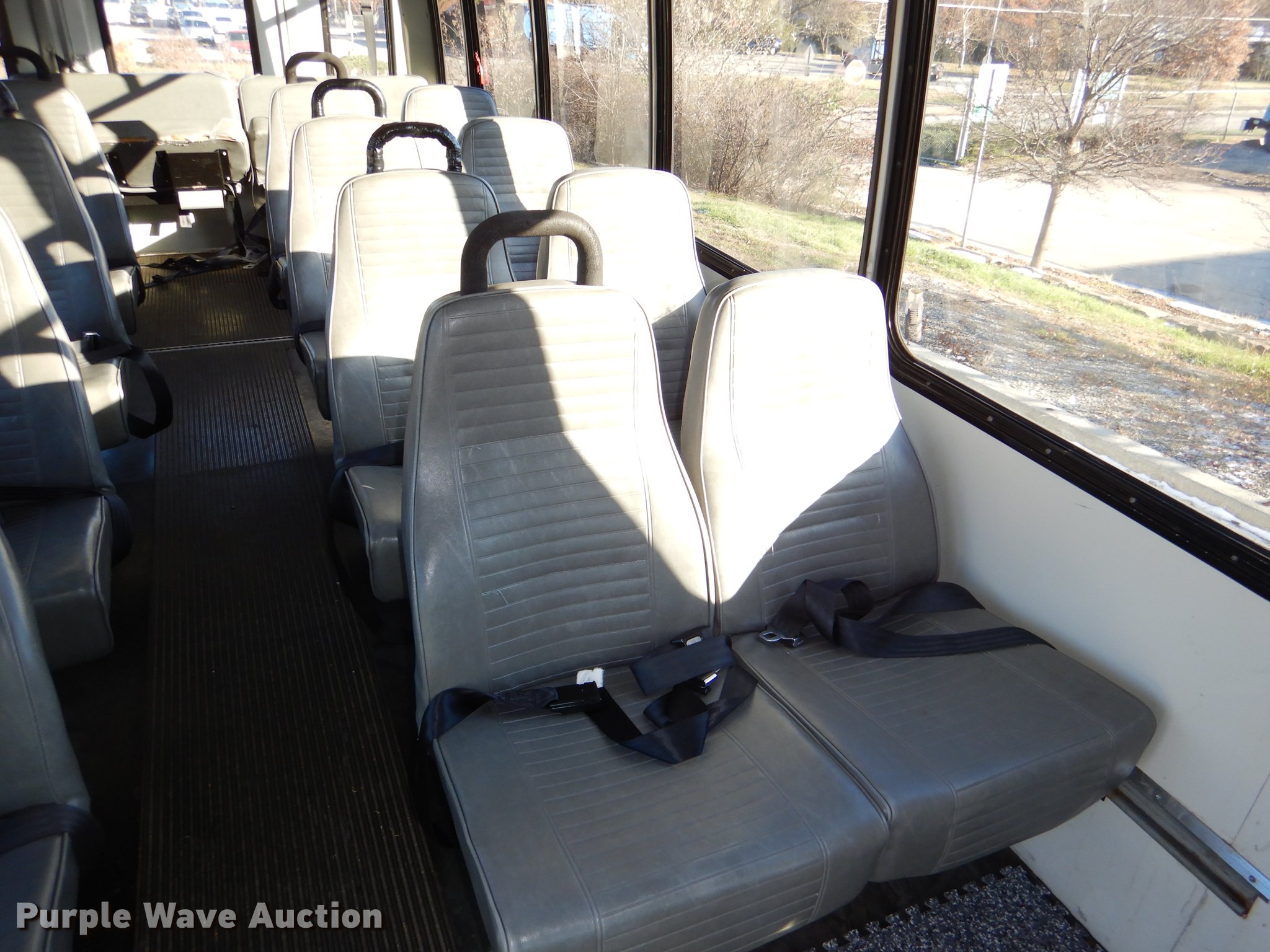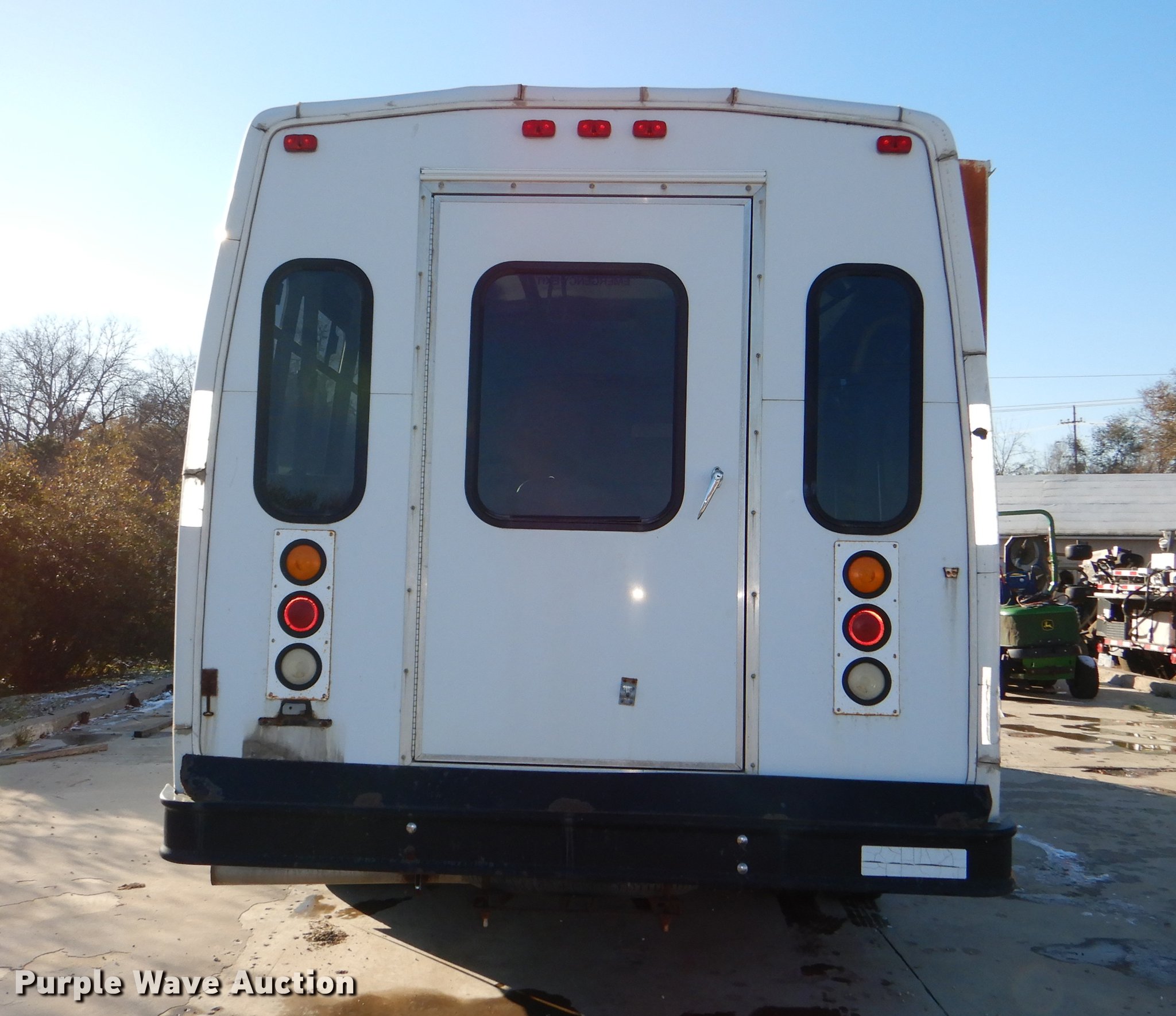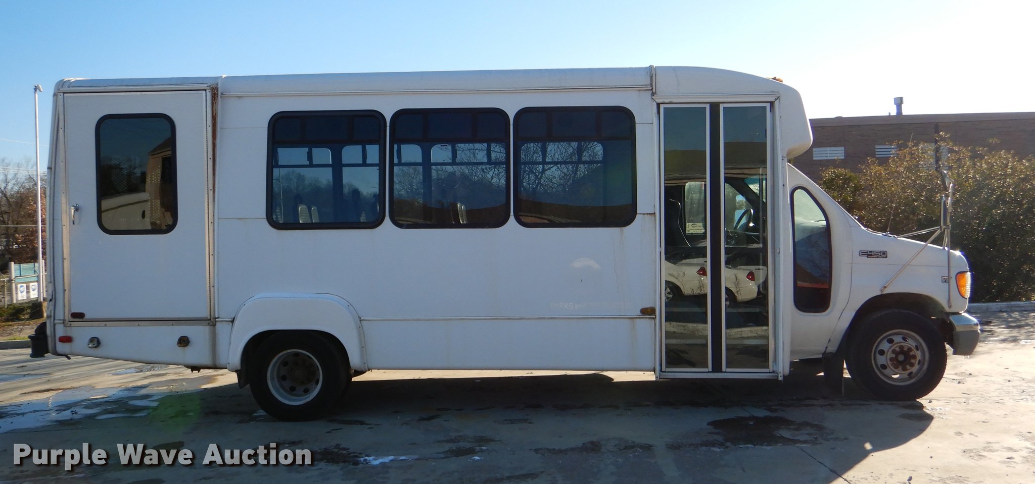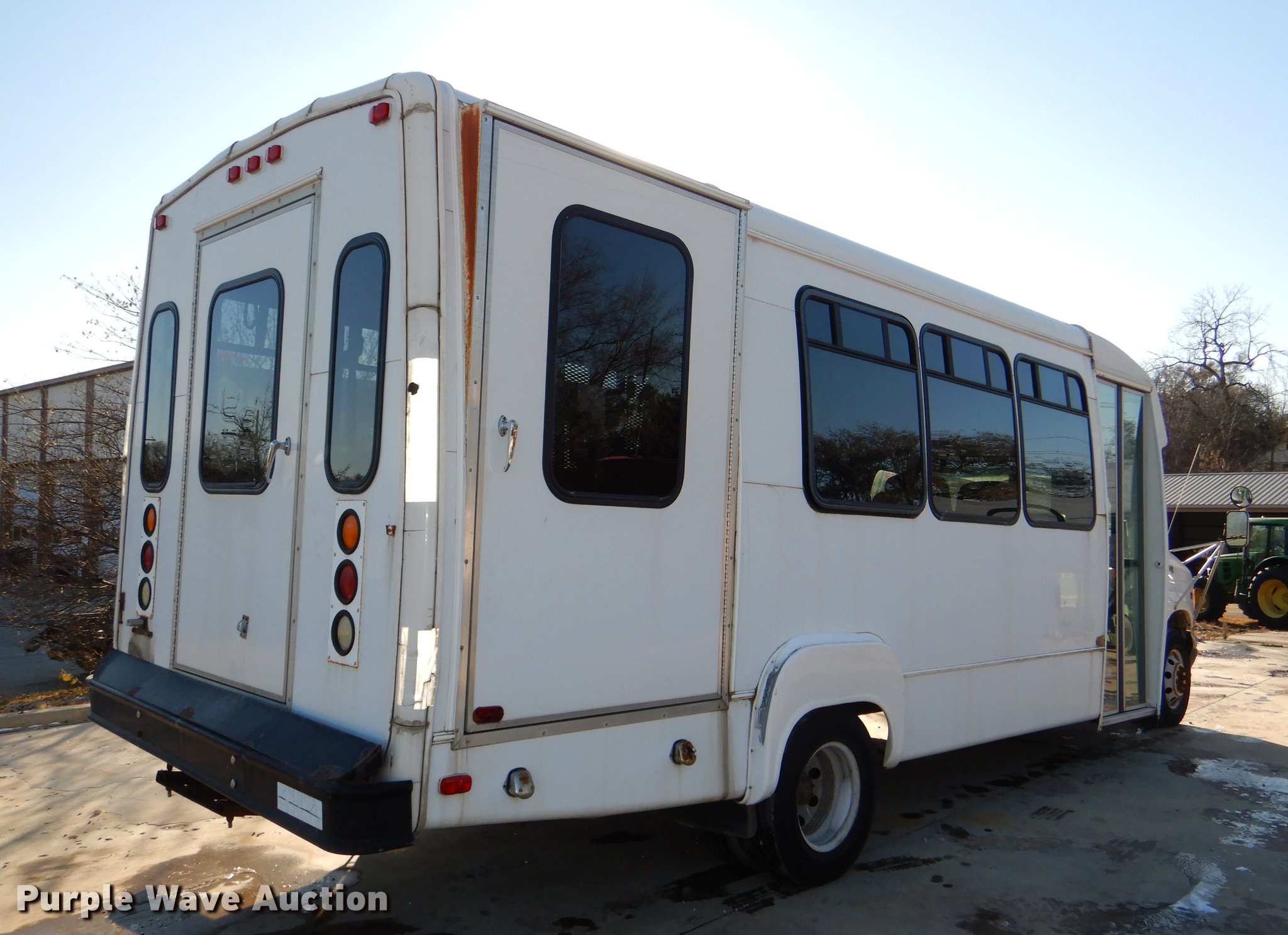 Purple Wave is selling a used Bus in Kansas. This item is a 2001 Ford Econoline E450 Super Duty shuttle bus with the following: 45,988 miles on odometer, 7.3L V8 OHV 16V turbo diesel engine, Automatic transmission, Single axle, AC and heat, Rear AC, AM/FM, 20 passenger capacity, Seat belts, Ricon wheelchair lift, Rear and side emergency exits, (2) ceiling monitors, Spring suspension, Hydraulic brakes, 225/75R16 tires, GVWR 14,050 lbs, ABS light on, Unit# 582