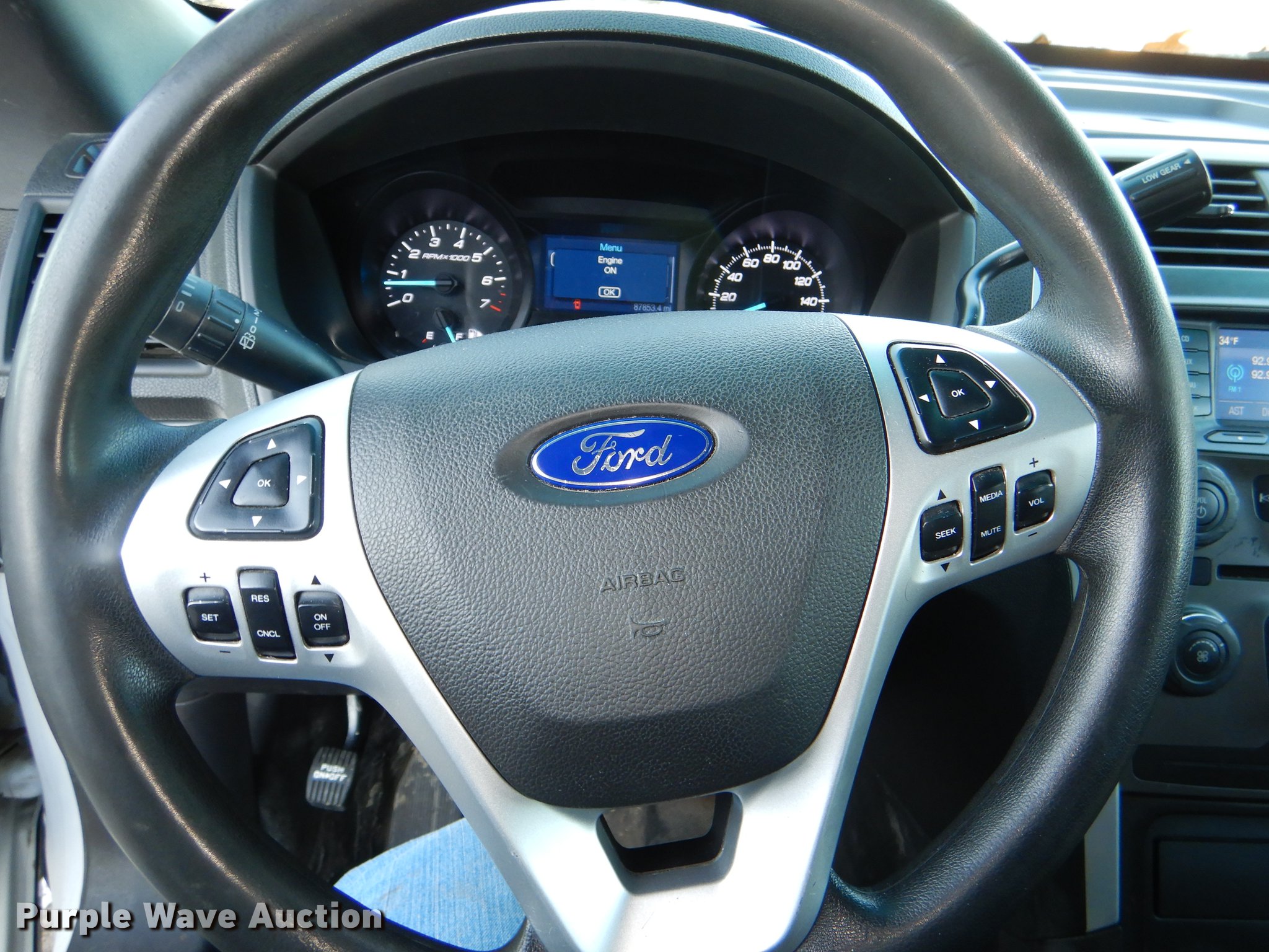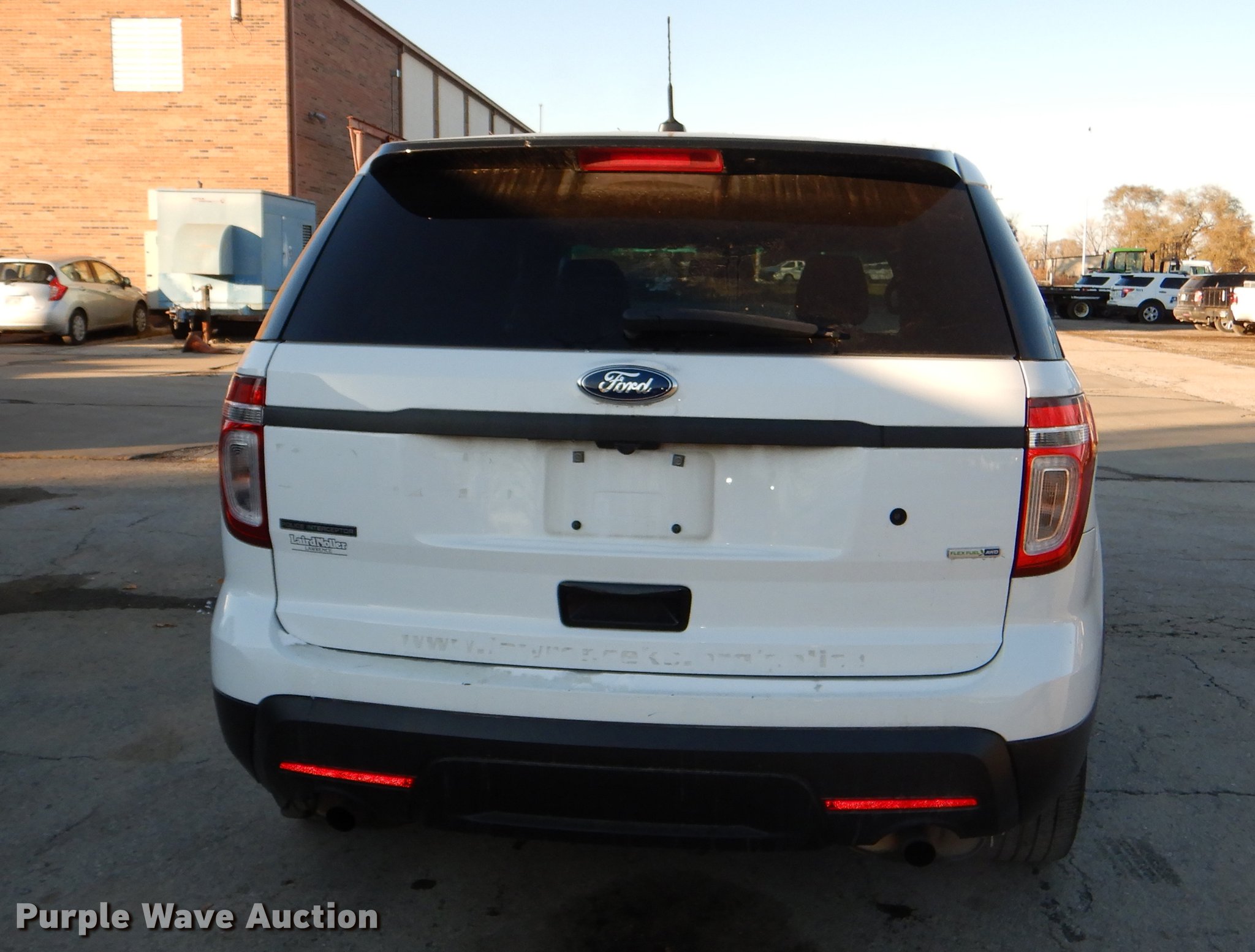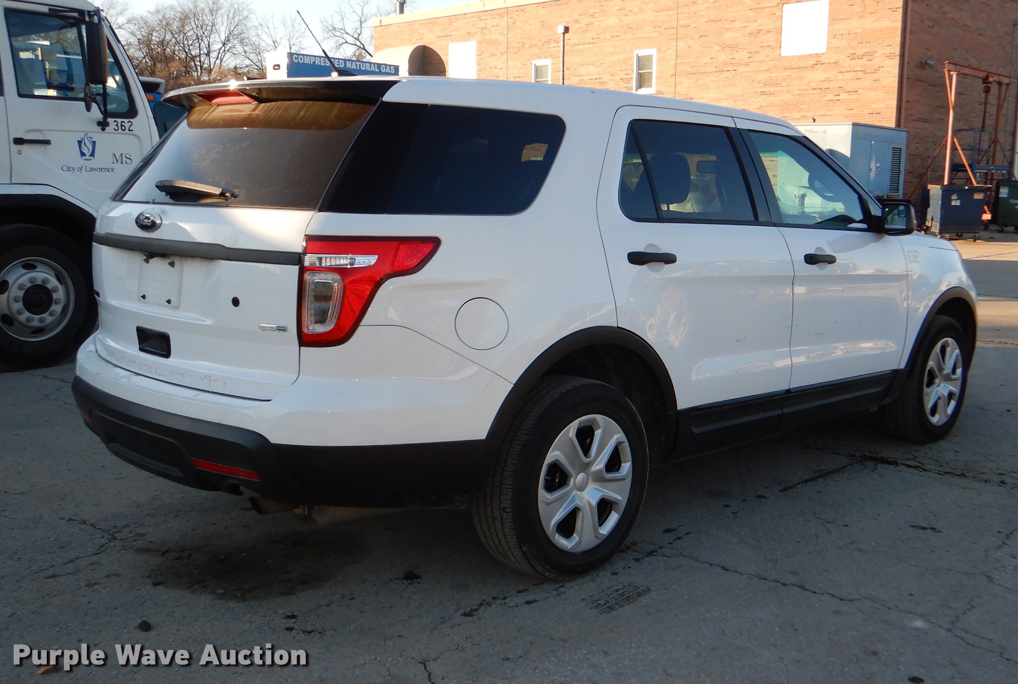 Purple Wave is selling a used Passenger Vehicle in Kansas. This item is a 2015 Ford Explorer Police Interceptor SUV with the following: 87,853 miles on odometer, 3.7L V6 DOHC 24V gas engine, Automatic transmission, AC and heat, Tilt, Cruise, AM/FM/CD, Power windows, locks, mirrors, and seat, Cloth interior, Spotlight, 245/55R18 tires, Unattached rear seats included, No console, Antenna plugs in roof, Interior equipment mounting holes, Unit# 165