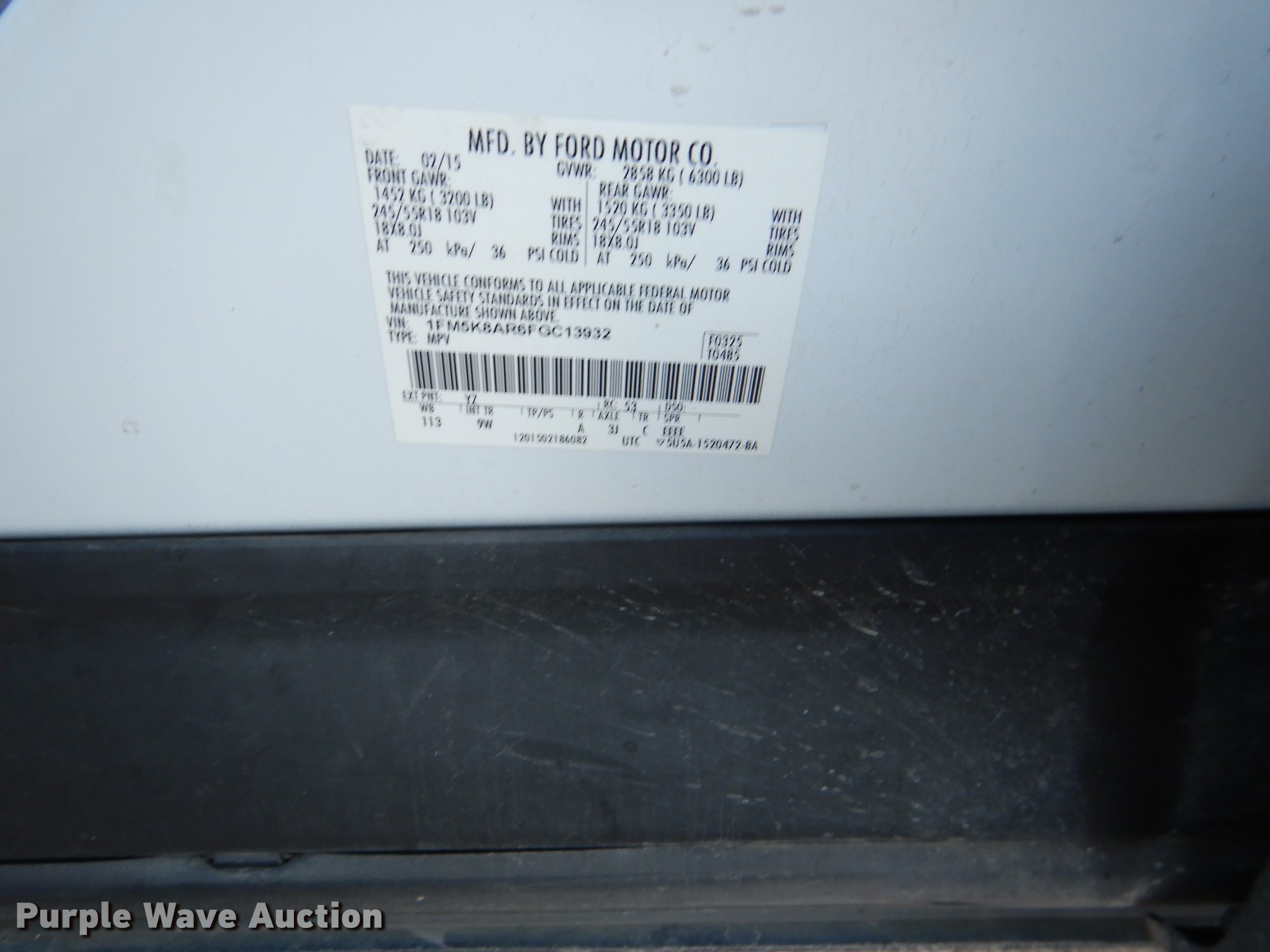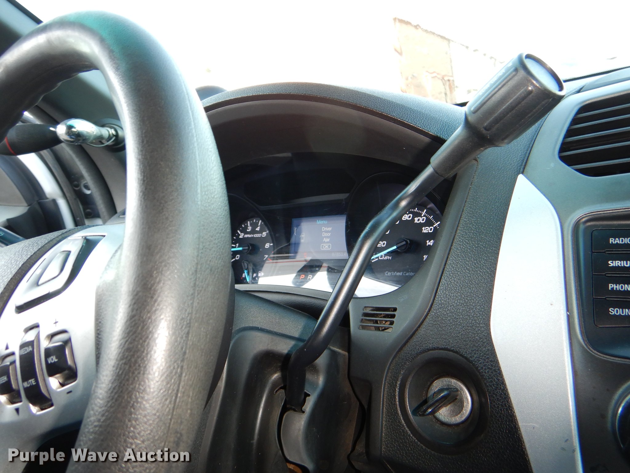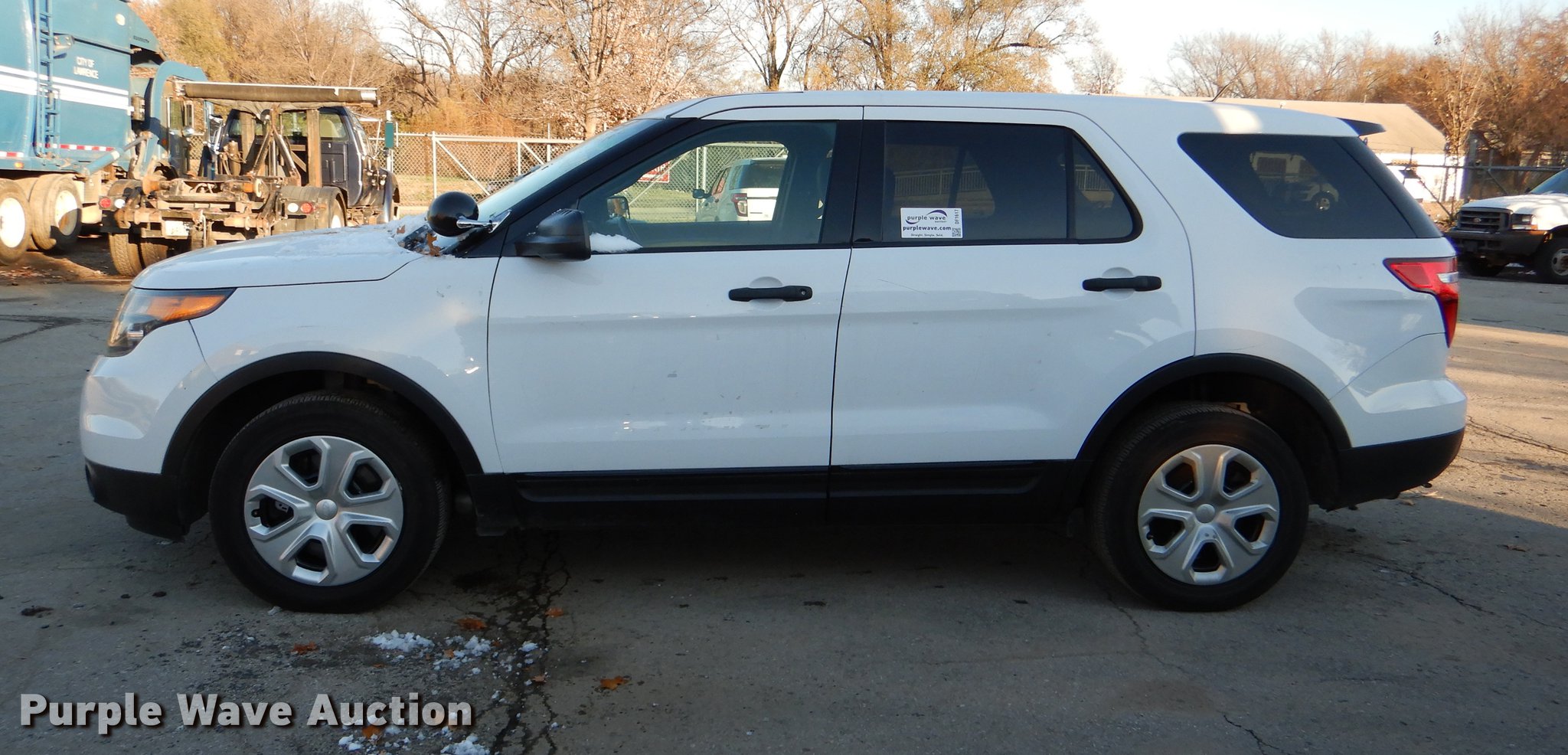Purple Wave is selling a used Passenger Vehicle in Kansas. This item is a 2015 Ford Explorer Police Interceptor SUV with the following: 87,853 miles on odometer, 3.7L V6 DOHC 24V gas engine, Automatic transmission, AC and heat, Tilt, Cruise, AM/FM/CD, Power windows, locks, mirrors, and seat, Cloth interior, Spotlight, 245/55R18 tires, Unattached rear seats included, No console, Antenna plugs in roof, Interior equipment mounting holes, Unit# 165