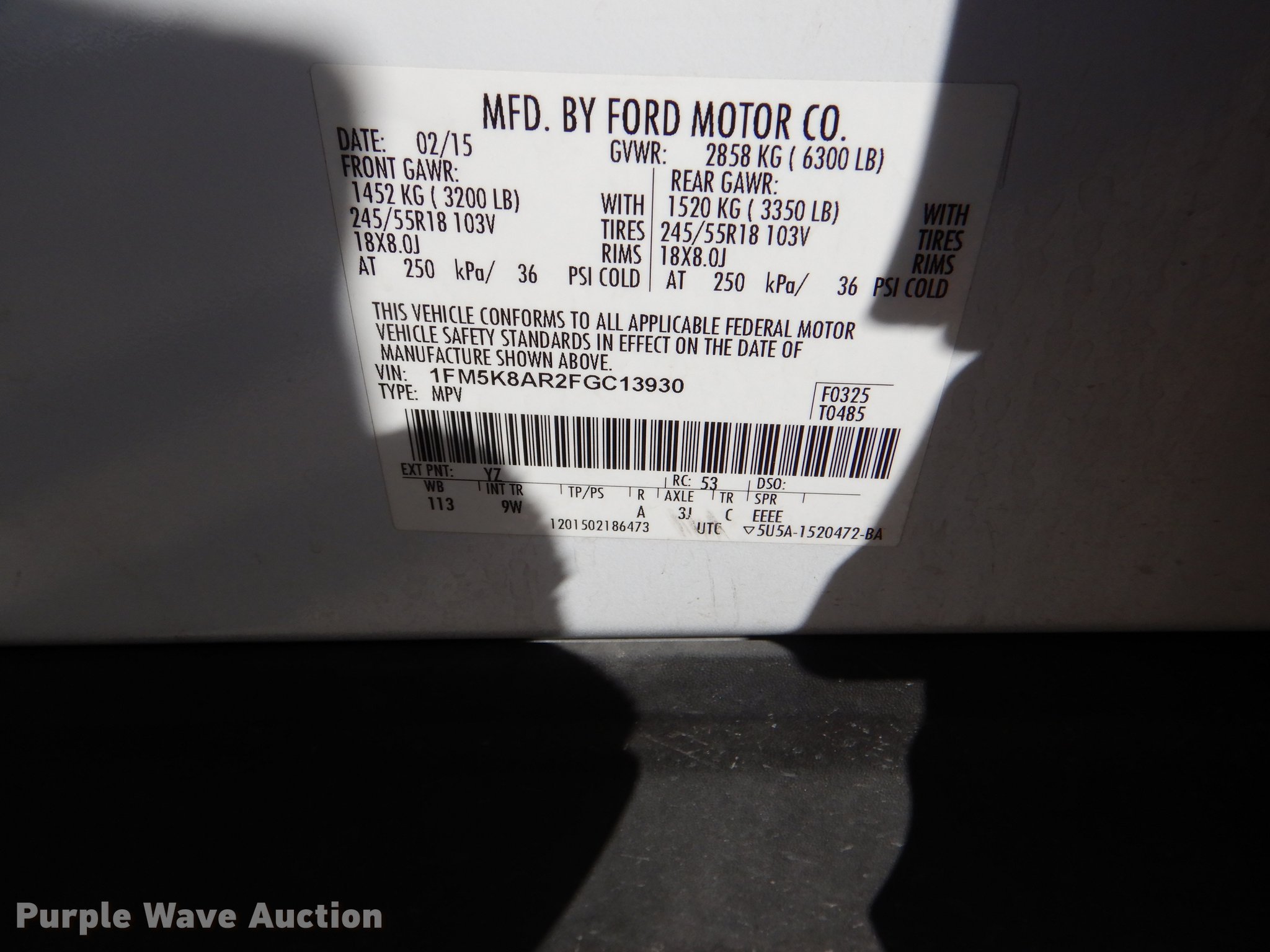 Purple Wave is selling a used Passenger Vehicle in Kansas. This item is a 2015 Ford Explorer Police Interceptor SUV with the following: 86,100 miles on odometer, 3.7L V6 DOHC 24V gas engine, Automatic transmission, AC and heat, Tilt, Cruise, AM/FM/CD, Power windows, locks, mirrors, and seat, Cloth interior, Spotlight, 245/55R18 tires, Antenna plugs in roof, Interior equipment mounting holes, Unit# 163