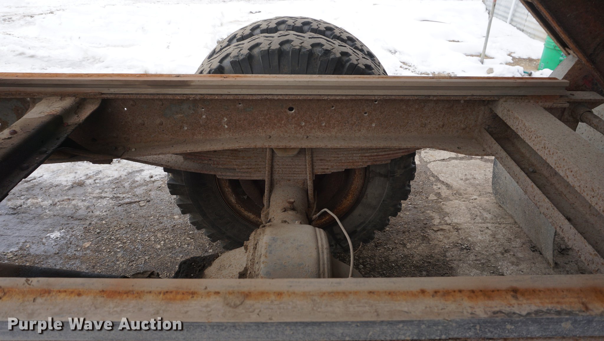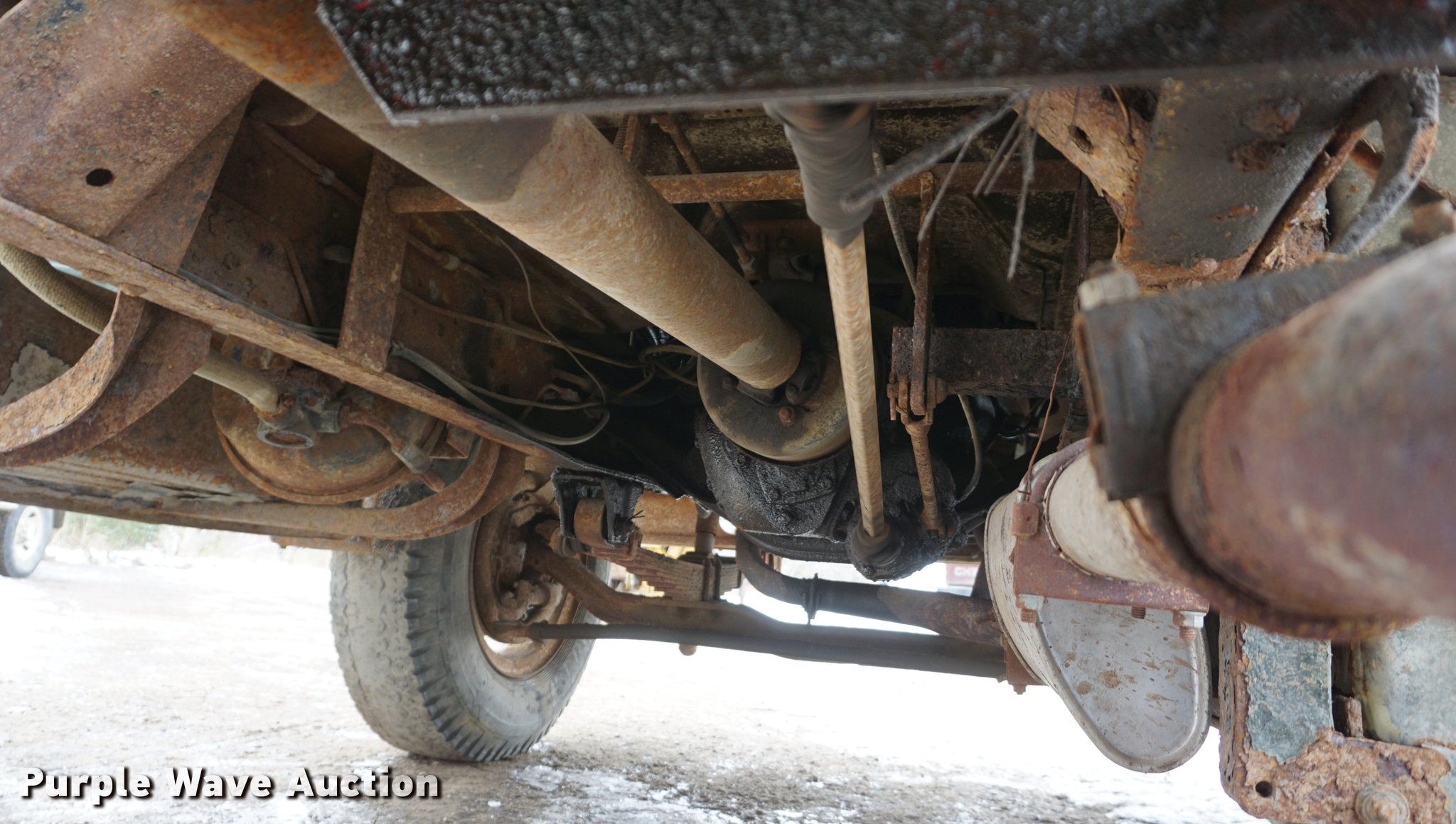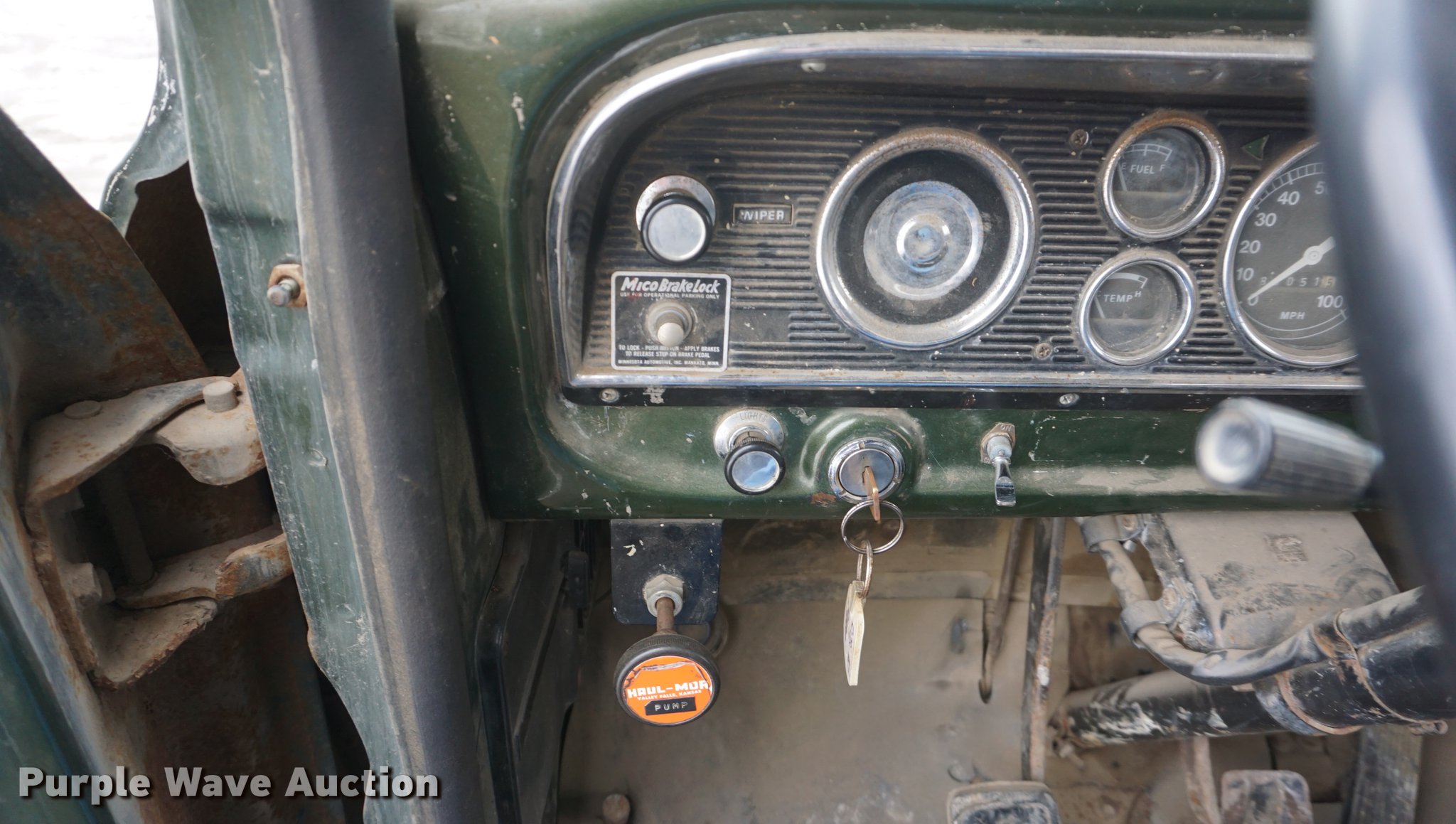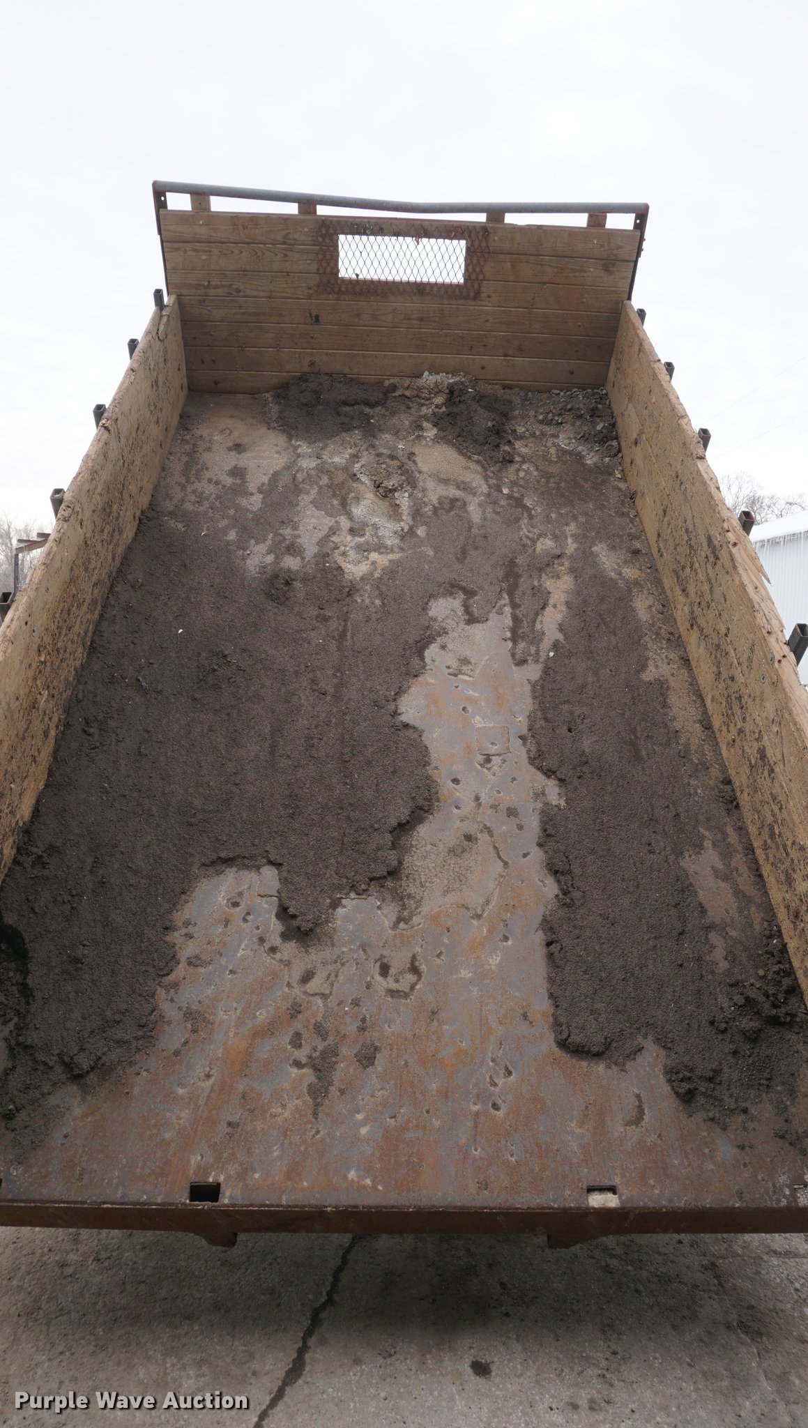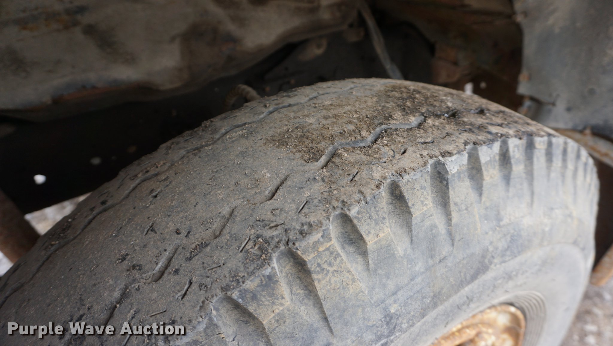 Purple Wave is selling a used Construction Dump Truck in Kansas. This item is a 1976 Ford F600 dump truck with the following: 83,051 miles on odometer, Ford 358 C.I.D. V8 gas engine, Five speed manual transmission, Two speed rear end, Single axle, Heat, AM/FM, PTO, 13.5'L x 93"W steel dump bed, 22" side board height, Single ram hoist, Single fuel tank, Pin hitch, Spring suspension, Hydraulic brakes, 9.00-20 tires, Brake issues, King pins worn
