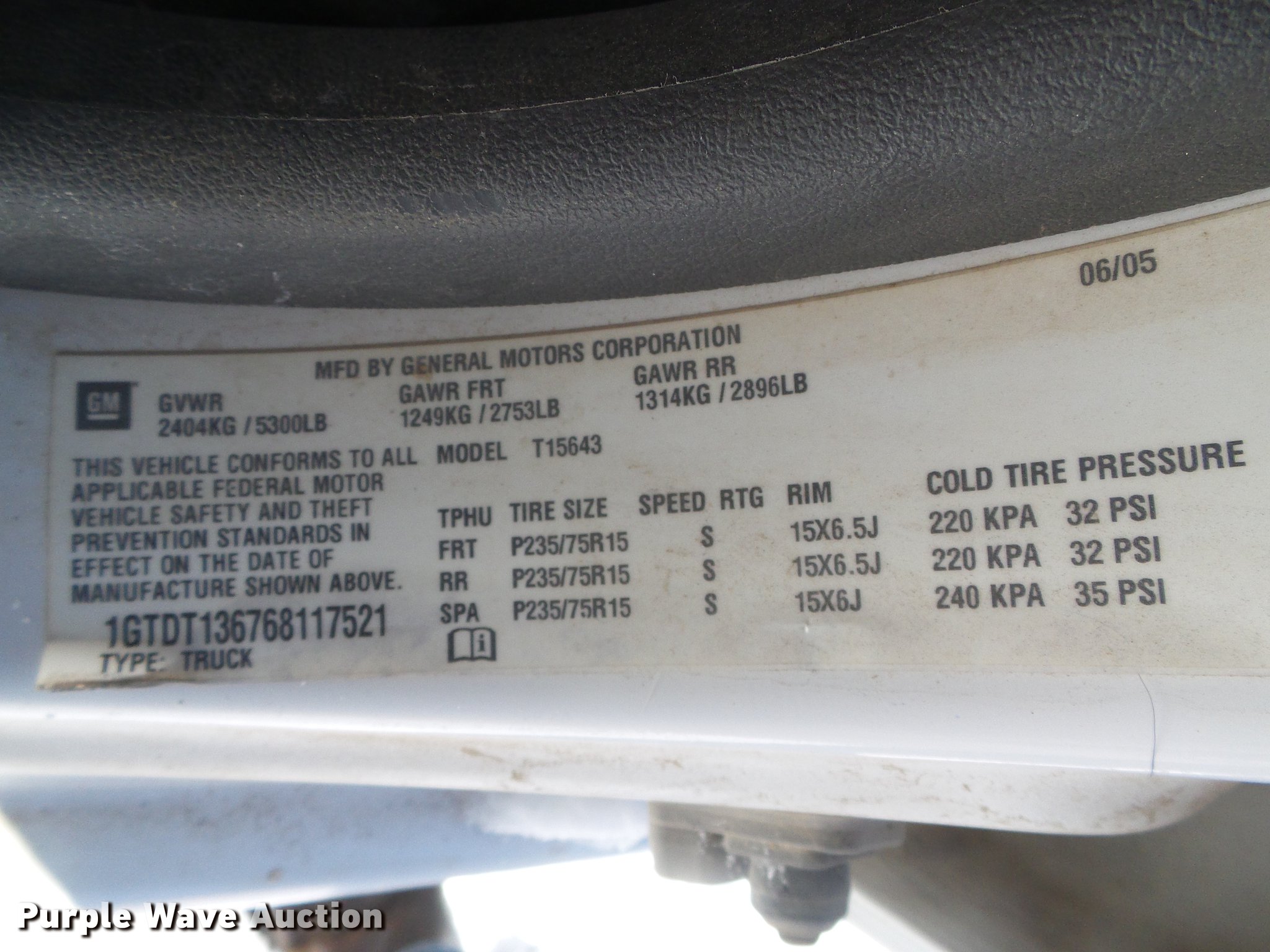 Purple Wave is selling a used Compact Pickup or Van in Kansas. This item is a 2006 GMC Canyon Crew Cab pickup truck with the following: 70,479 miles on odometer, 3.5L L5 DOHC 20V gas engine, Automatic transmission, Four wheel drive, AC and heat, Tilt, Cruise, AM/FM/CD, Power locks and mirrors, Cloth interior, Receiver hitch, Trailer wiring, P235/75R15 tires, Hail damage, Battery needs to be replaced, Tire will be replaced prior to auction, Non-operational unit