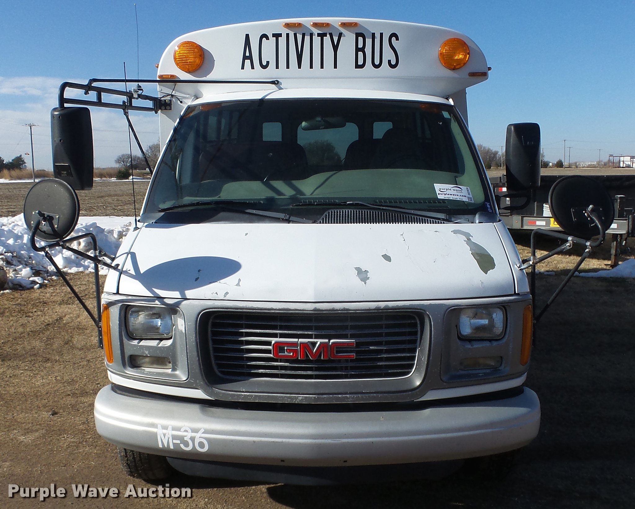 Purple Wave is selling a used Bus in Kansas. This item is a 2000 GMC Savana G3500 school bus with the following: 109,373 miles on odometer, 5.7L V8 OHV 16V gas engine, Automatic transmission, AC and heat, AM/FM, Vinyl interior, 14 passenger capacity, Rear and roof emergency exits, 245/75R16 tires, CB radio not included