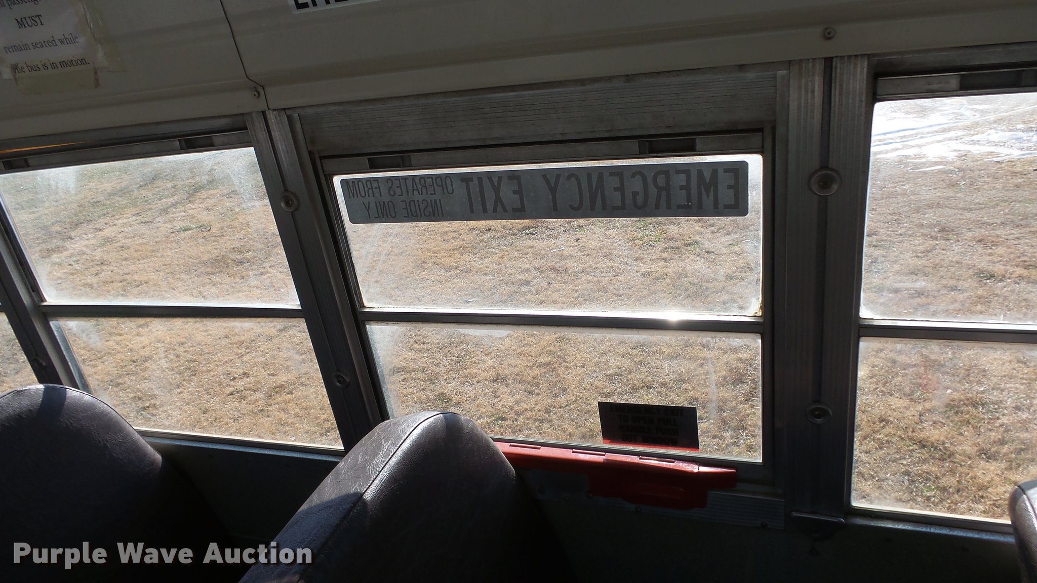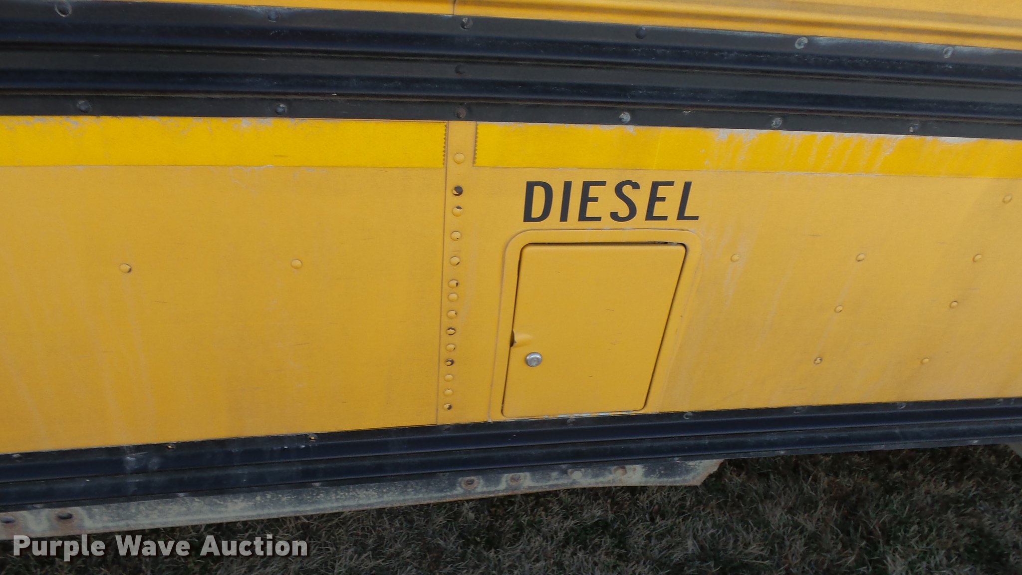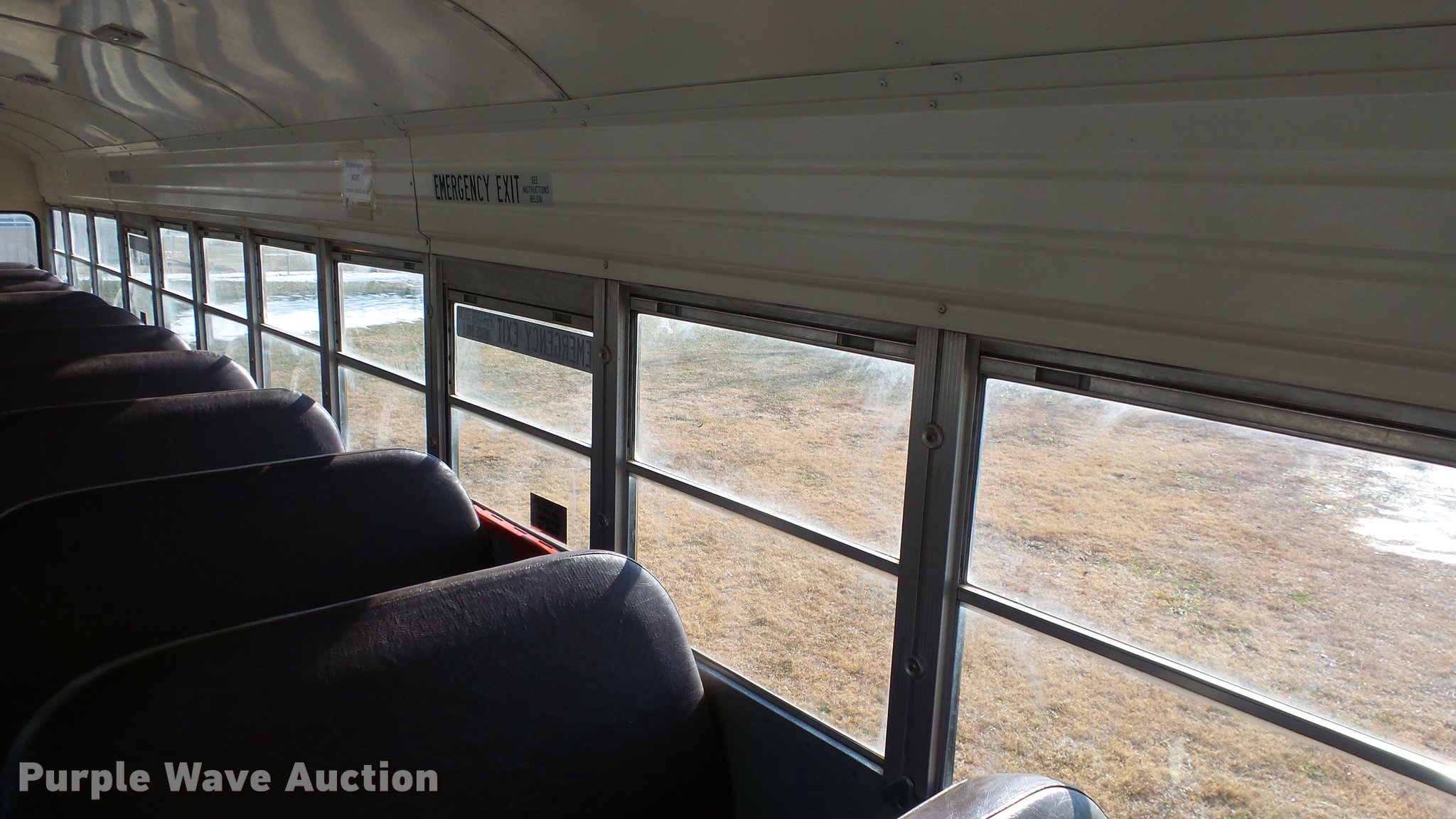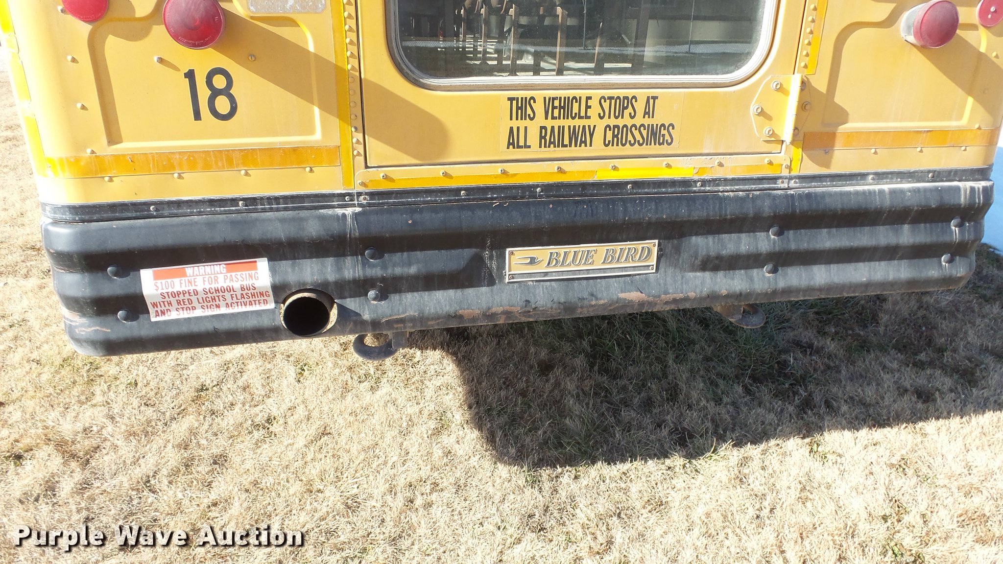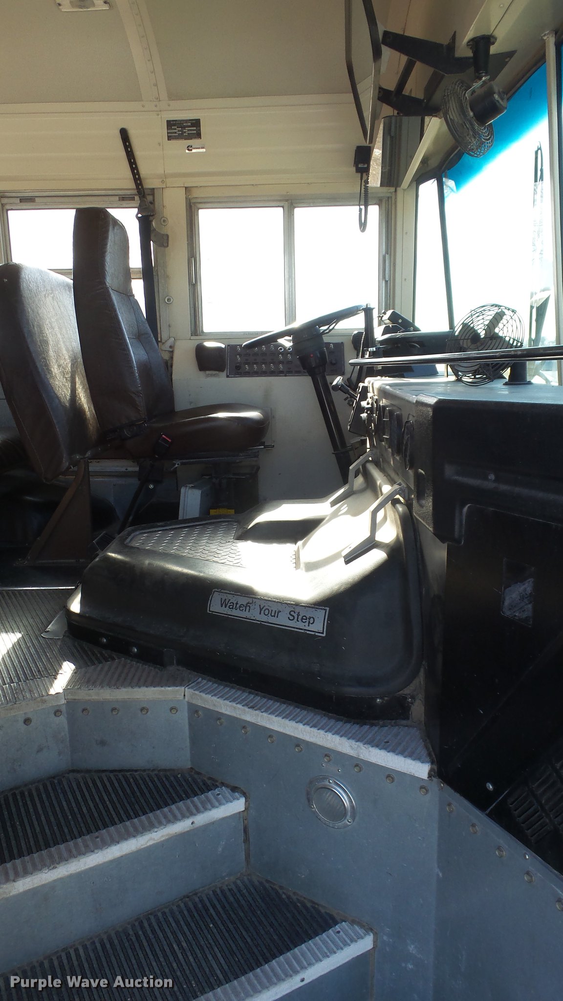 Purple Wave is selling a used Bus in Kansas. This item is a 1999 Blue Bird TC2000 school bus with the following: 169,965 miles on odometer, Cummins ISB 5.9L L6 diesel engine, Automatic transmission, Heat, AM/FM, Vinyl interior, 66 passenger capacity, Rear, side, and roof emergency exits, Spring suspension, Hydraulic brakes, 10R22.5 tires