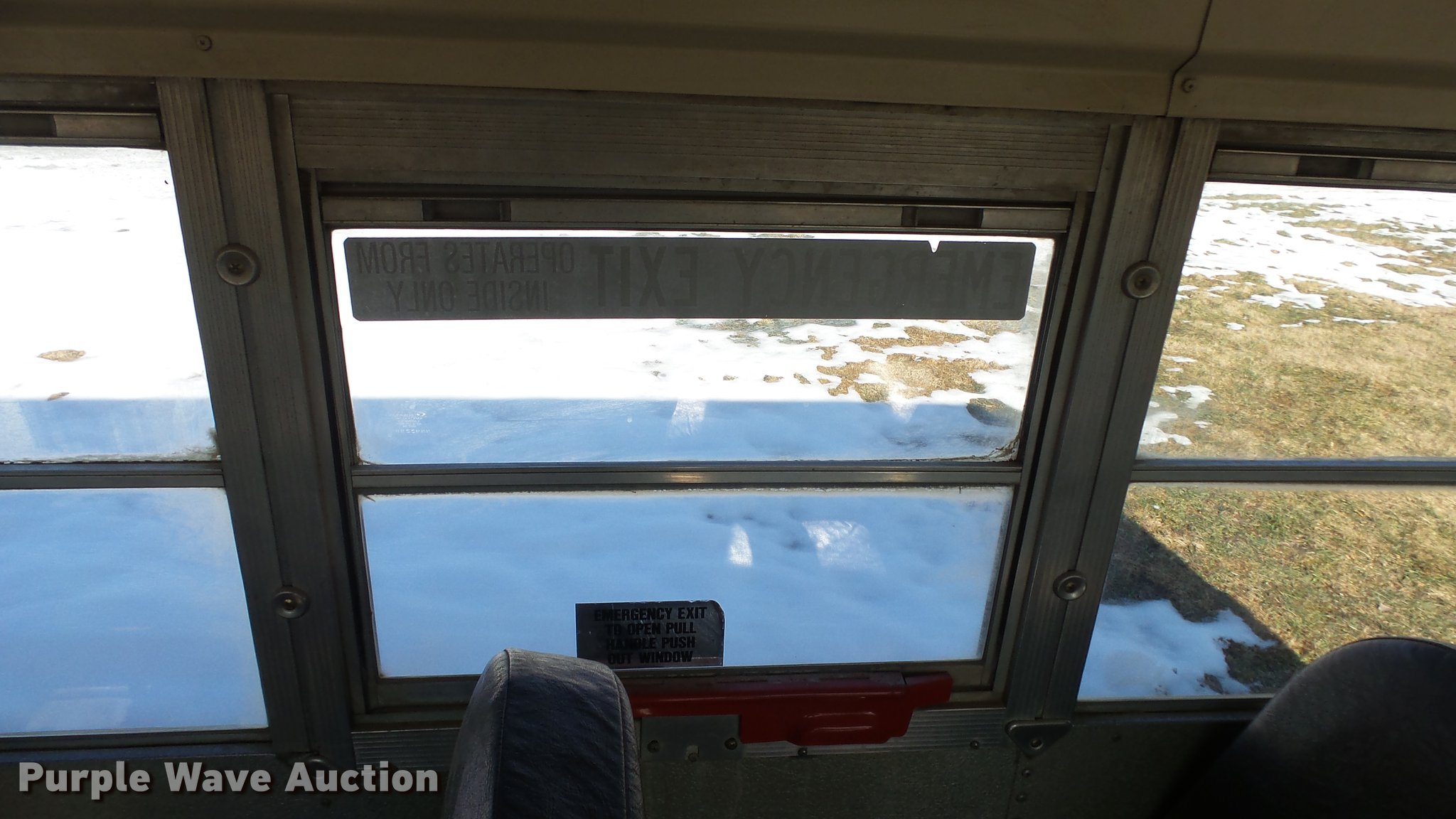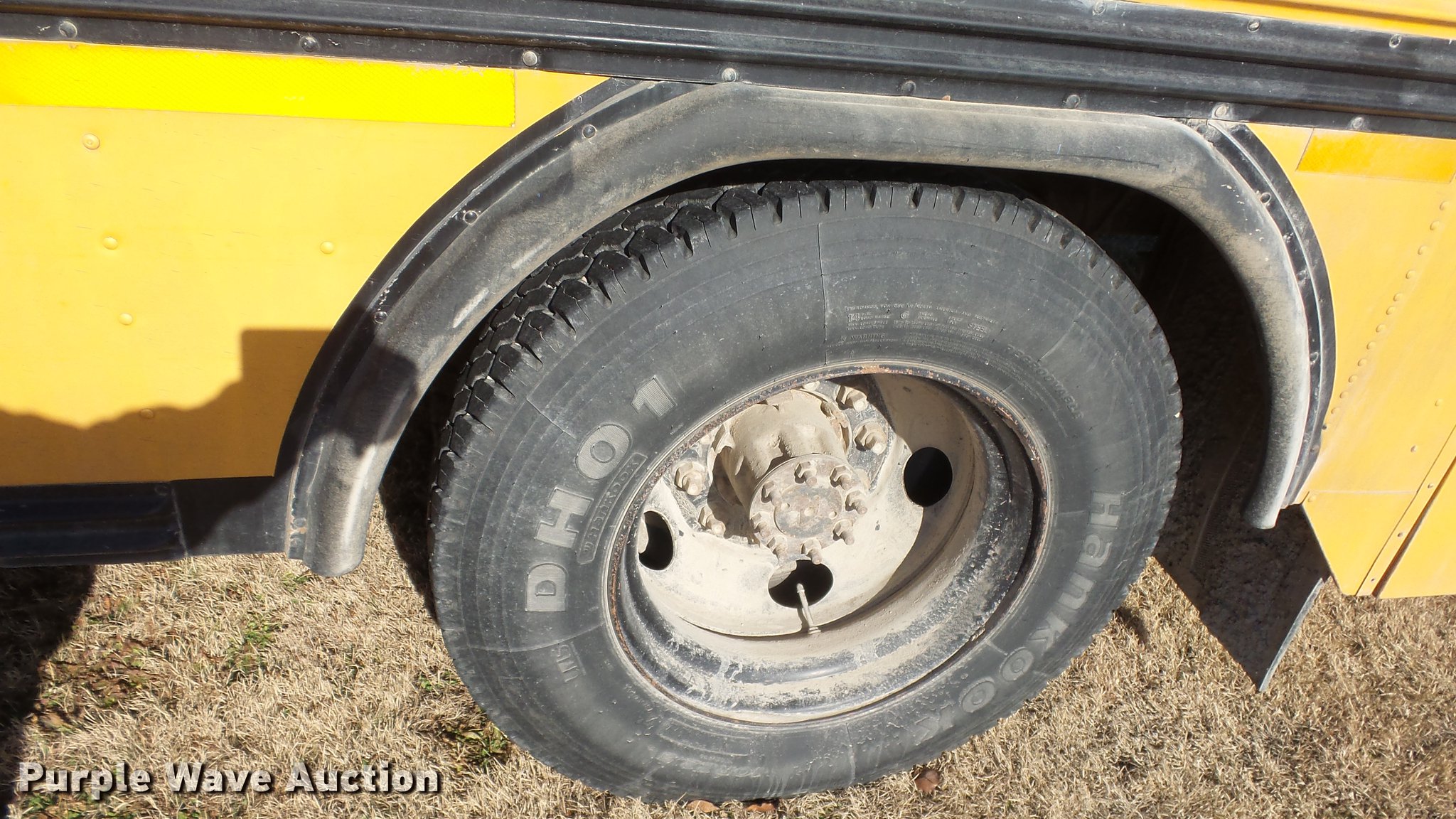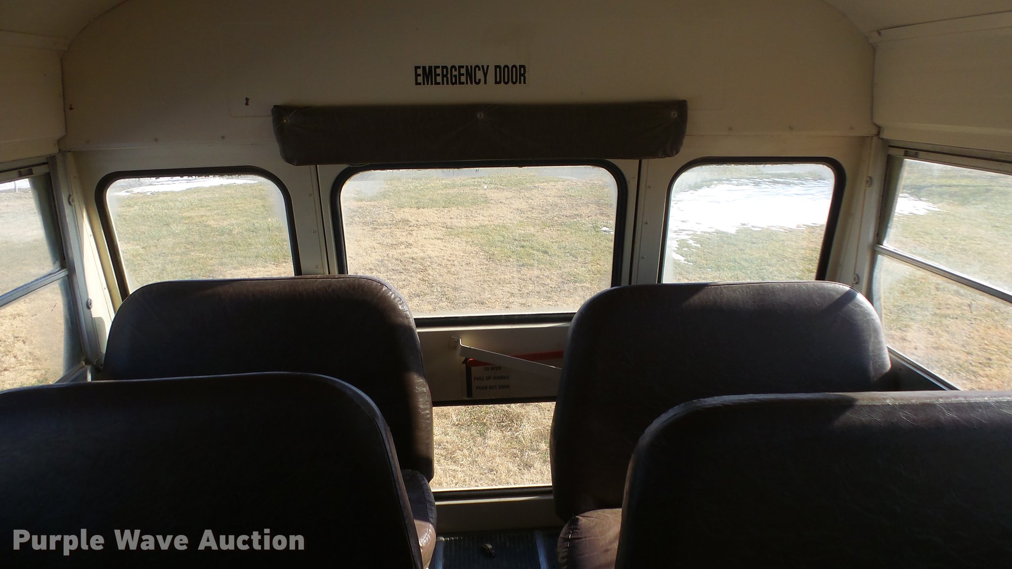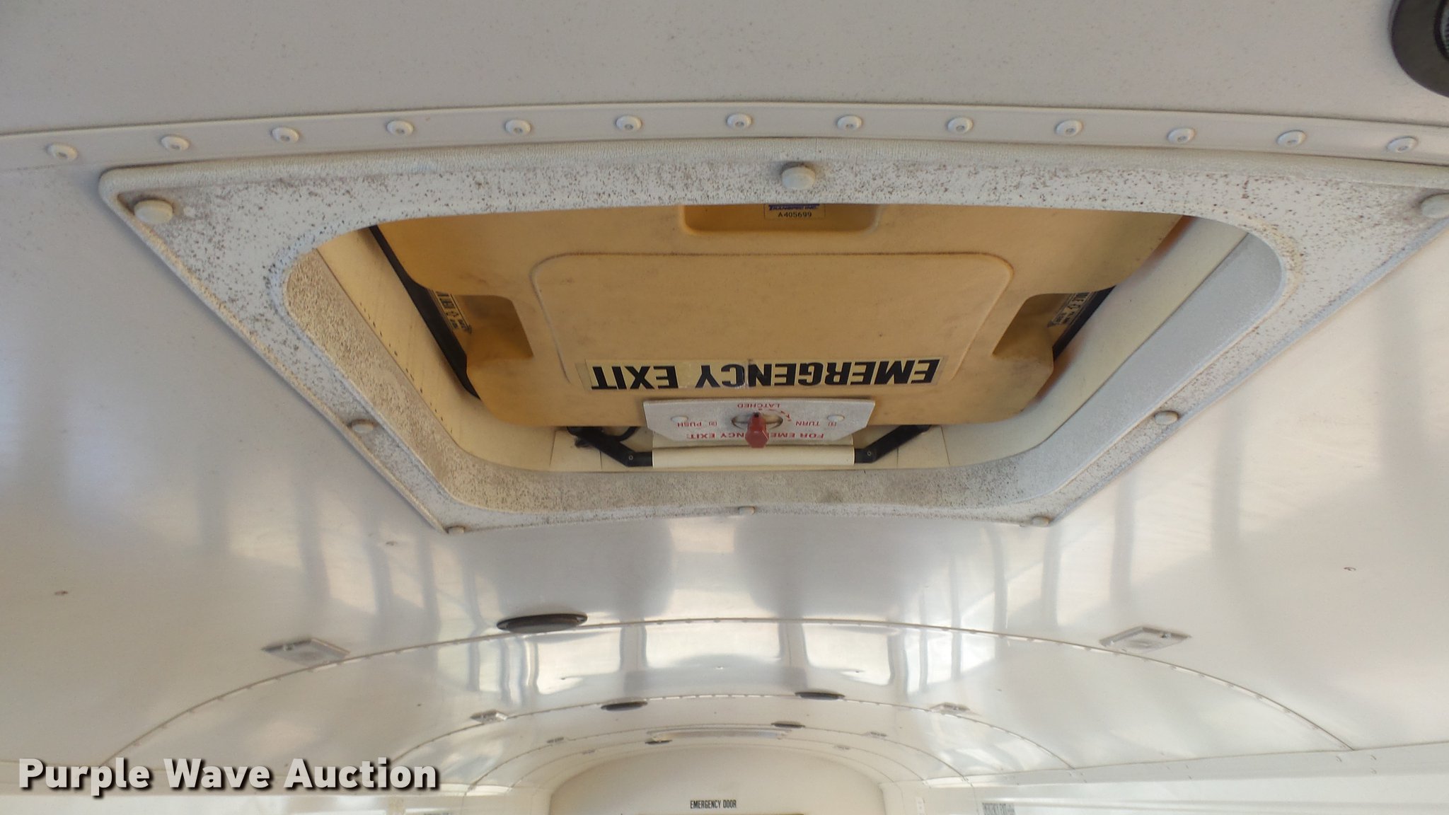 Purple Wave is selling a used Bus in Kansas. This item is a 1999 Blue Bird TC2000 school bus with the following: 169,965 miles on odometer, Cummins ISB 5.9L L6 diesel engine, Automatic transmission, Heat, AM/FM, Vinyl interior, 66 passenger capacity, Rear, side, and roof emergency exits, Spring suspension, Hydraulic brakes, 10R22.5 tires