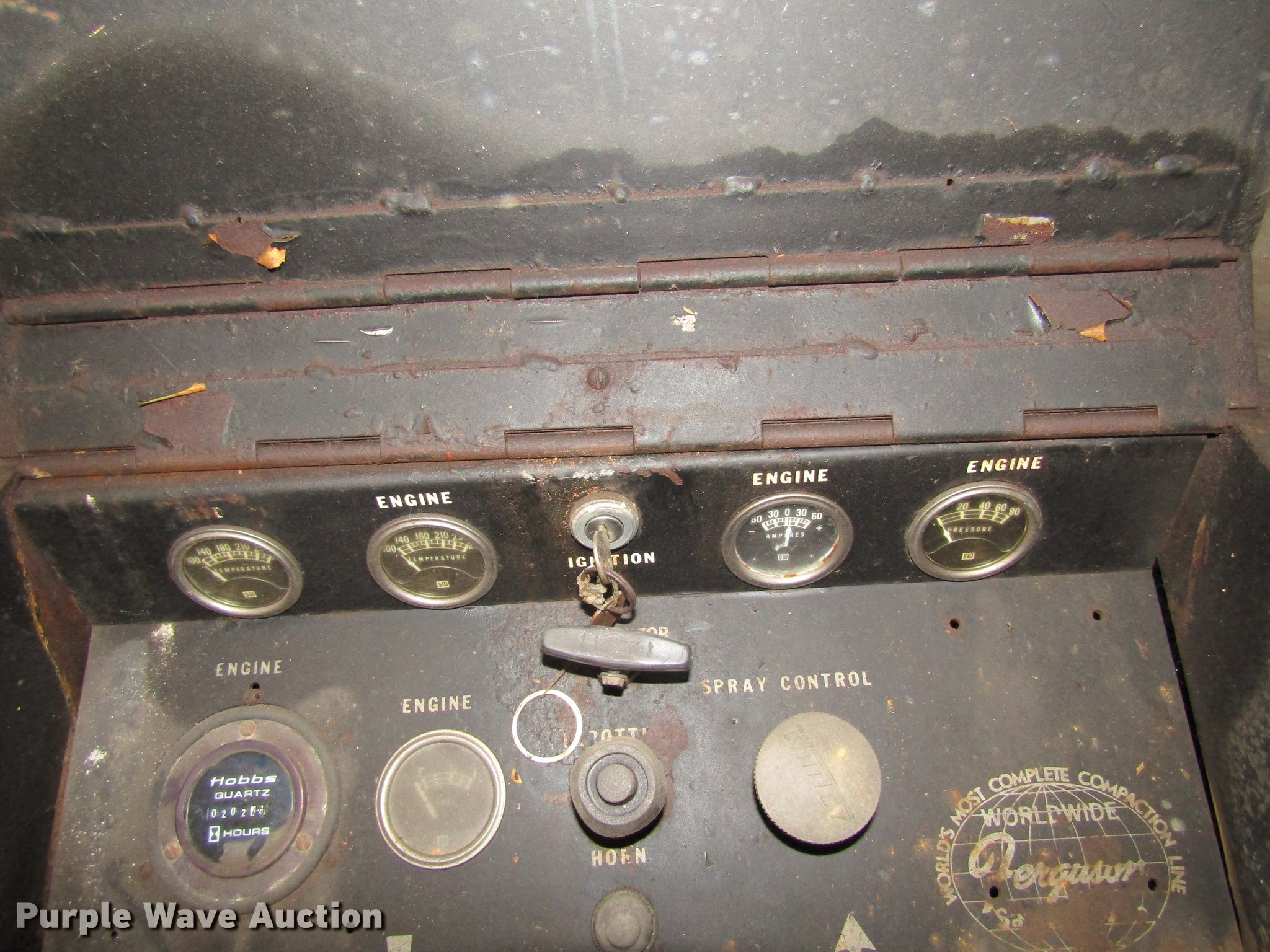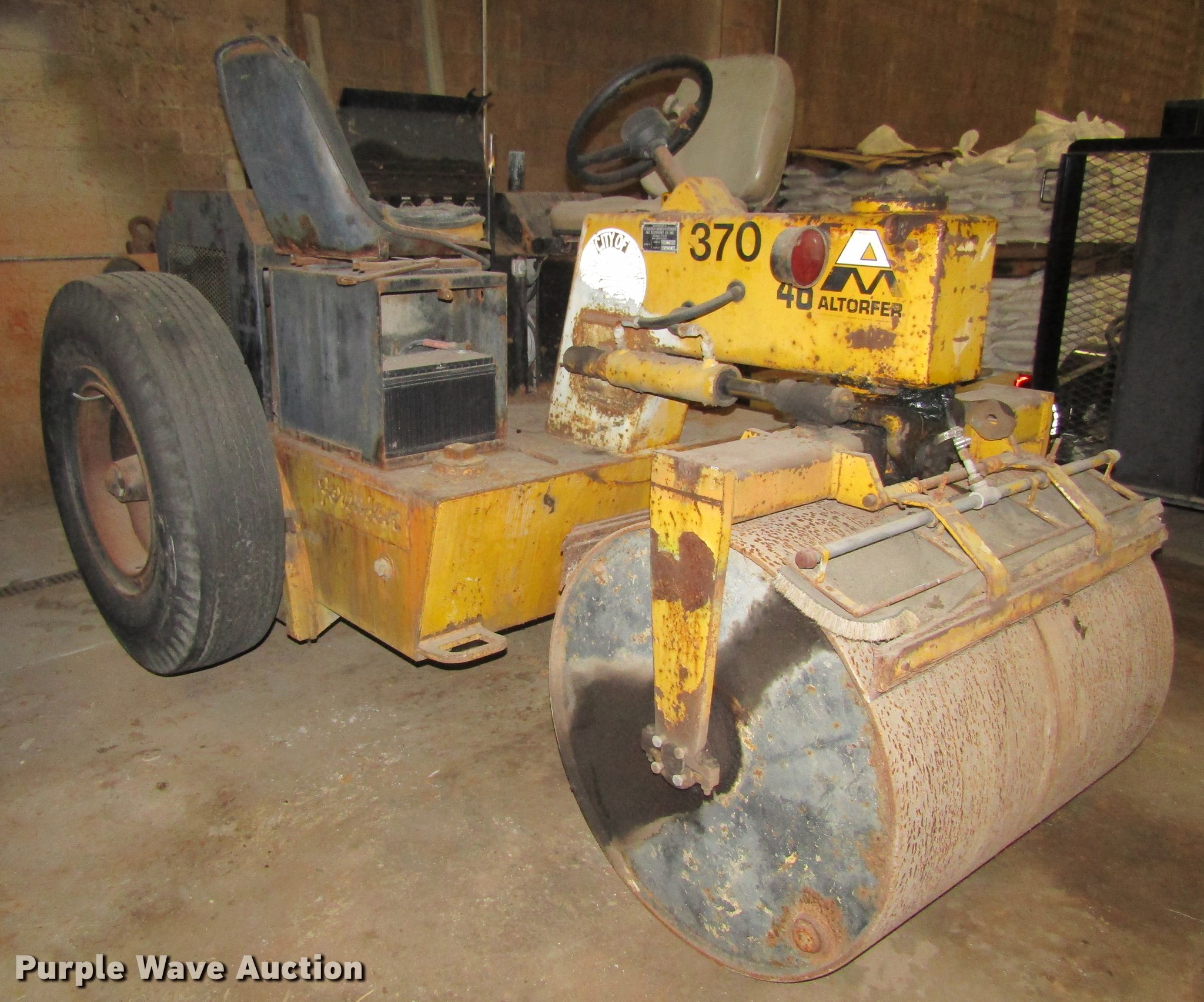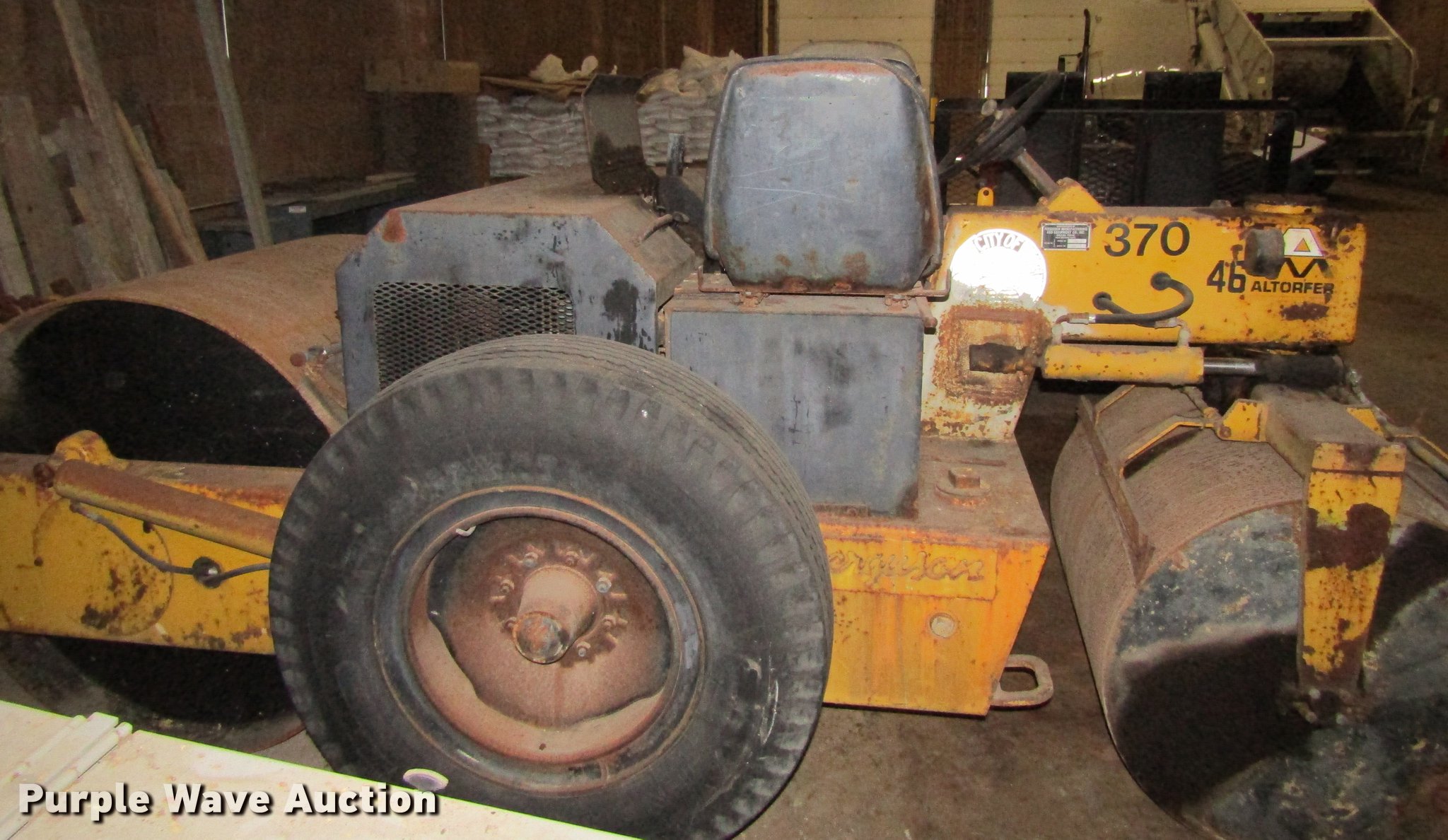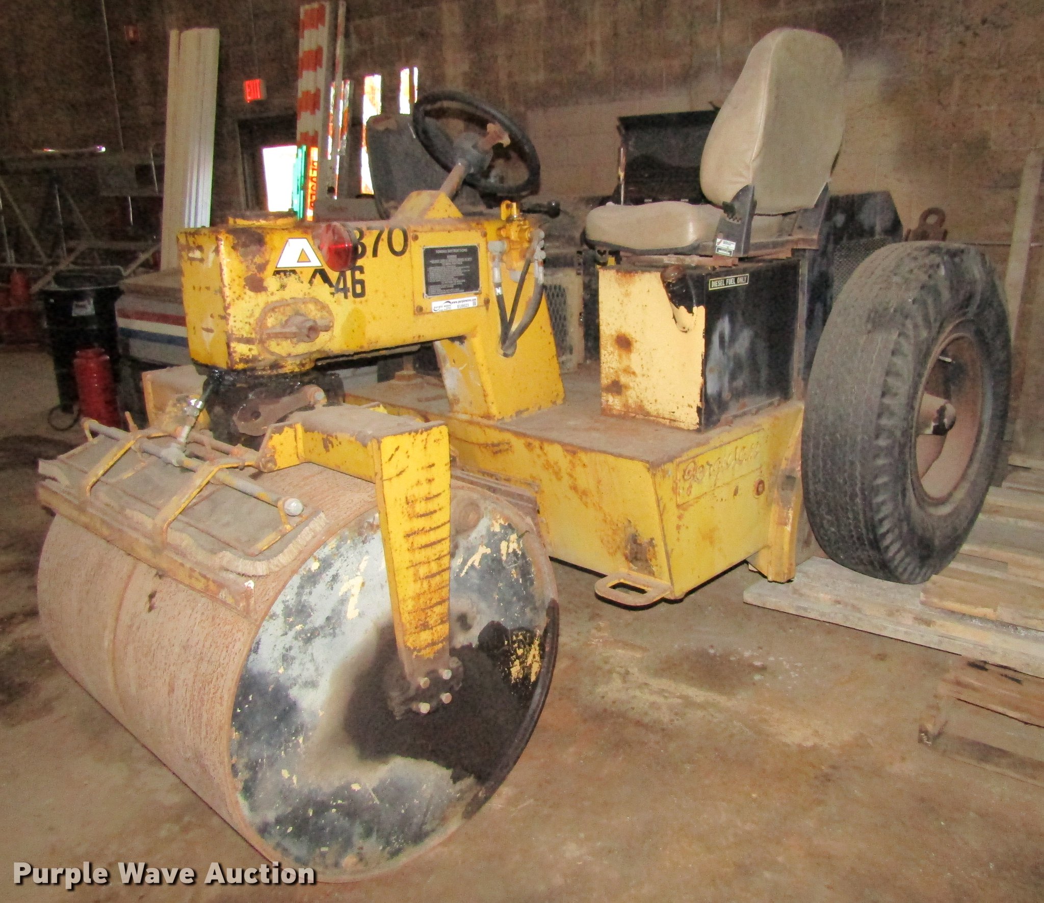 Purple Wave is selling a used Double Drum Roller Compactor in Iowa. This item is a Ferguson 46 double drum roller with the following: Four cylinder diesel engine, Hydrostatic transmission, Dual operators station, 40"W x 34" diameter front drum, 42"W x 46" diameter rear drum, Front drum scrapers, Rear pintle hitch, 10.00-0 tires, Serial 2961