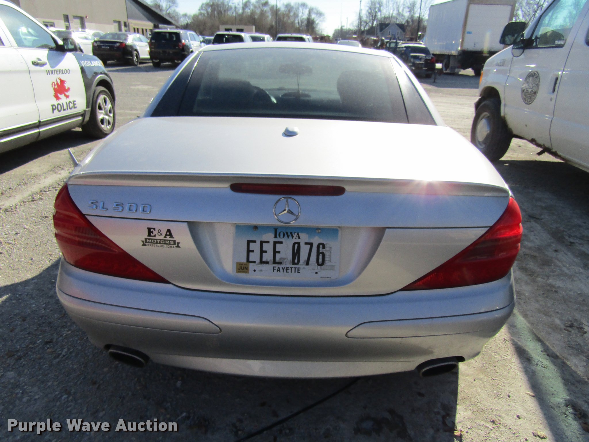 Purple Wave is selling a used Passenger Vehicle in Iowa. This item is a 2005 Mercedes Benz SL500 with the following: 122,600 miles on odometer, 5.0L V8 DOHC 32V gas engine, Automatic transmission, AC and heat, Tilt, Cruise, AM/FM, Power windows, locks, mirrors, and seat, Leather interior, 255/40R18 tires