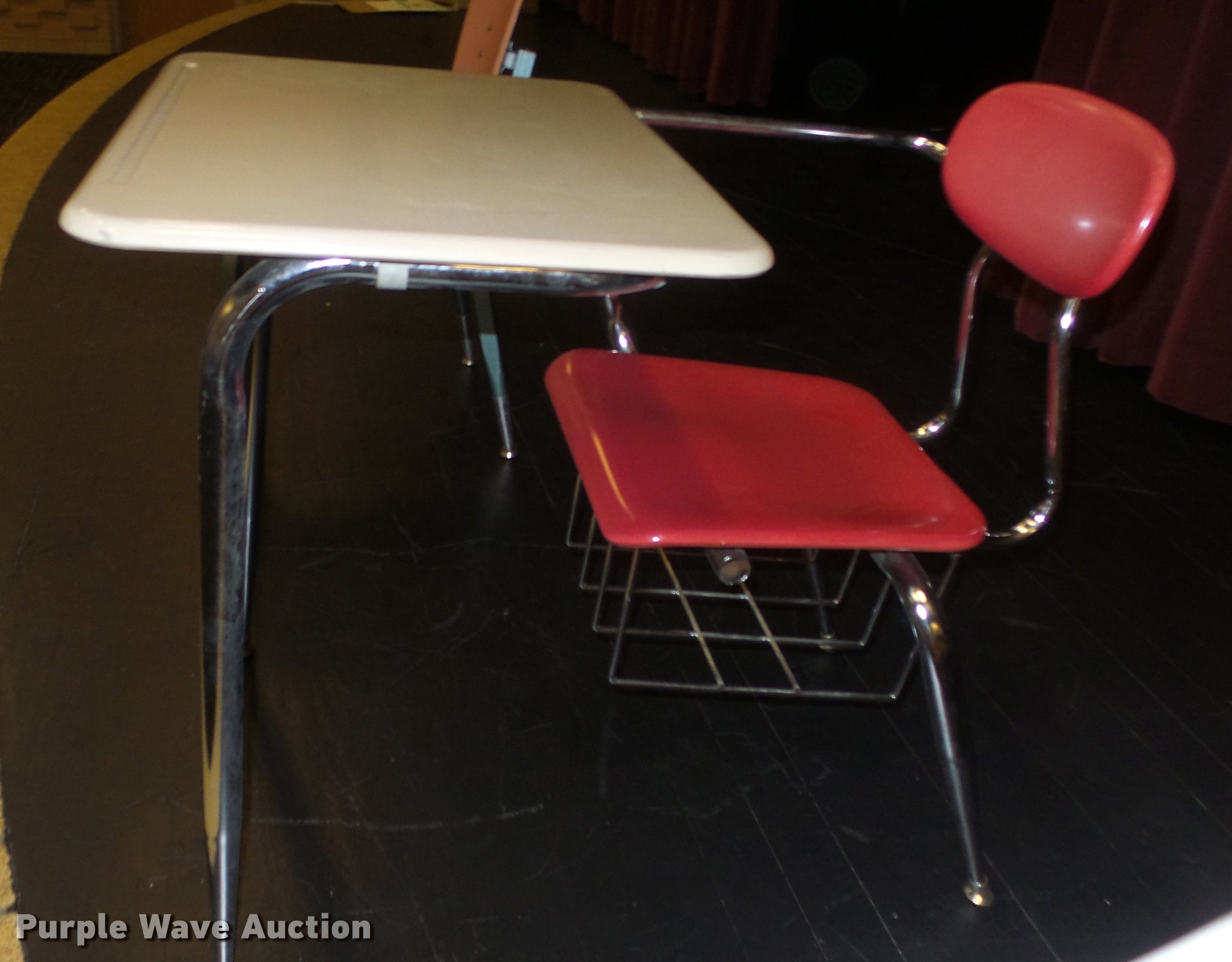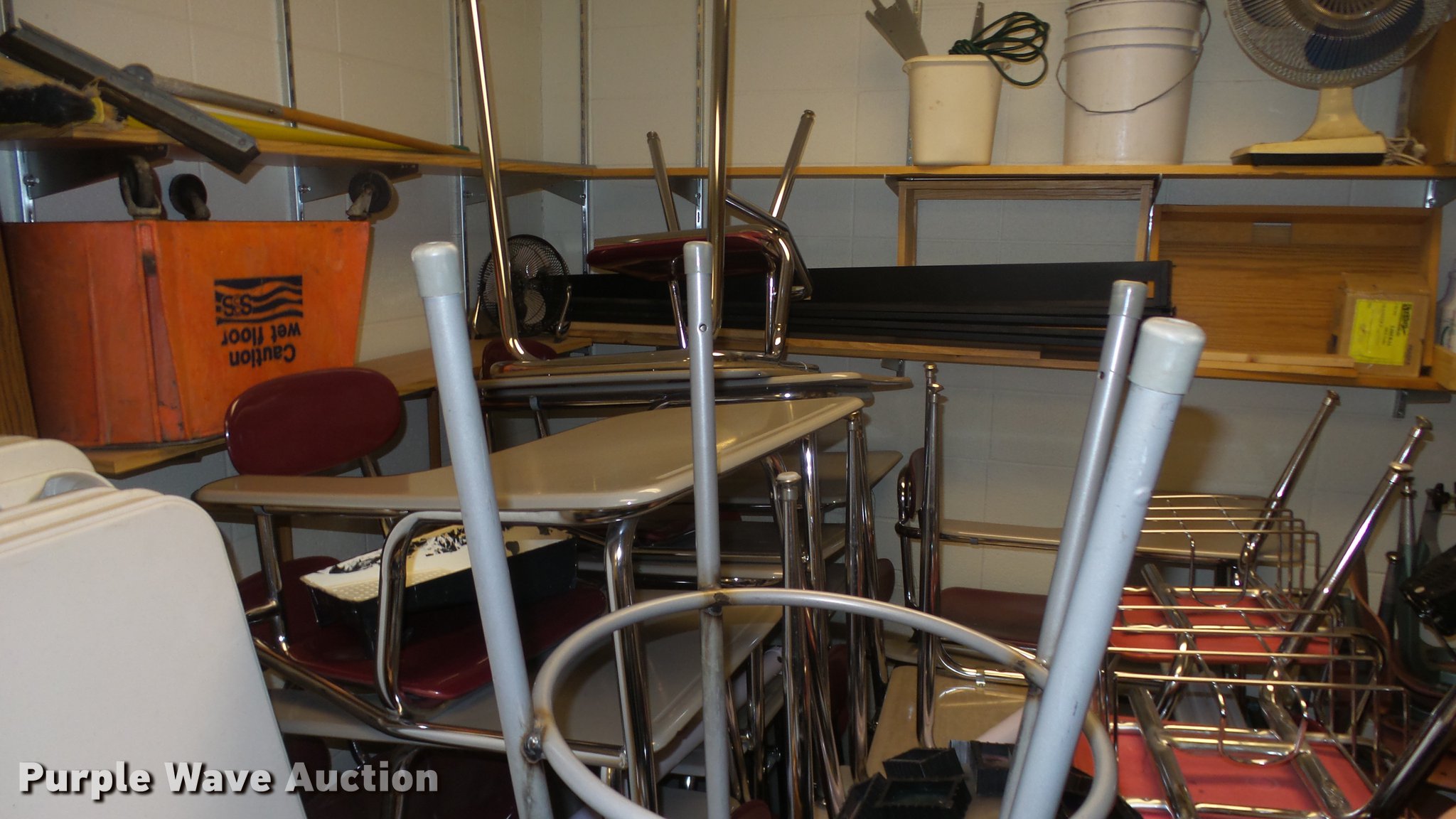 Purple Wave is selling a used Furniture in Kansas. This item is a Furniture with the following: Approx. 20 chairs, Approx. 20 desks, Various styles