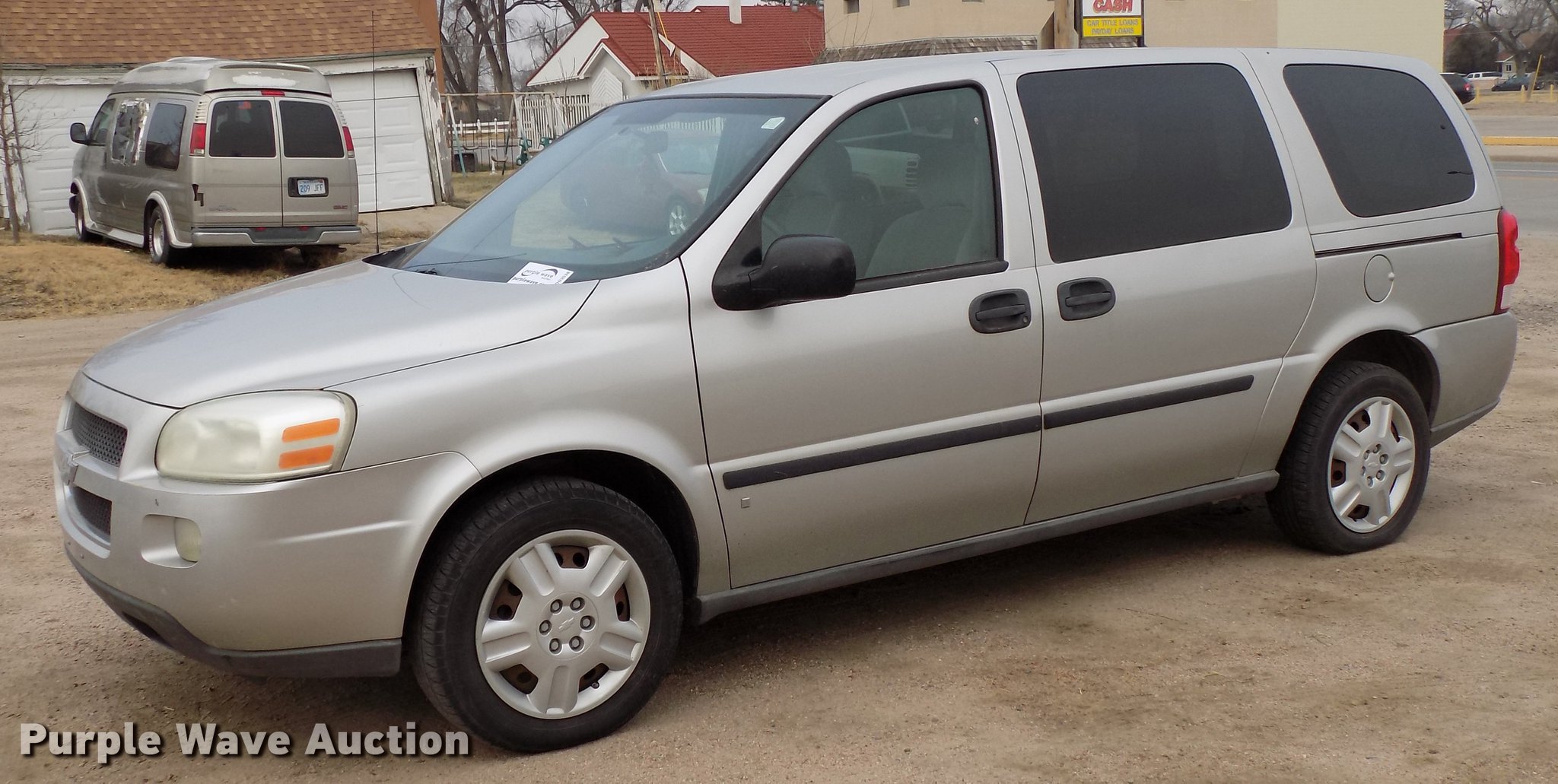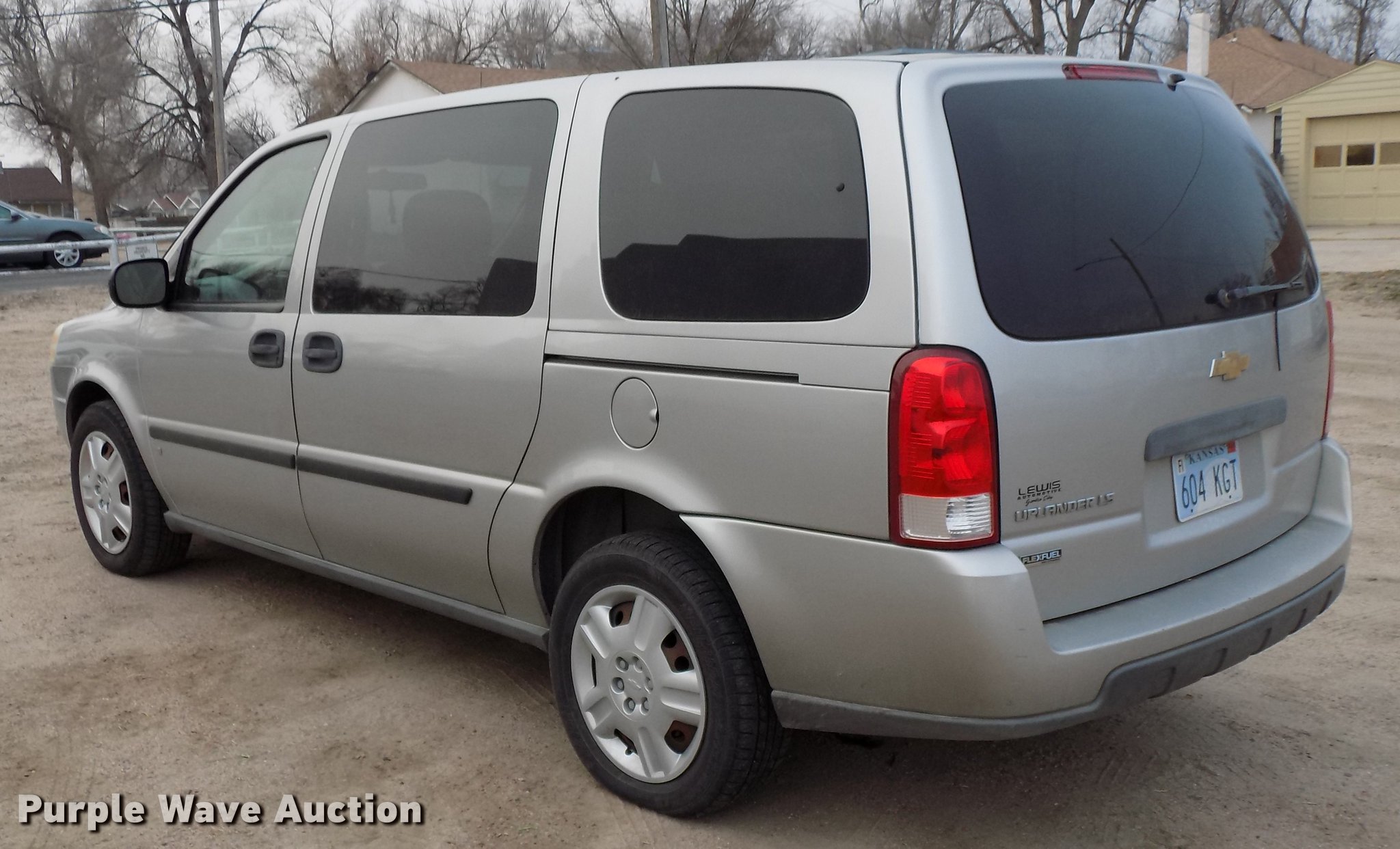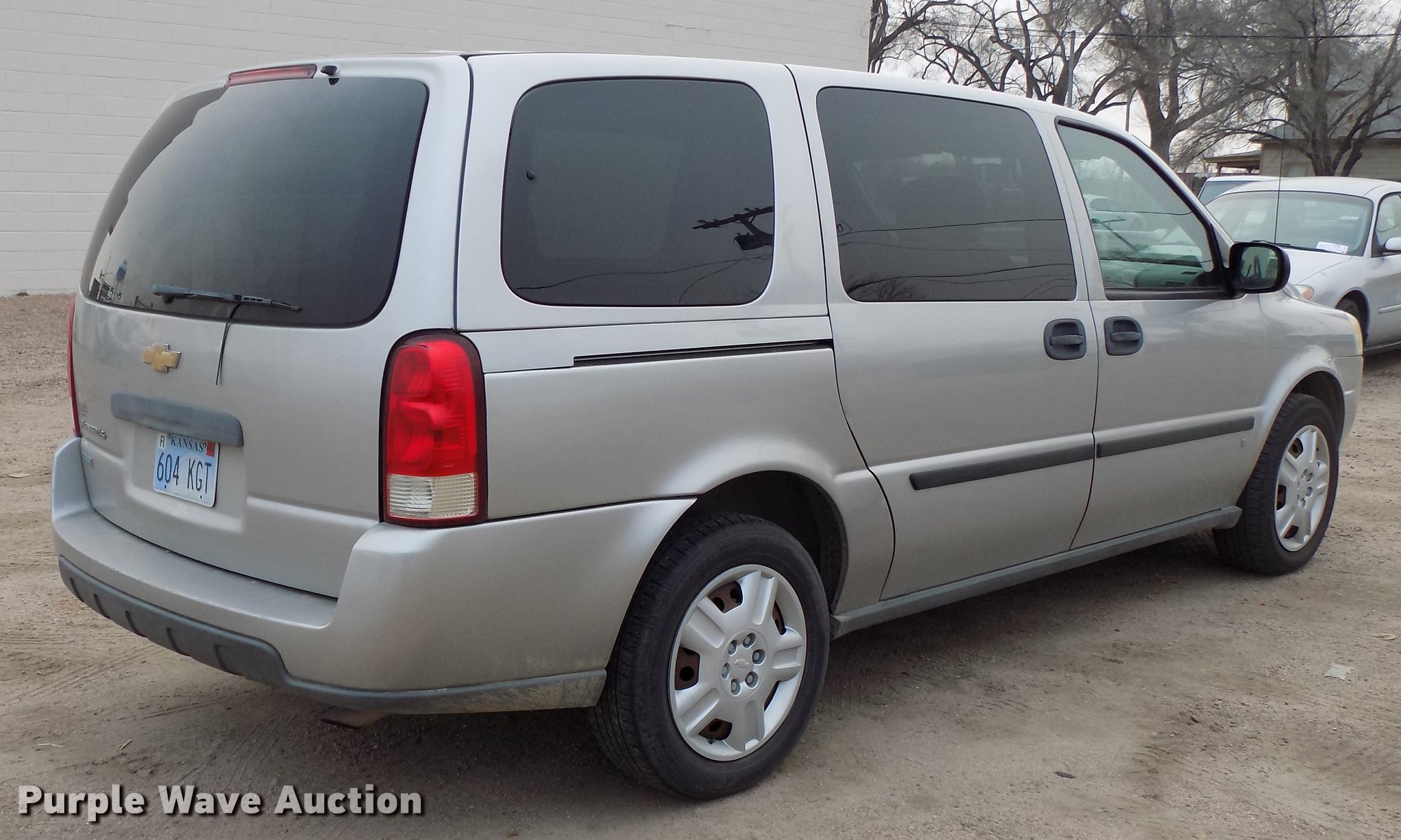 Purple Wave is selling a used Passenger Vehicle in Kansas. This item is a 2008 Chevrolet Uplander van with the following: 114,914 miles on odometer, Actual mileage unknown, 3.9L V6 OHV 12V FFV gas engine, Automatic transmission, AC and heat, Tilt, Cruise, AM/FM/CD, Power windows, locks, and mirrors, Cloth interior, 225/60R17 tires, No rear seats