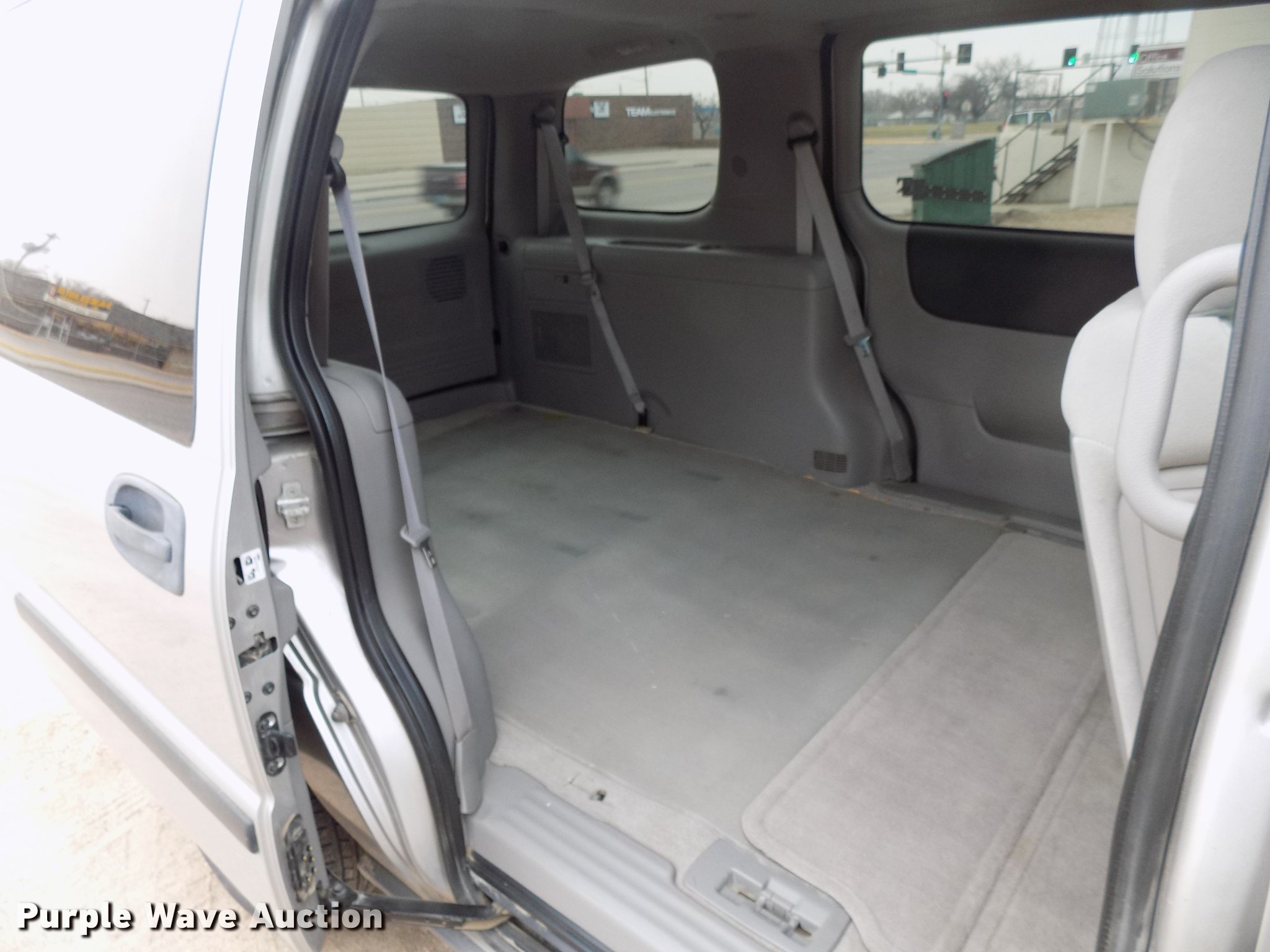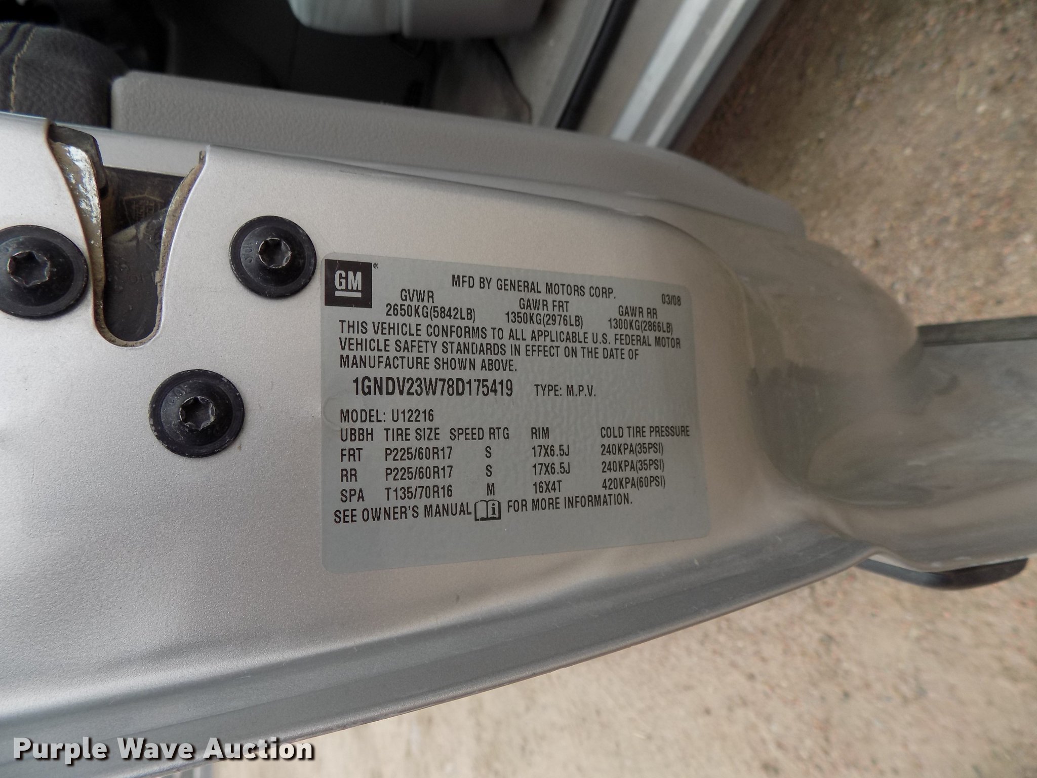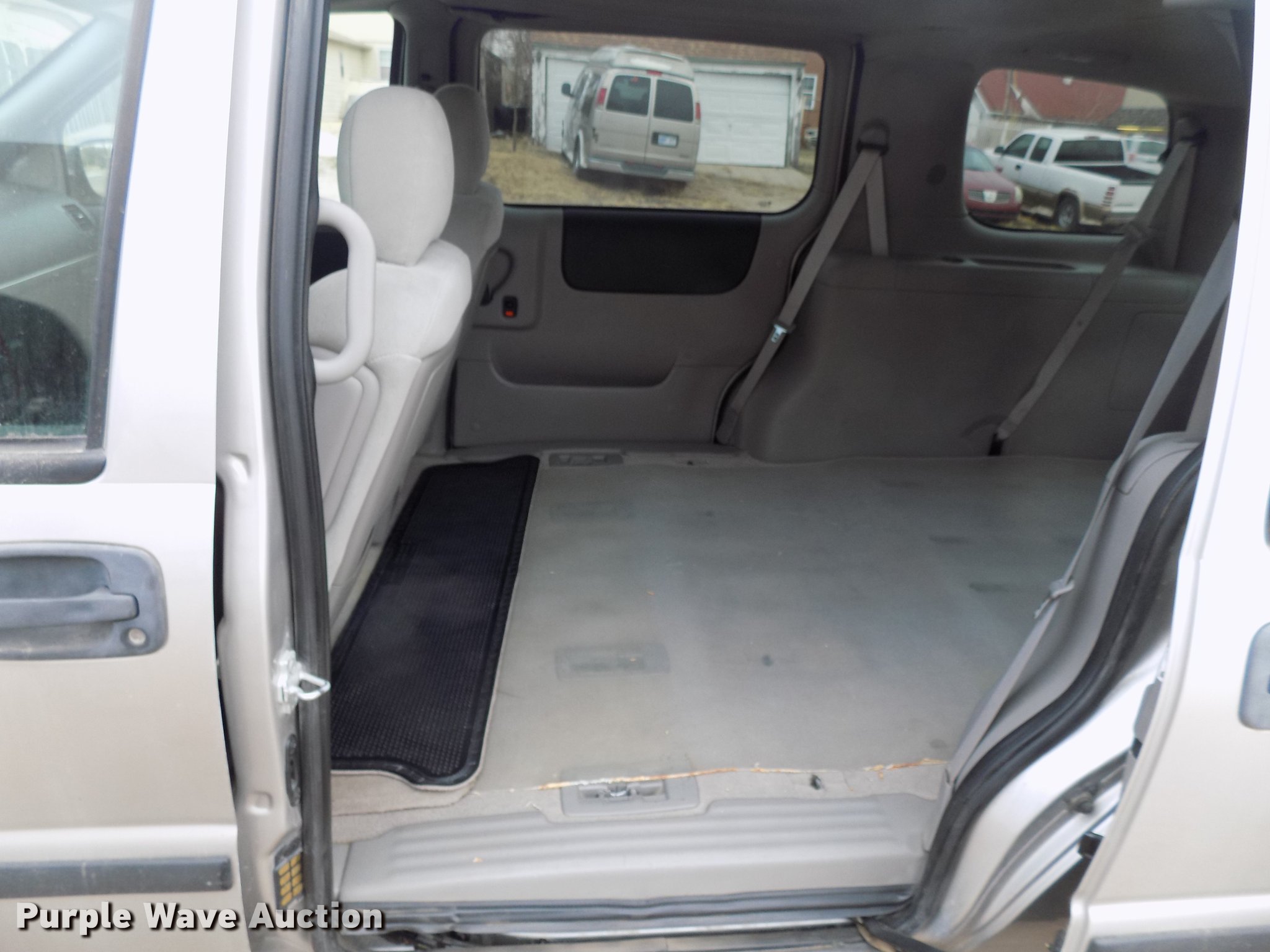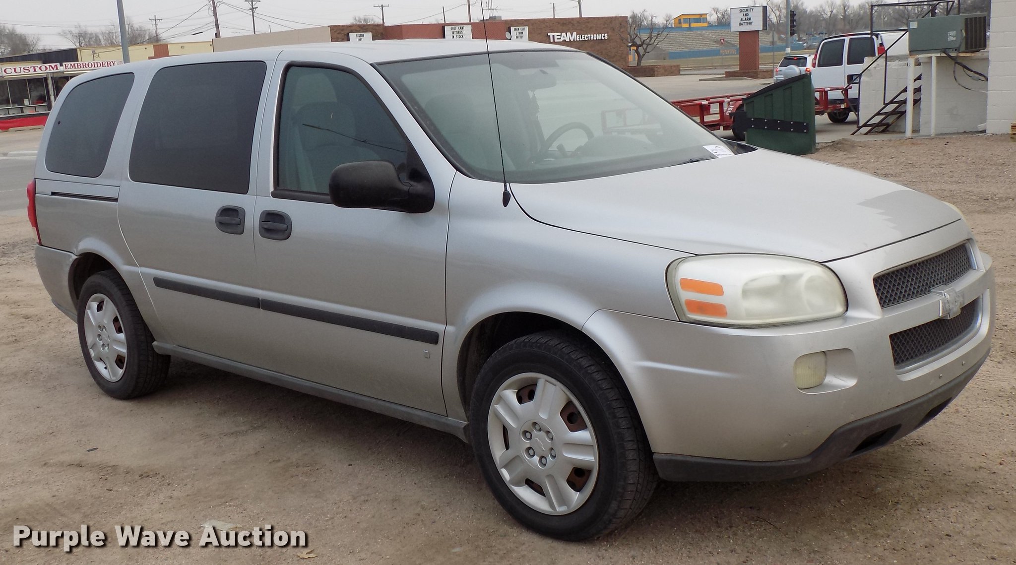 Purple Wave is selling a used Passenger Vehicle in Kansas. This item is a 2008 Chevrolet Uplander van with the following: 114,914 miles on odometer, Actual mileage unknown, 3.9L V6 OHV 12V FFV gas engine, Automatic transmission, AC and heat, Tilt, Cruise, AM/FM/CD, Power windows, locks, and mirrors, Cloth interior, 225/60R17 tires, No rear seats