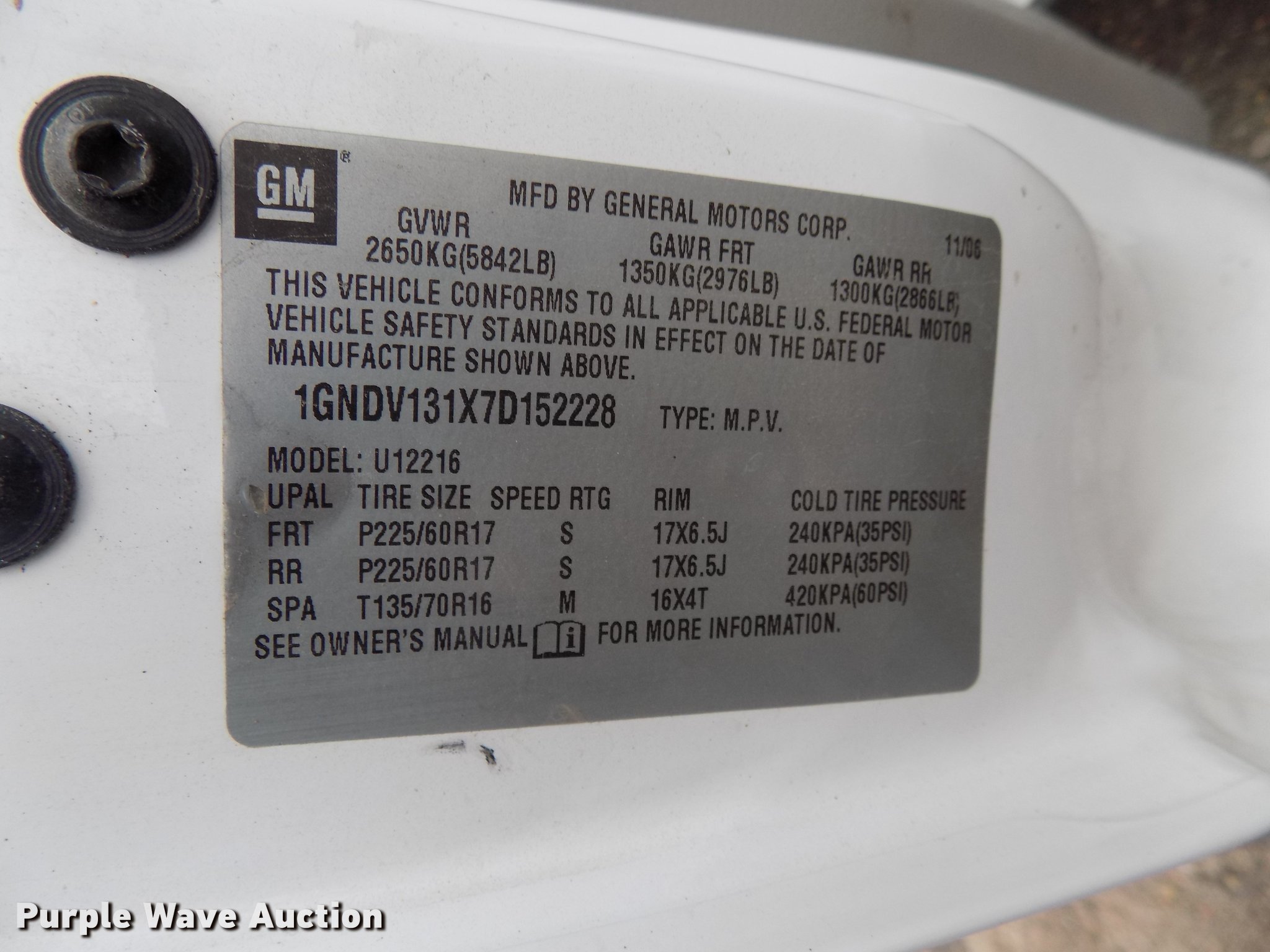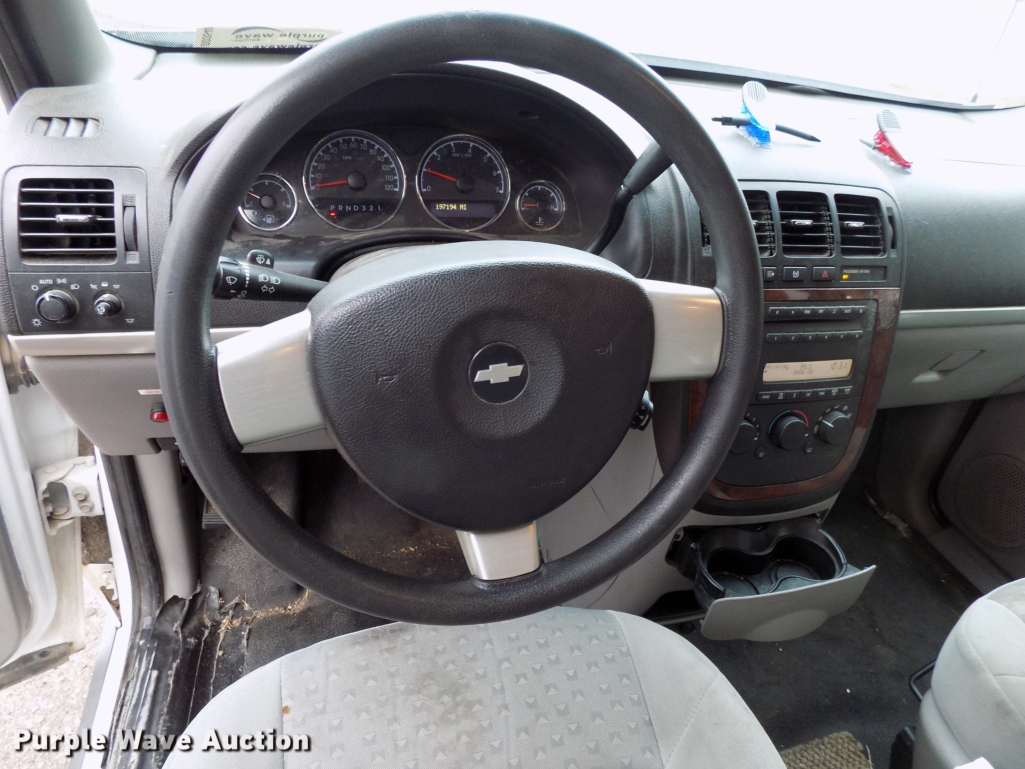 Purple Wave is selling a used Passenger Vehicle in Kansas. This item is a 2007 Chevrolet Uplander van with the following: 197,194 miles on odometer, 3.9L V6 DOHC 24V gas engine, Automatic transmission, AC and heat, Tilt, Cruise, AM/FM, Power windows, locks, and mirrors, Cloth interior, 225/60R17 tires