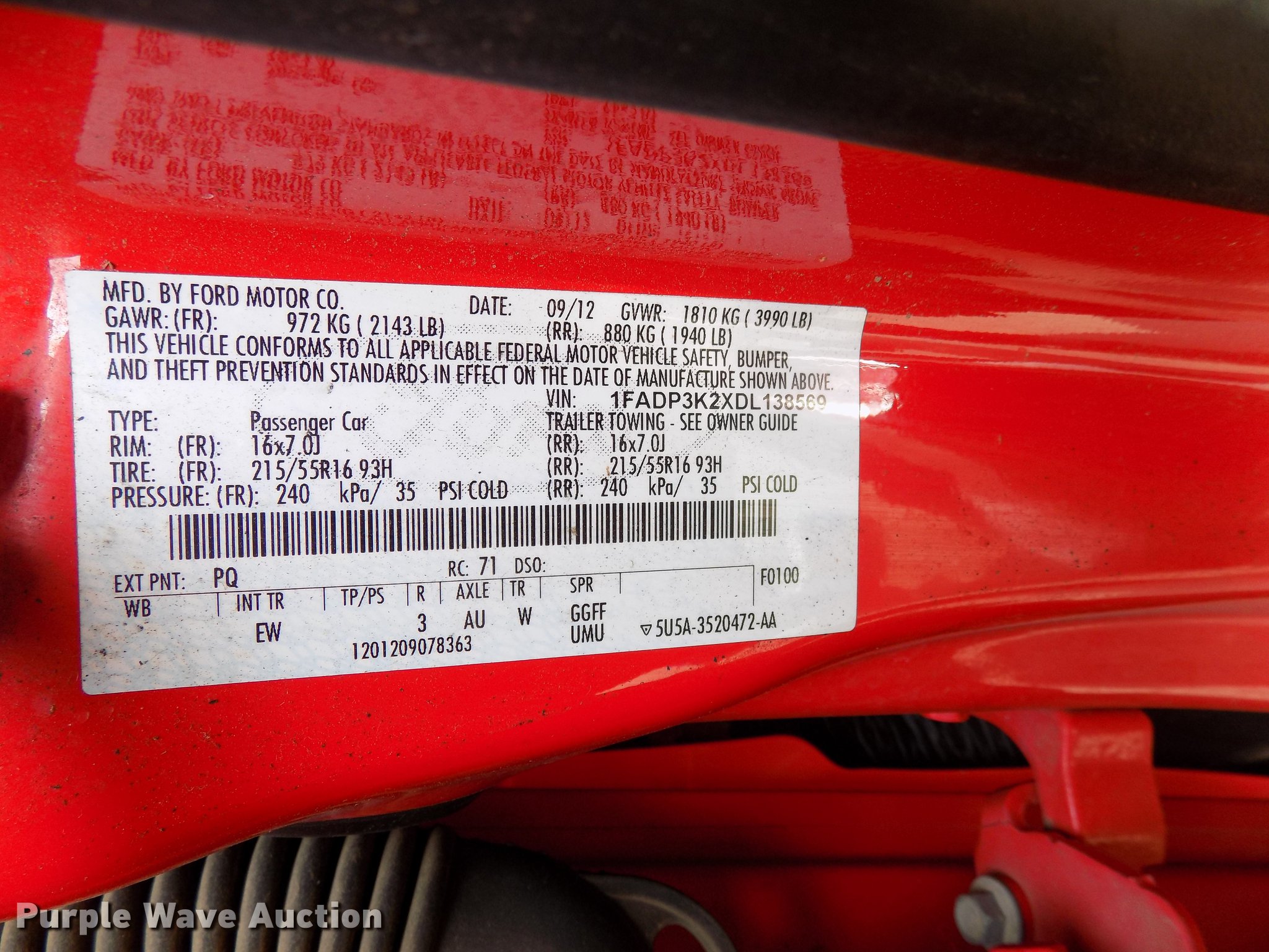 Purple Wave is selling a used Passenger Vehicle in Kansas. This item is a 2013 Ford Focus with the following: 180,289 miles on odometer, 2.0L L4 DOHC 16V gas engine, Automatic transmission, AC and heat, Tilt, Cruise, AM/FM, Power windows, locks, and mirrors, Cloth interior, 215/55R16 tires